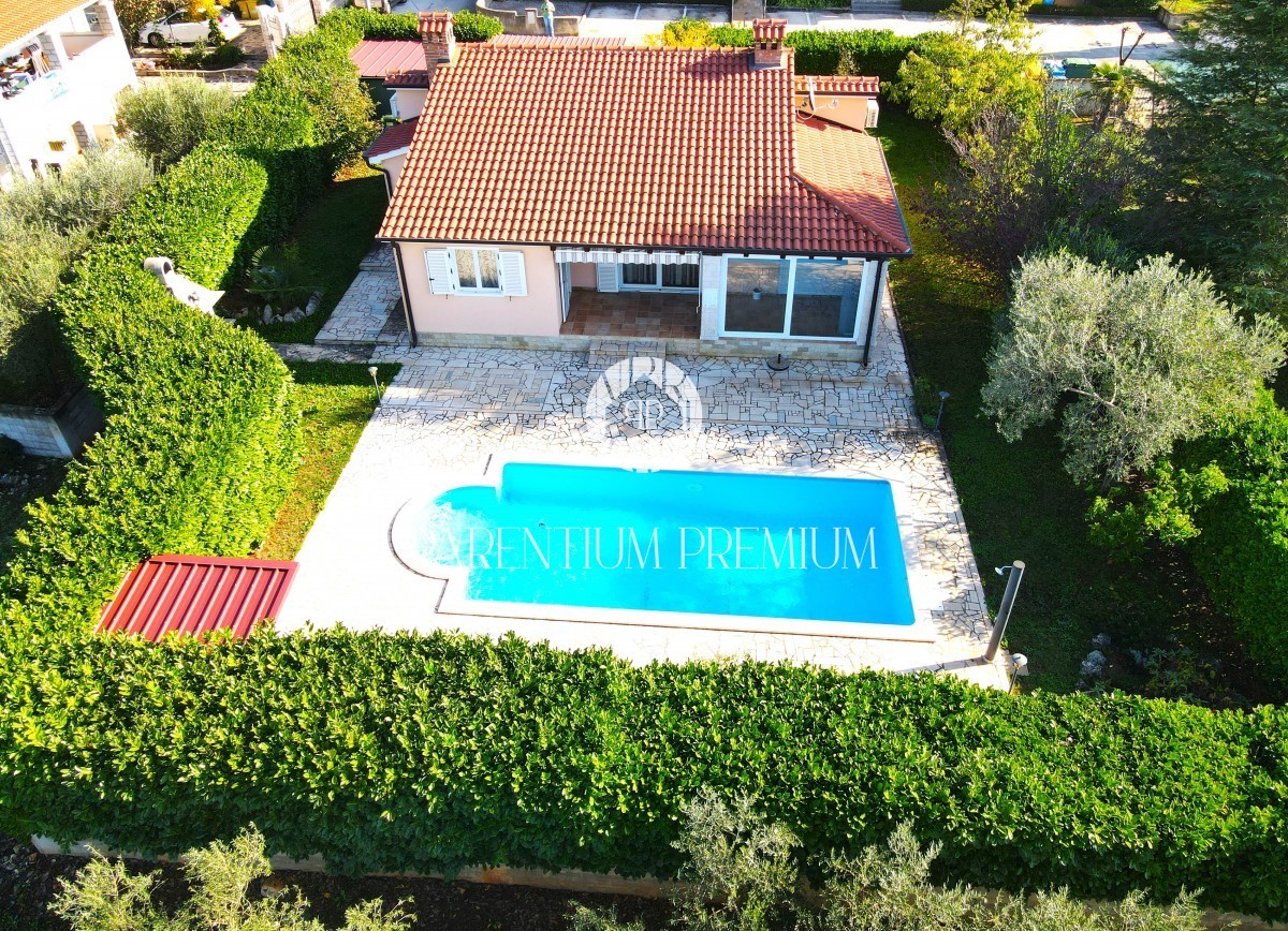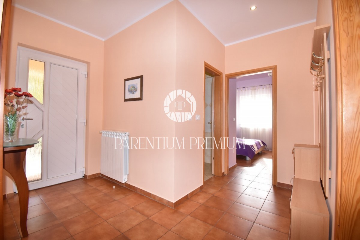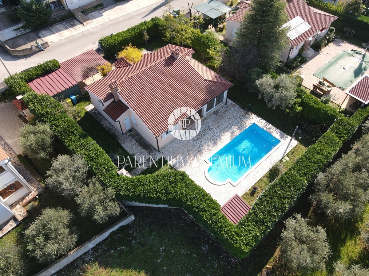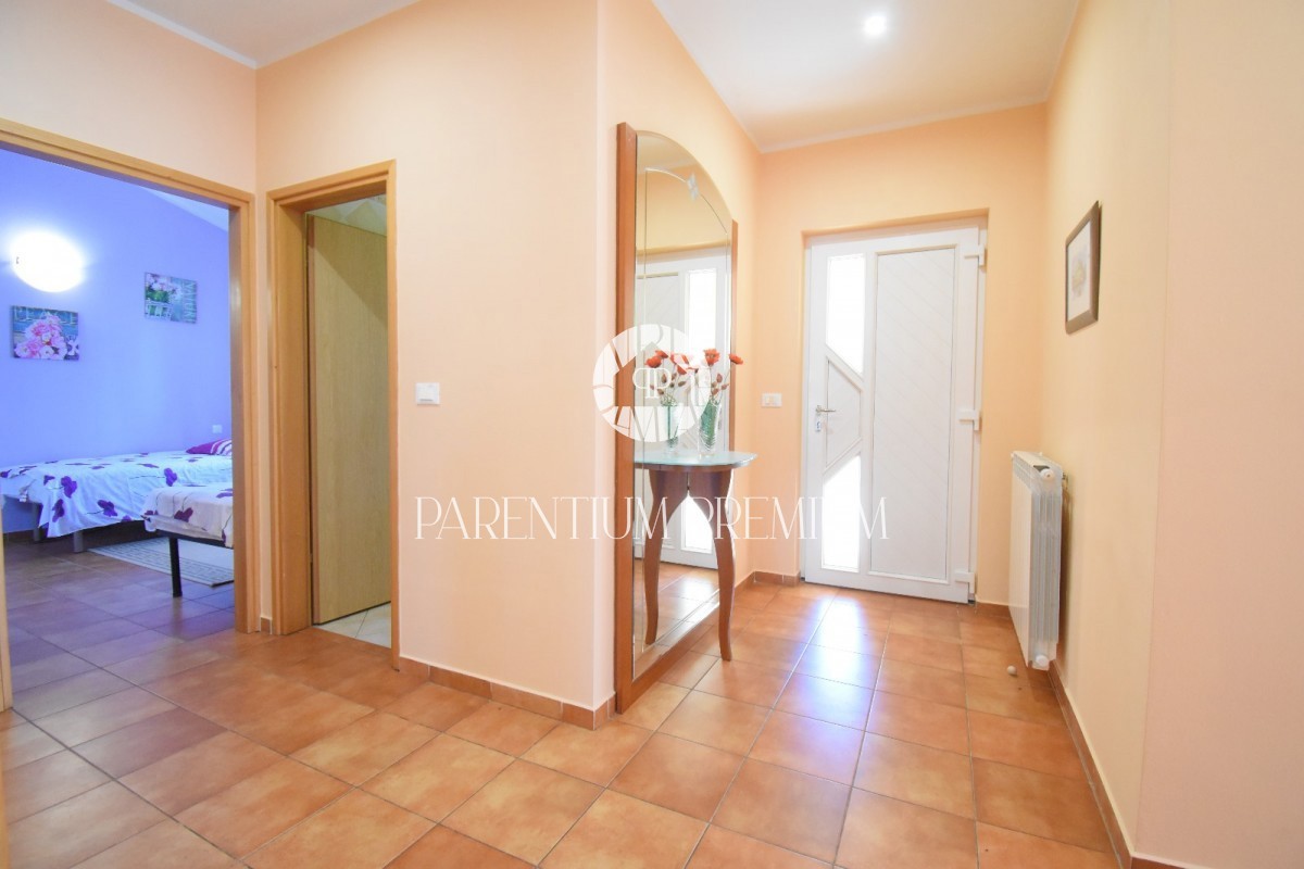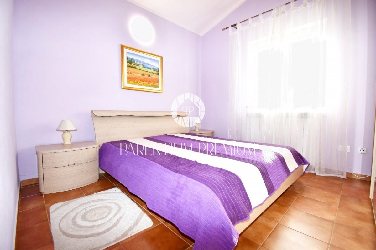 Istra, okolica Poreča Prodamo enonadstropno hišo v bližini Poreča na mirni lokaciji. Hiša ima površino 116 m² in se nahaja na zemljišču 761 m2 in je sestavljena iz predsobe, dveh spalnic, dveh kopalnic, shrambe, kuhinje z jedilnico in dnevne sobe z izhod