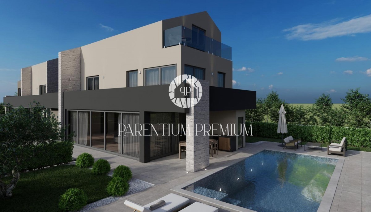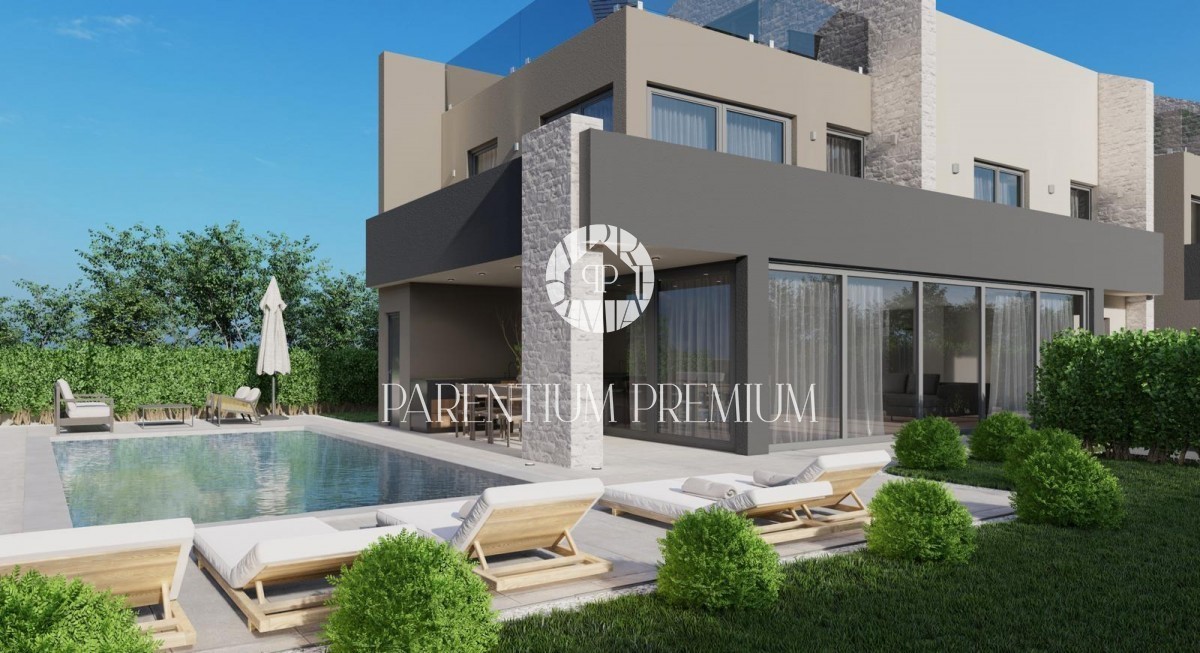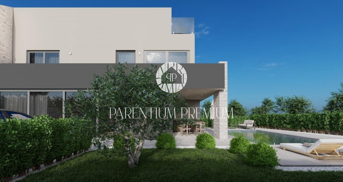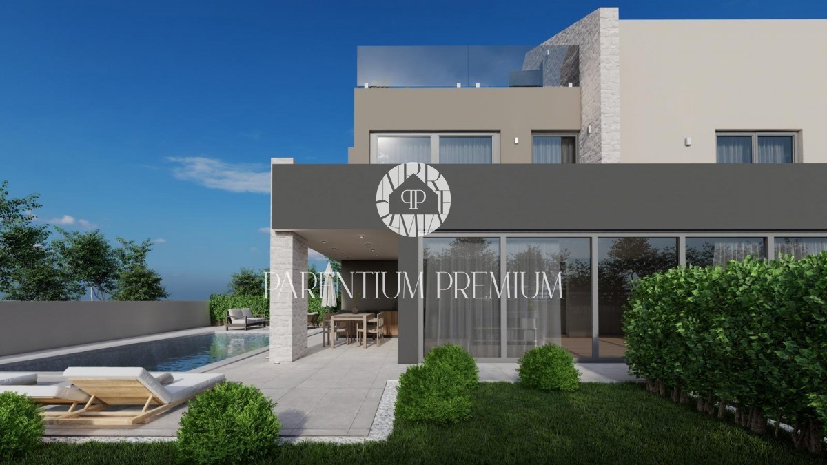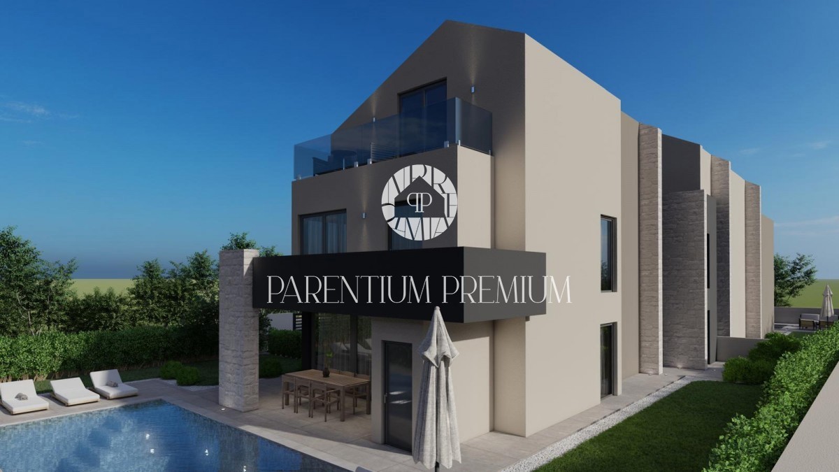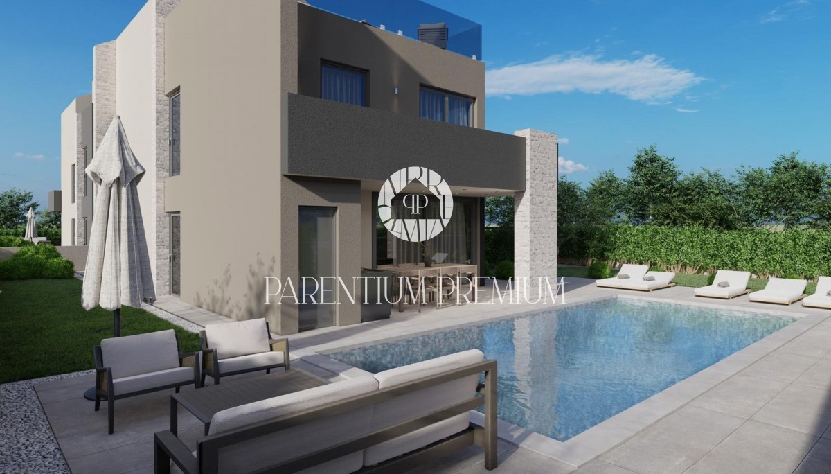 Istra, Poreč Vila s pogledom na morje 500 m od plaže! Na želeni lokaciji se nahaja čudovita moderna vila bruto površine 270 m2, ki se razprostira na parceli velikosti cca 900 m2, ki jo gradi znani domači investitor, znan po kvaliteti gradbeništva. Vseb