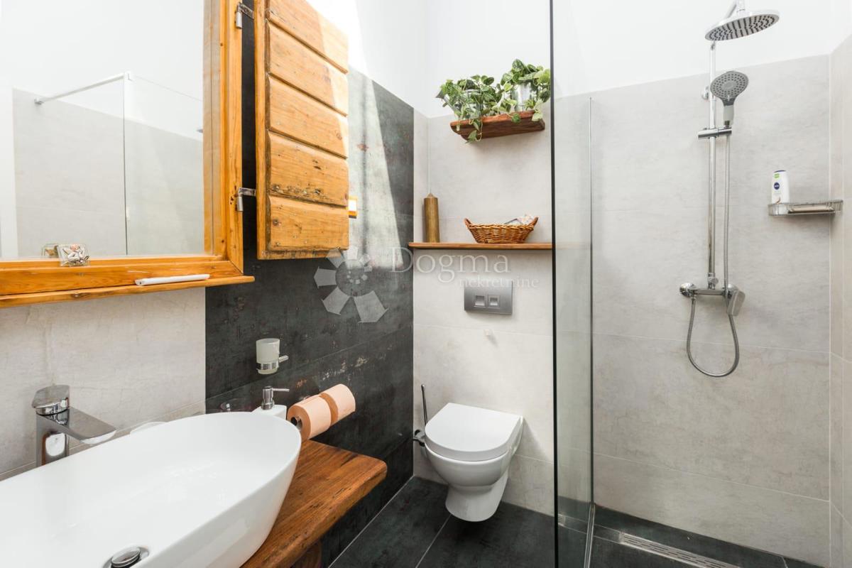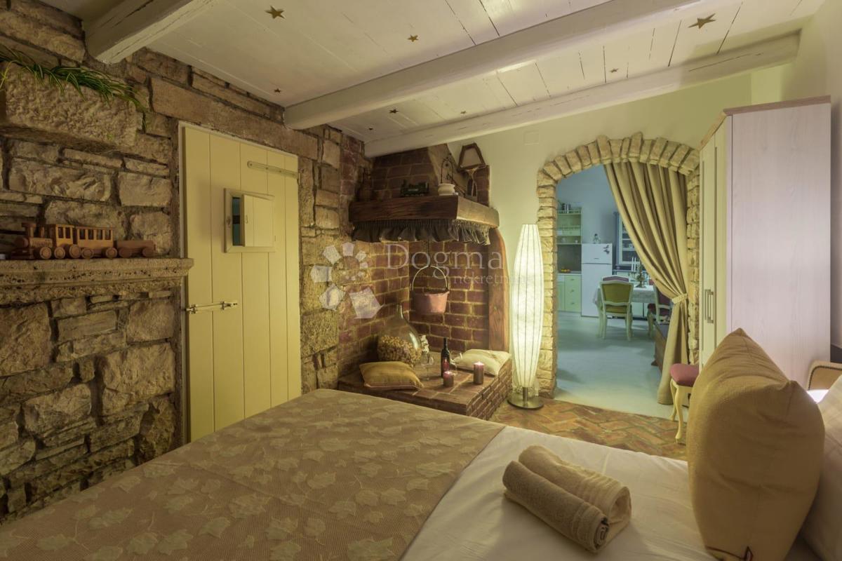 POREČ (okolica) - Hiša s 3 apartmaji in pogledom na morje Ta kamnita hiša je naprodaj le 10 minut vožnje od Poreča. Hiša ima tri stanovanjske enote + konobo, površine 322 m2, na parceli v skupni izmeri 380 m2. V pritličju se nahaja lepo urejeno in popolno