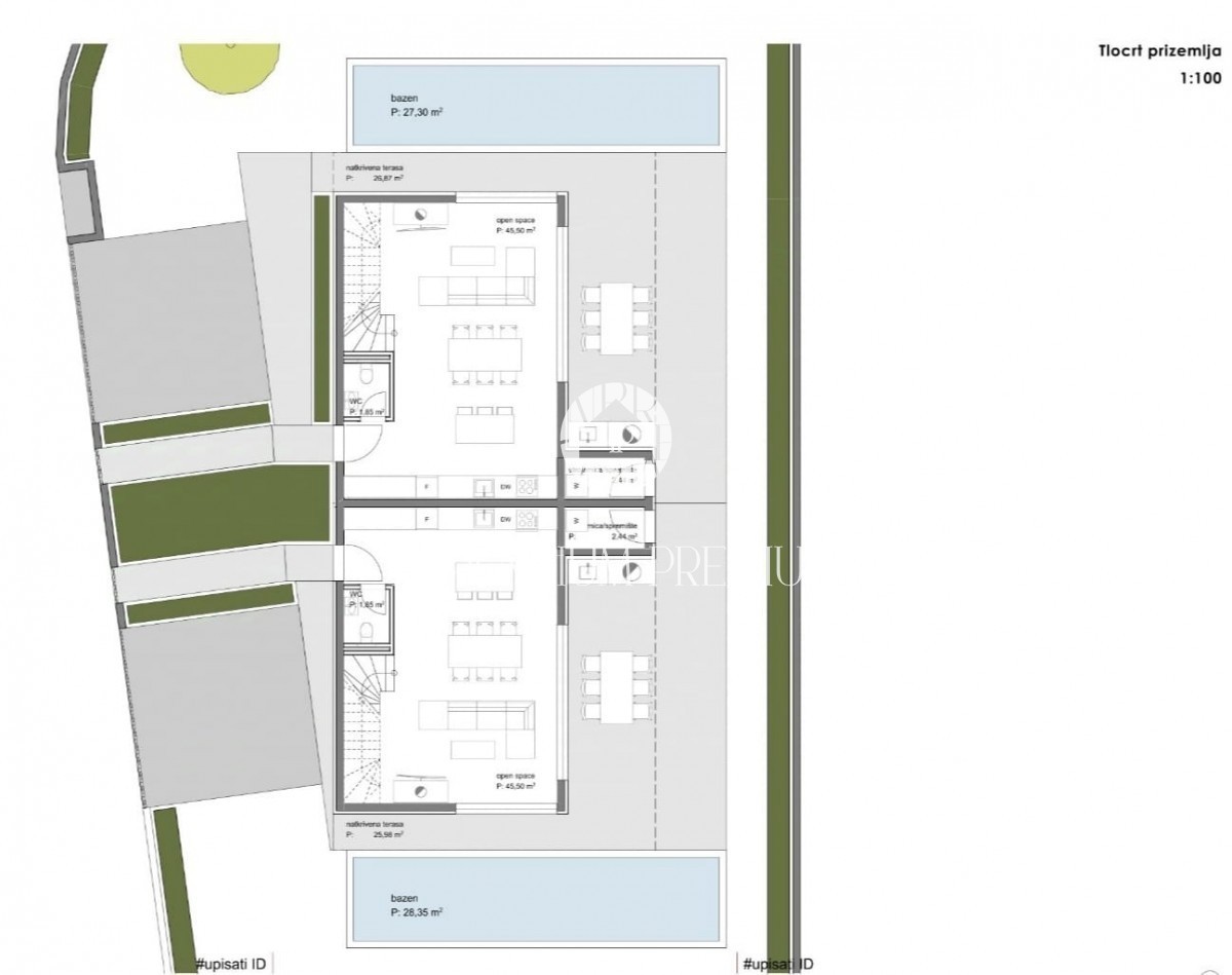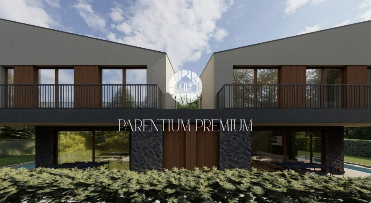 Istra, Poreč - okolica Na mirni avtohtoni istrski lokaciji se nahaja moderna hiša dvojček z bazenom s skupno površino 122,79m2. Izredno funkcionalna in lepo zasnovana hiša se razprostira v 2 etažah. V pritličju je prostorna in osvetljena odprta dnevna s