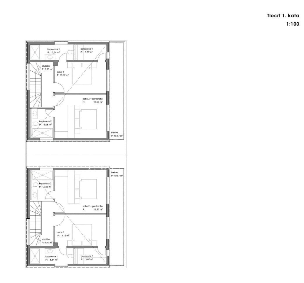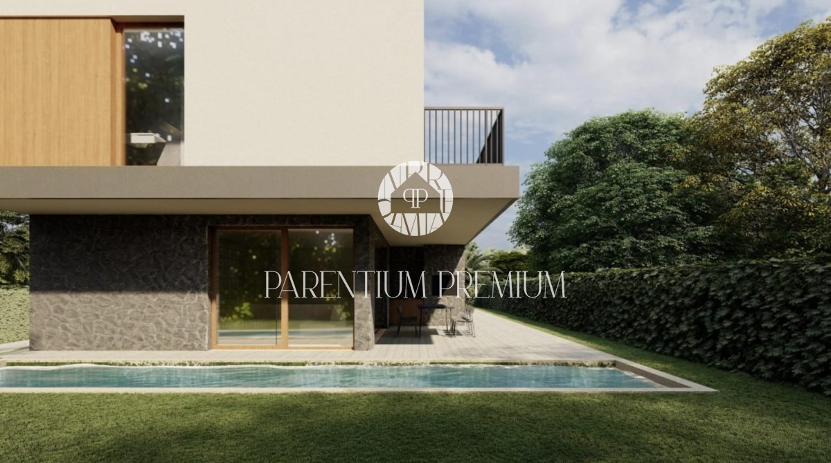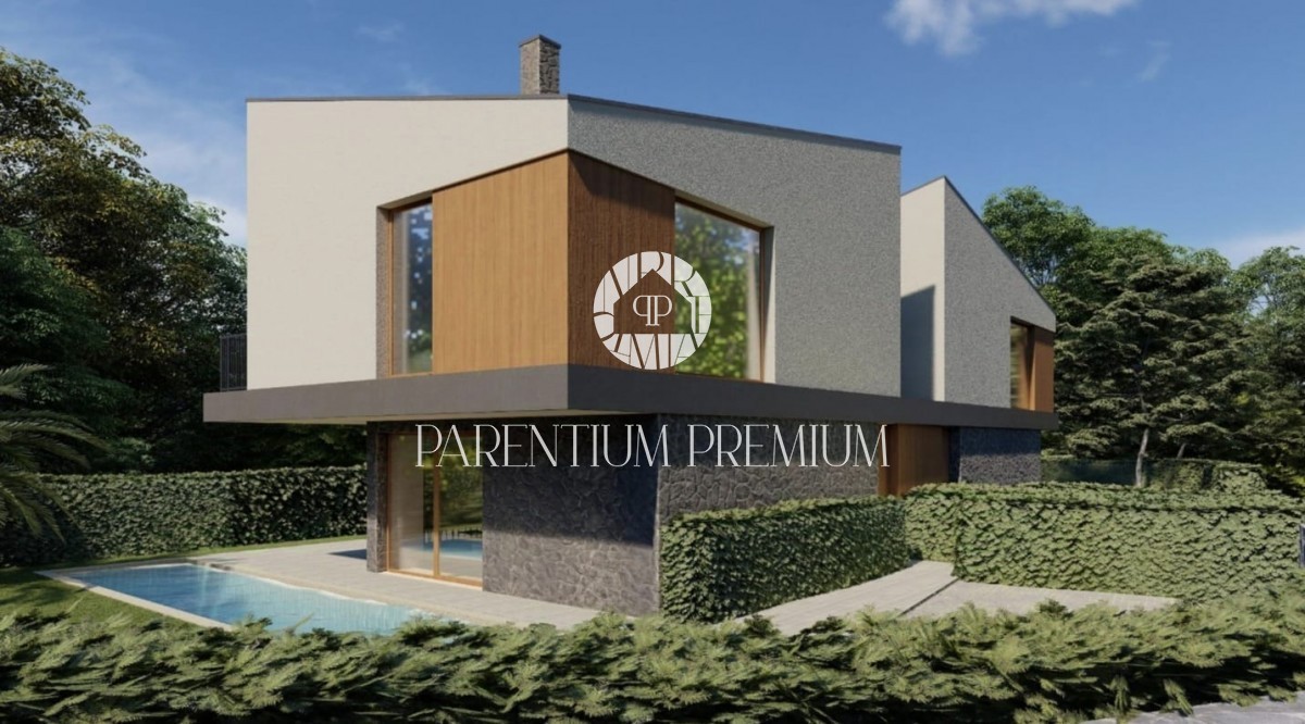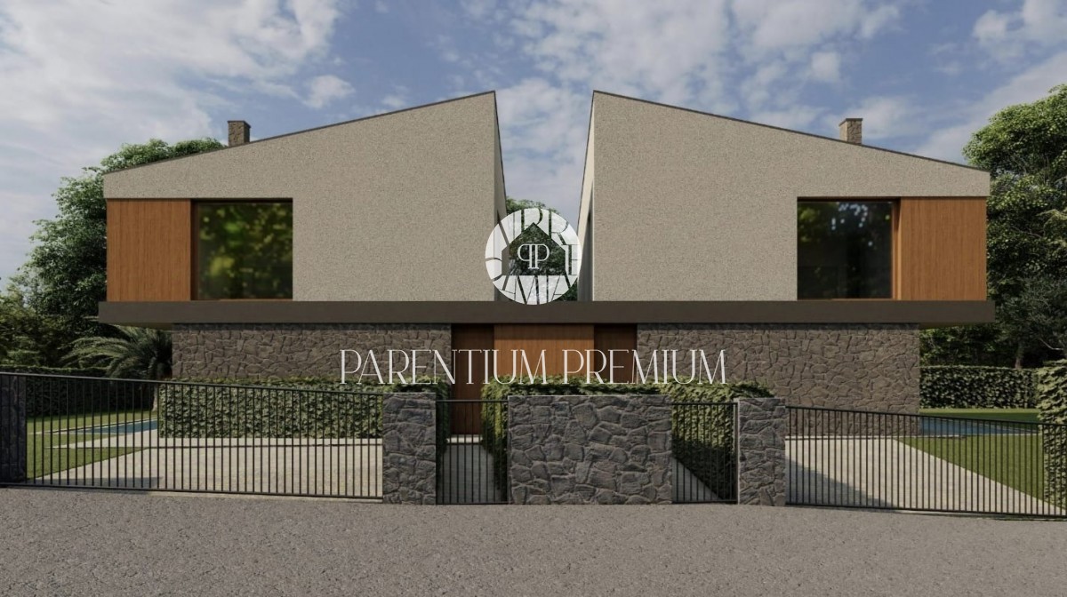 Istra, Poreč - okolica Na mirni avtohtoni istrski legi se nahaja moderna hiša dvojček z bazenom unikatne zasnove s skupno površino 122,36m2. Izredno funkcionalna in lepo zasnovana hiša se razprostira v 2 etažah. V pritličju je prostorna in osvetljena od