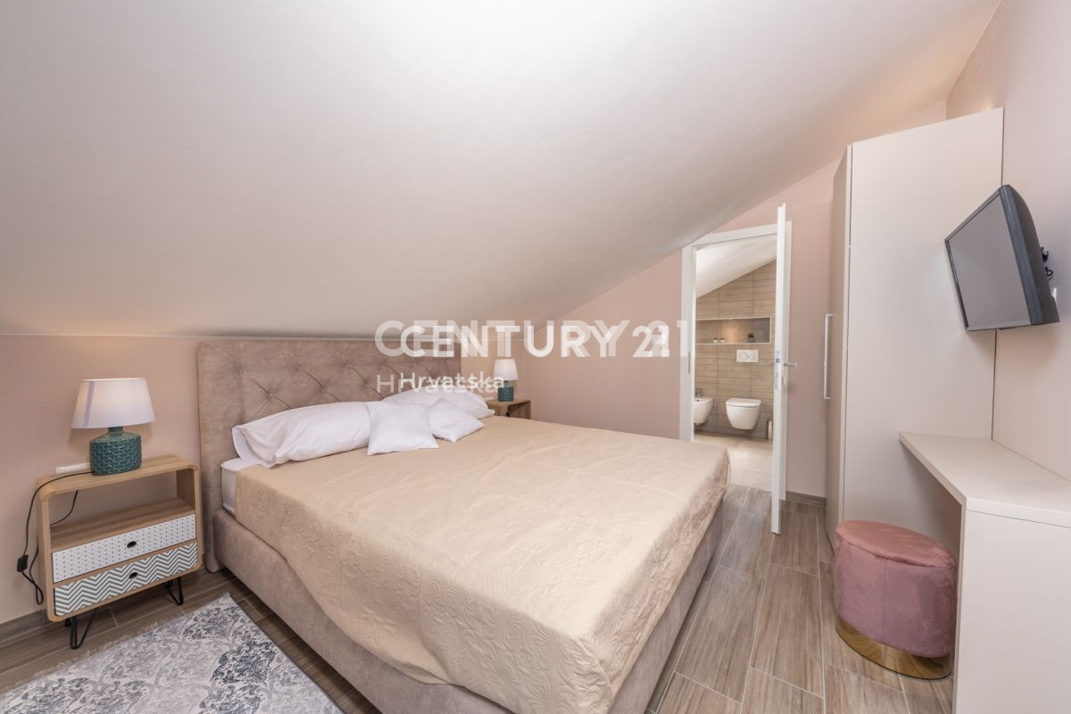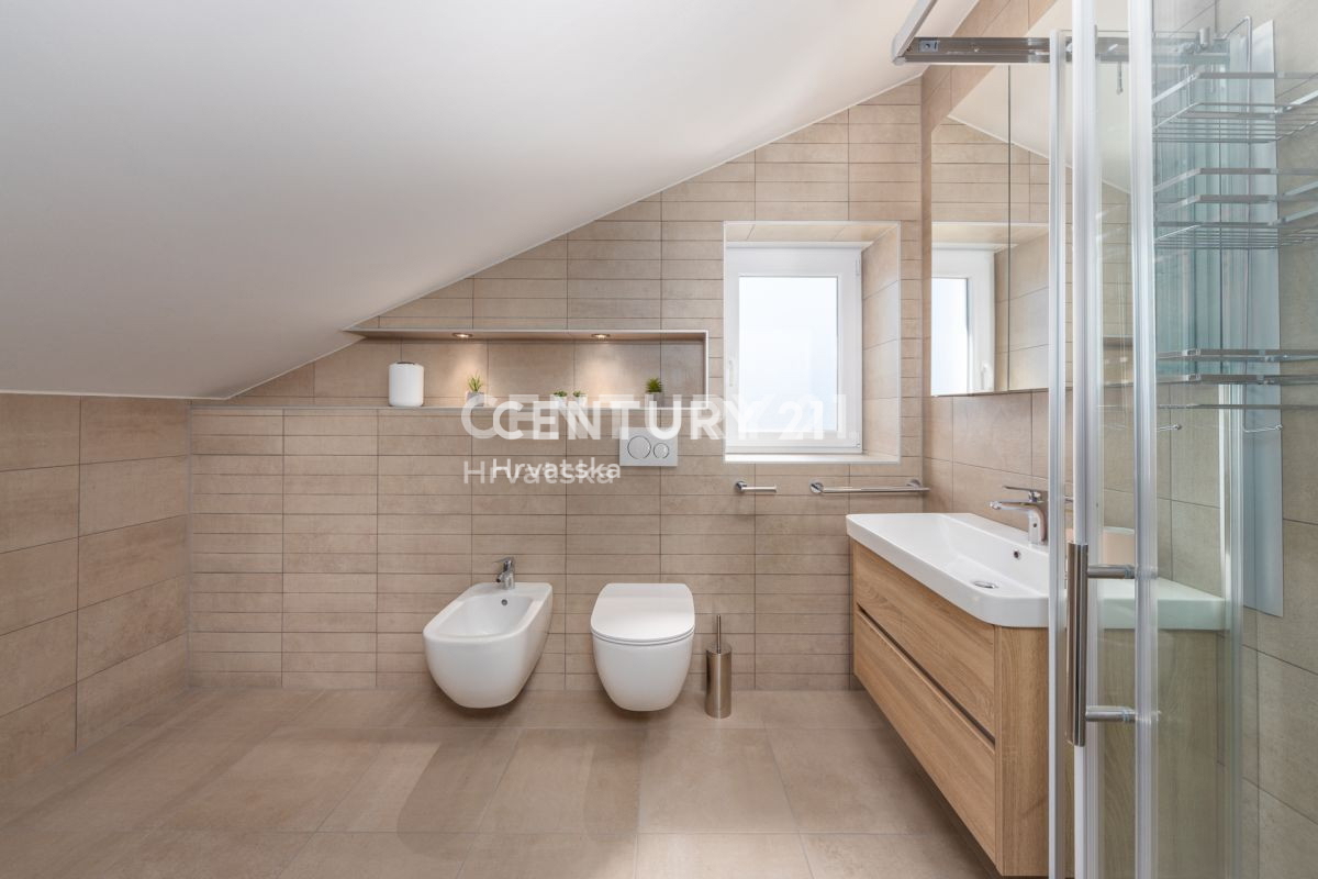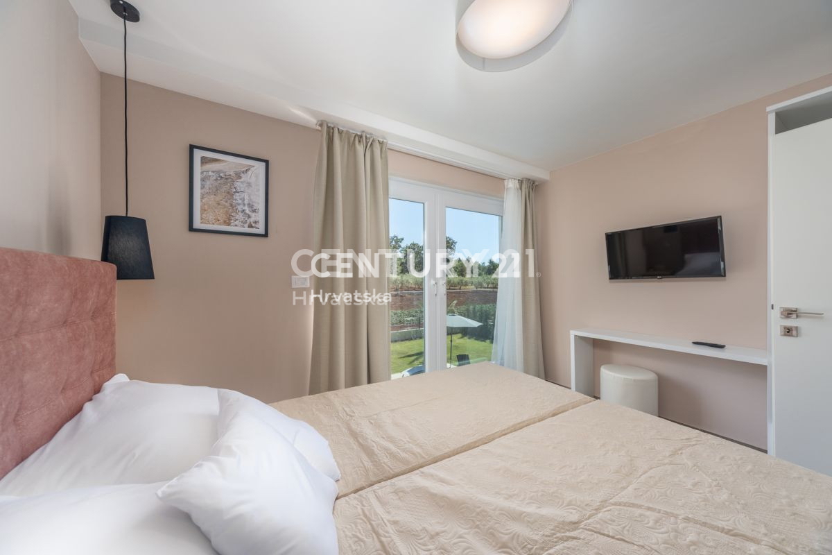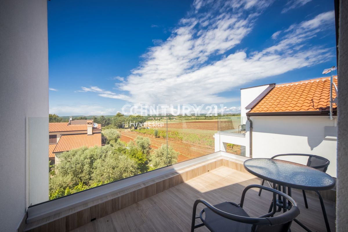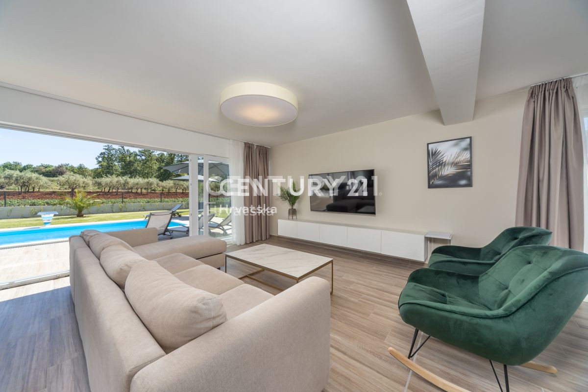 Ta luksuzno opremljena dvojna hiša s bazenom se nahaja v okolici Poreča, 5 km od prvih plaž in središča mesta. Vila je prostorna, z 6 spalnicami in 4 kopalnicami, veliko teraso v nadstropju, kategorizirana s 4 zvezdicami, ter se prodaja popolnoma opremlje