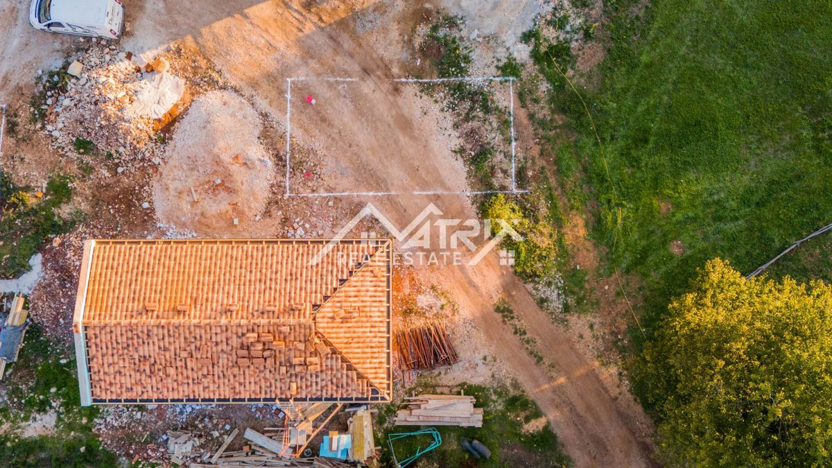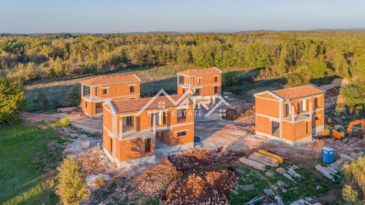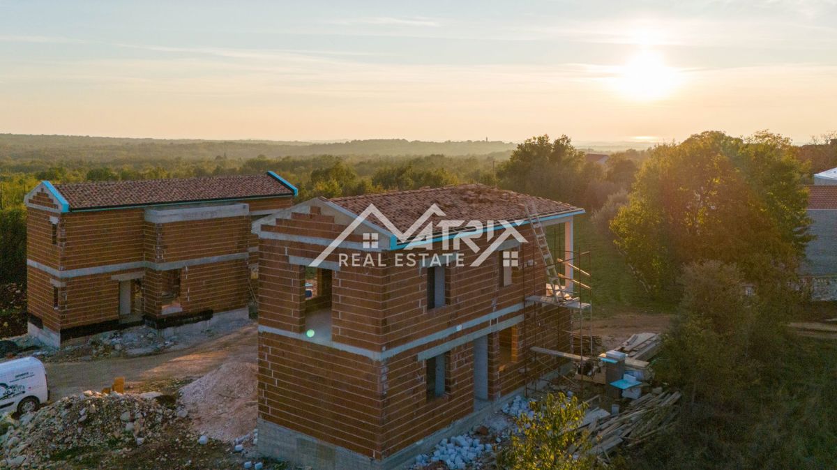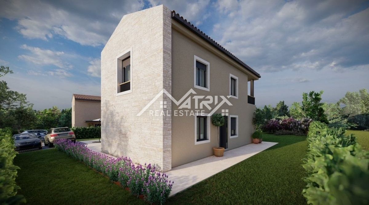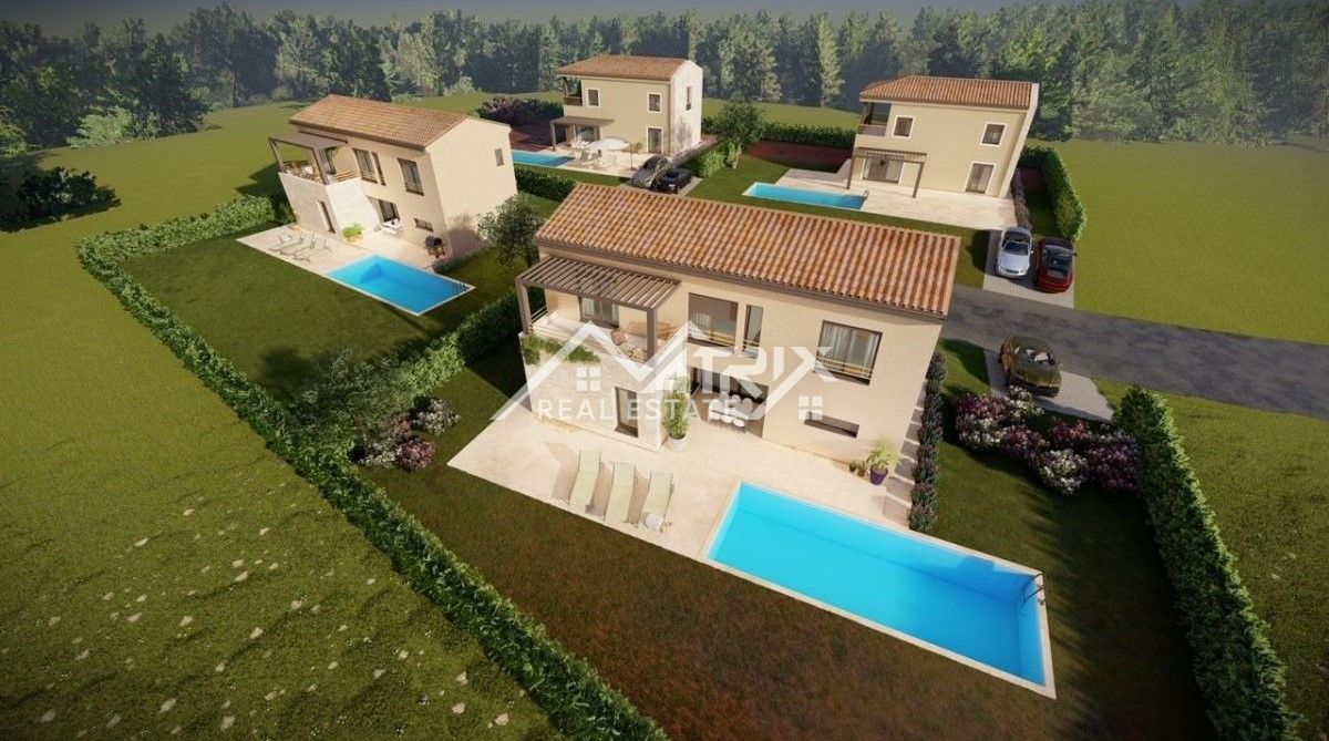 Poreč, okolica - Moderna hiša z bazenom in odprtim pogledom na naravo in morje! Novogradnja! Ta moderna hiša z bazenom s skupno neto bivalno površino 133 m2 je naprodaj, ki se nahaja v mirni vasici 17 km od morja in centra Poreča. Najbližja trgovina je o