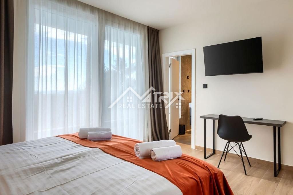 Poreč, okolica - Moderno opremljena in opremljena vila z bazenom v bližini morja in centra naselja z odprtim pogledom na morje! Na prodaj je ta moderno opremljena in opremljena vila z bazenom s skupno neto bivalno površino 296 m2, ki se nahaja v mirnem p