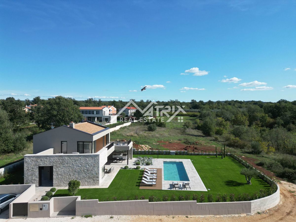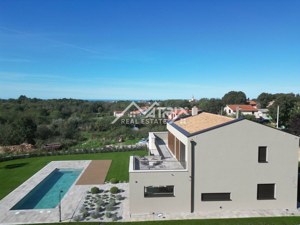 Na prodaj je razkošna vila, ki se nahaja na mirnem robu naselja, obdana z zelenjem in naravo, ter popolno združuje sodoben dizajn in udobje. Vila se nahaja le 7 kilometrov od Poreča in njegovih plaž ter je postavljena na prostorni parceli velikosti 1.002