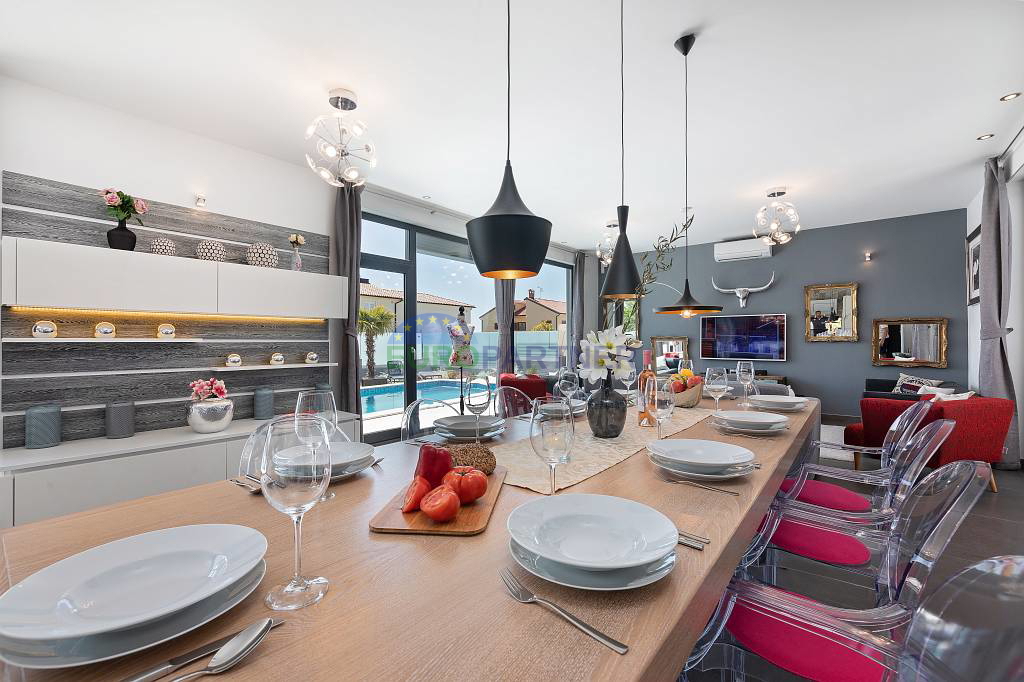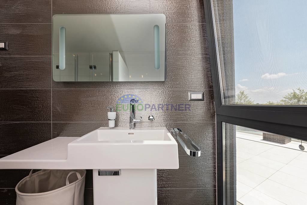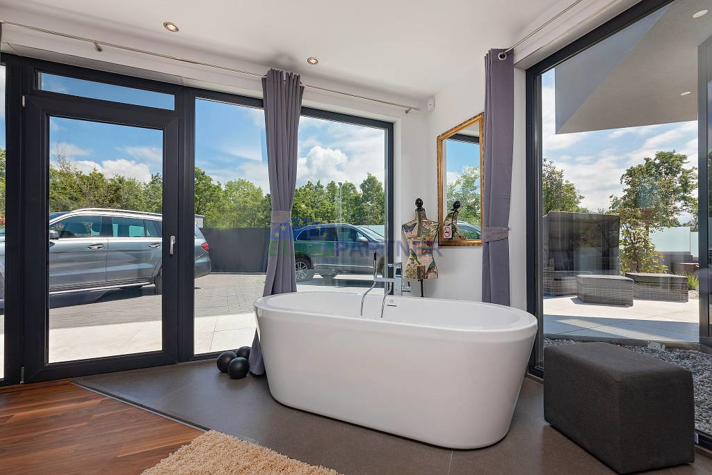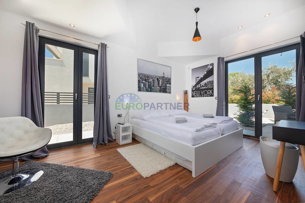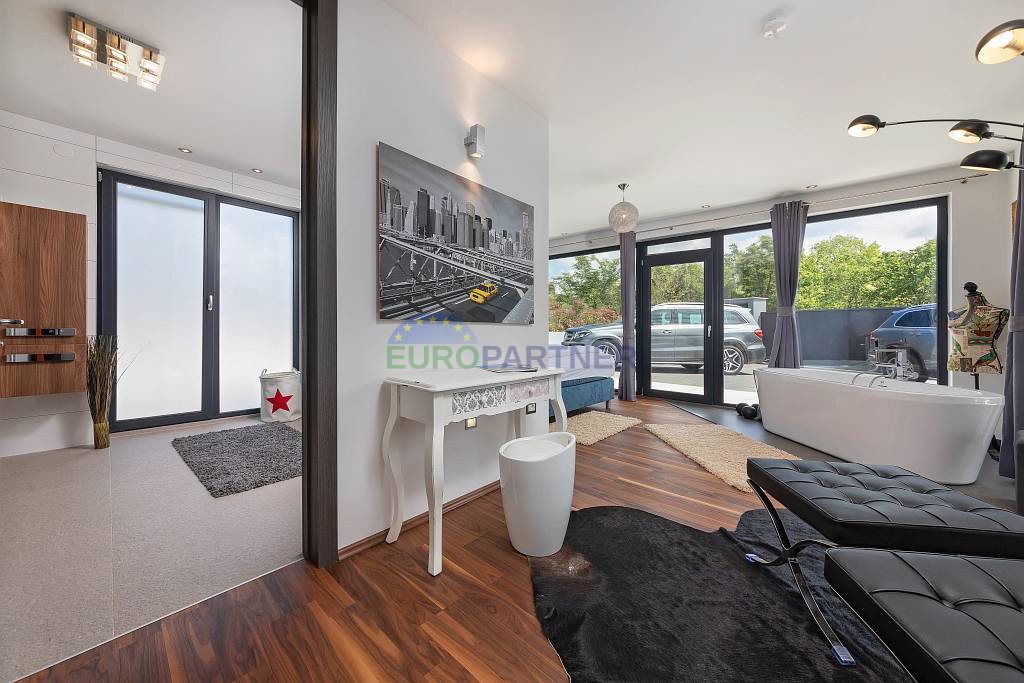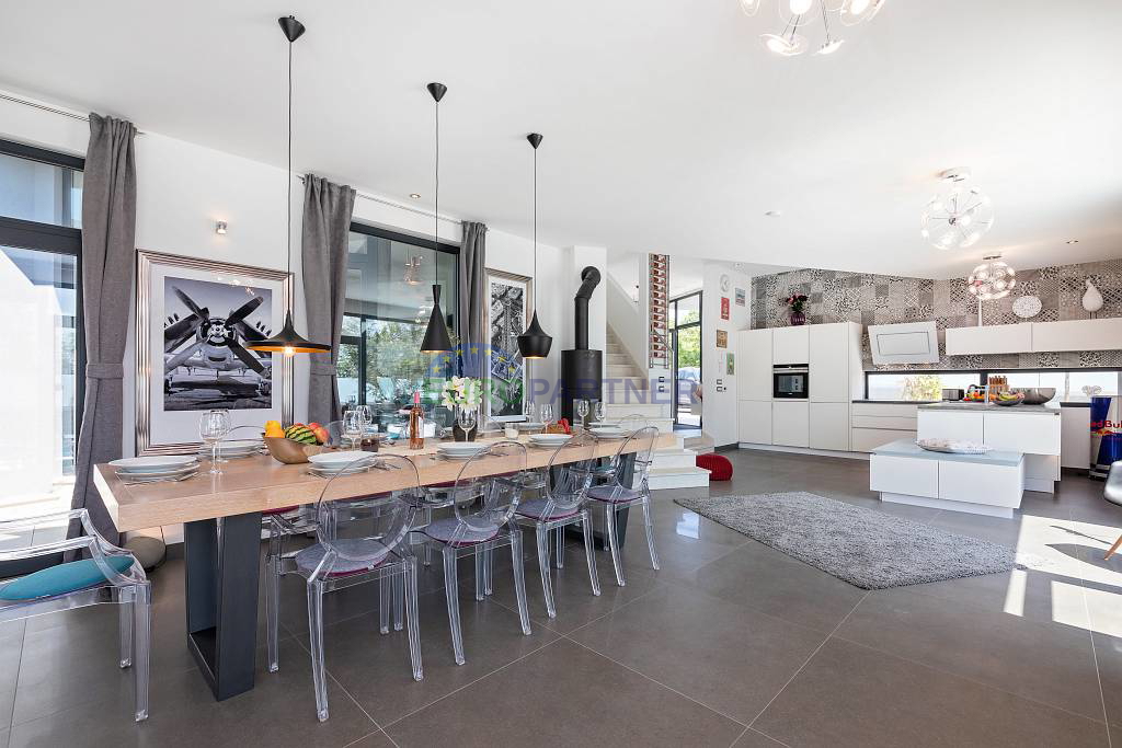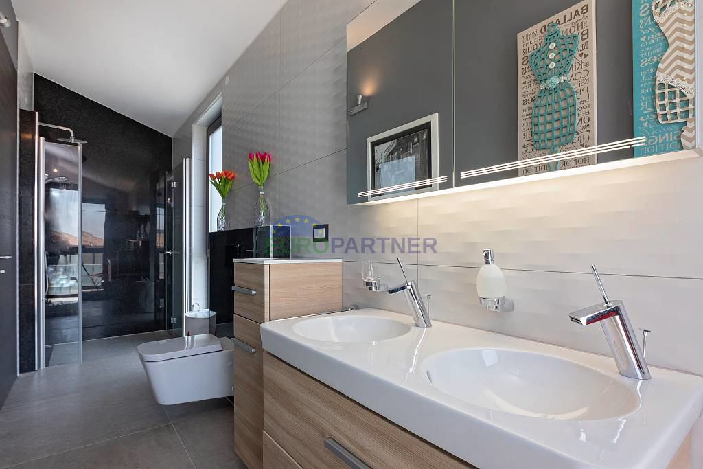 Ta osupljiva moderna vila ponuja 385 m2 razkošnega bivalnega prostora, postavljenega na prostornem zemljišču velikosti 871 m2. Zasnovana z mislijo na eleganco in funkcionalnost, ima vila obilico naravne svetlobe, zahvaljujoč velikim oknom, ki osvetljujejo