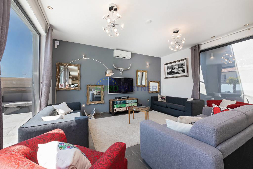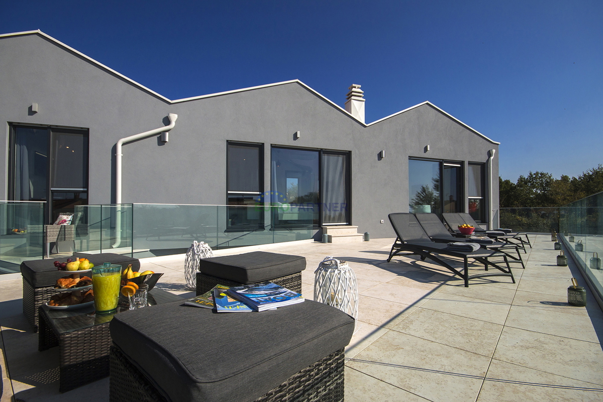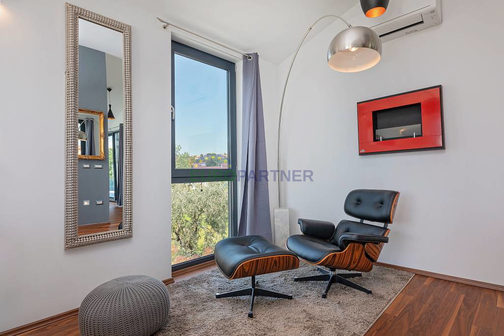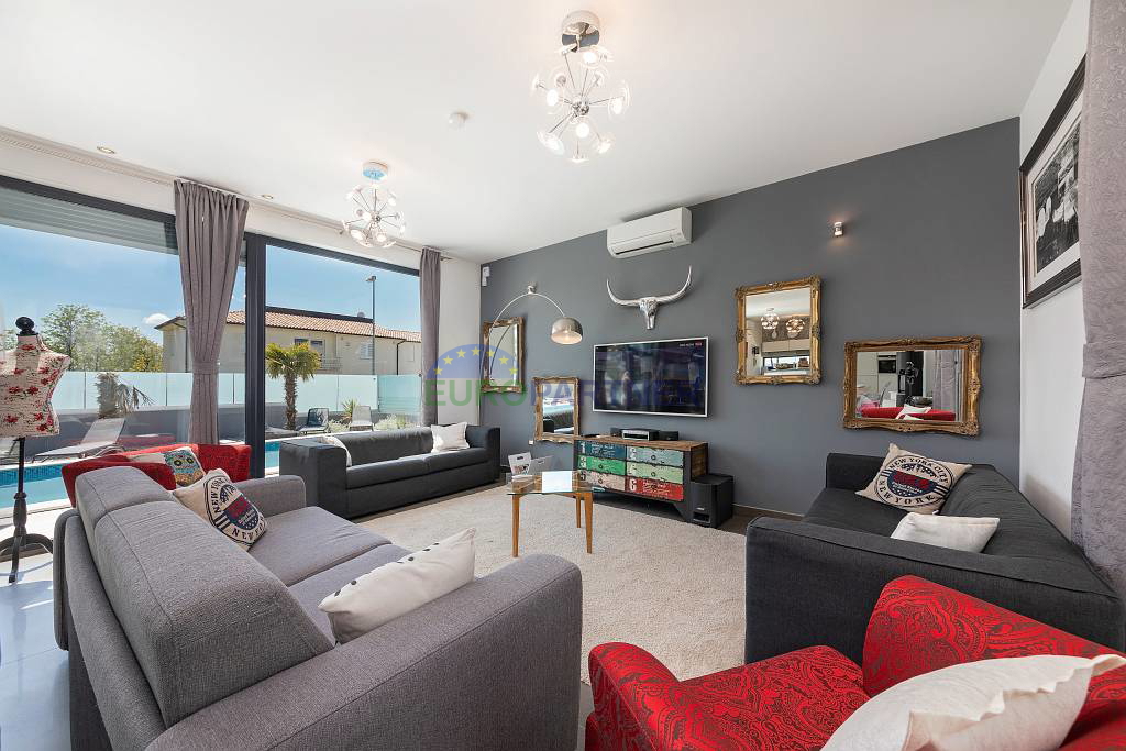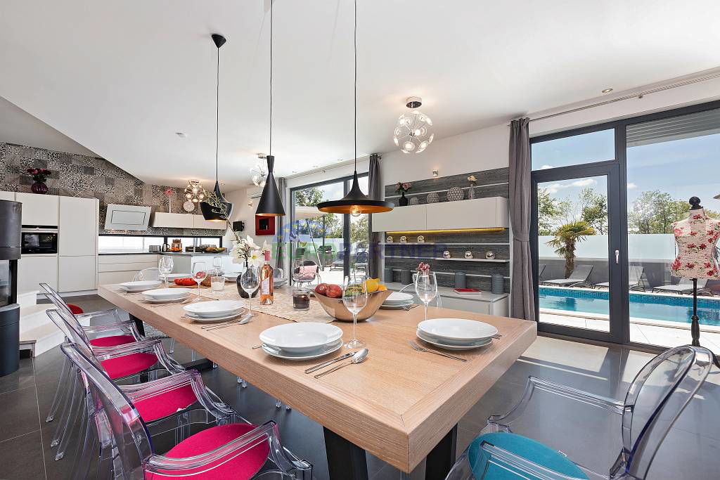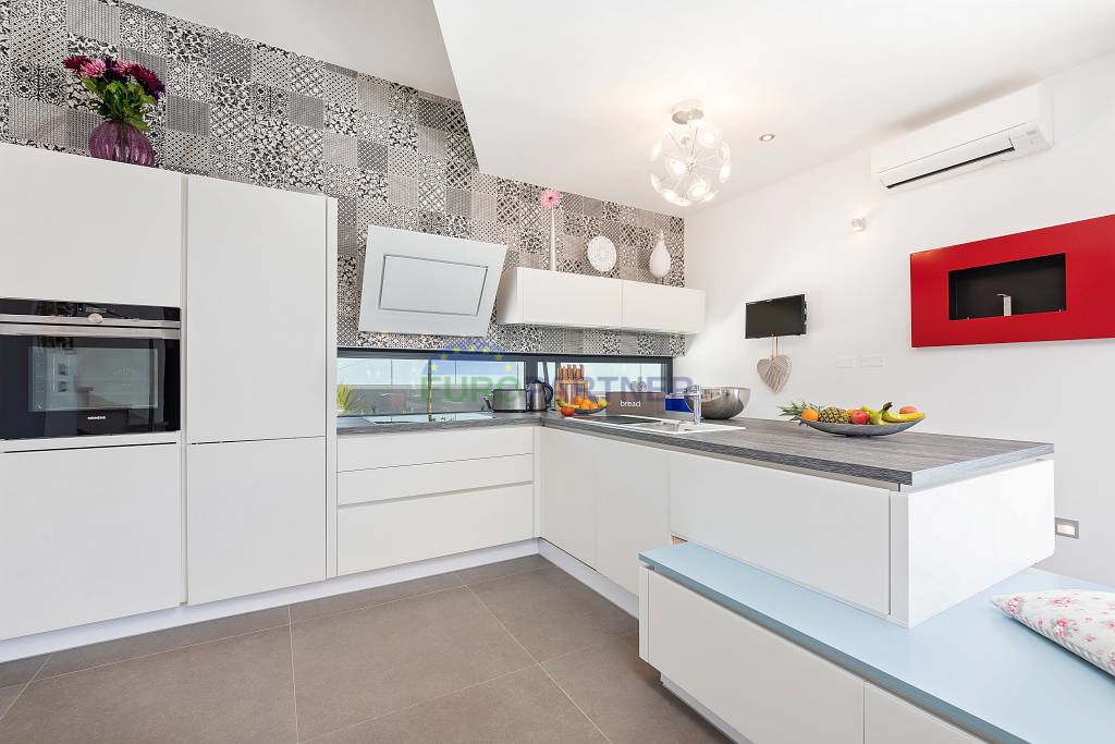 Ta osupljiva moderna vila ponuja 385 m2 razkošnega bivalnega prostora, postavljenega na prostornem zemljišču velikosti 871 m2. Zasnovana z mislijo na eleganco in funkcionalnost, ima vila obilico naravne svetlobe, zahvaljujoč velikim oknom, ki osvetljujejo