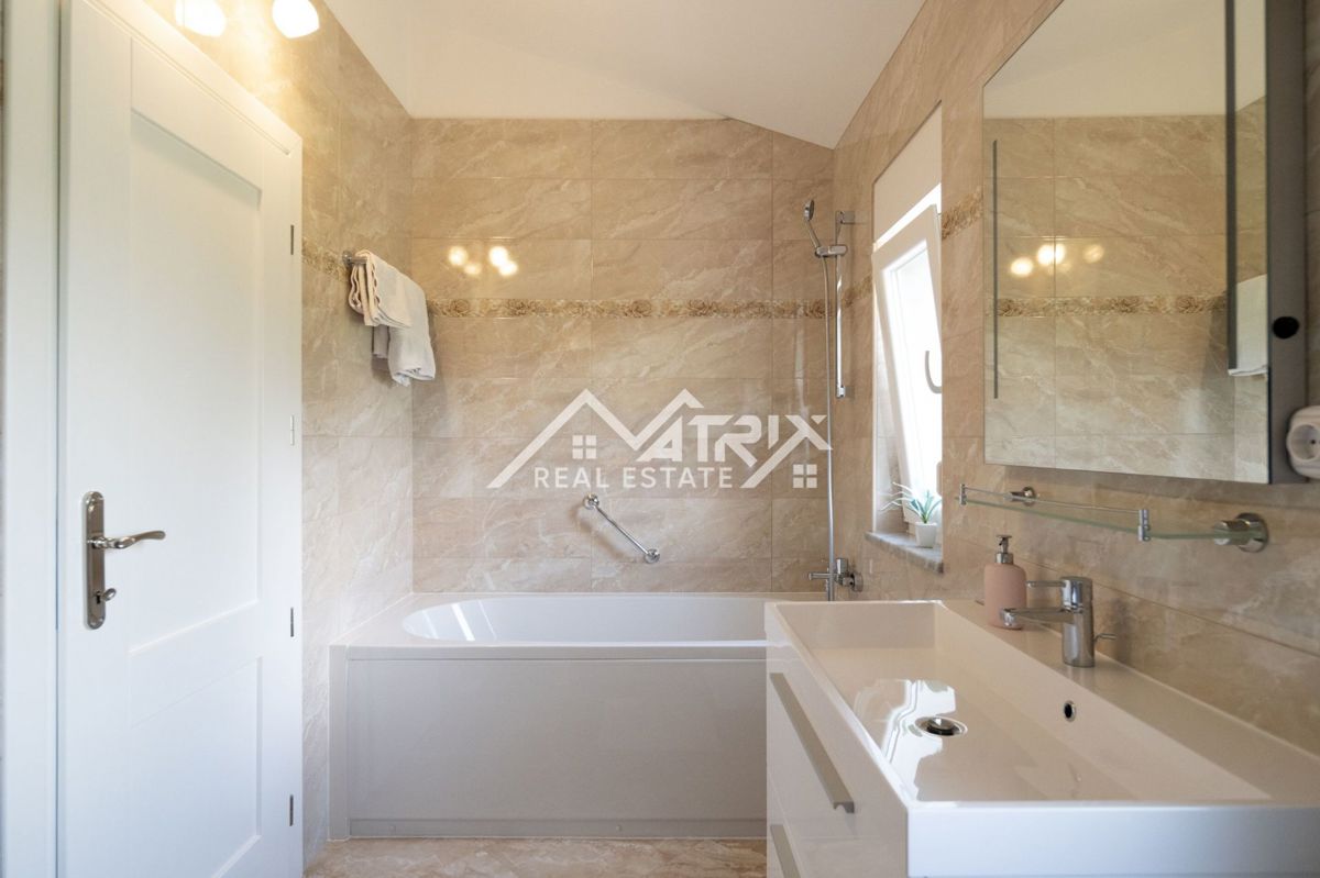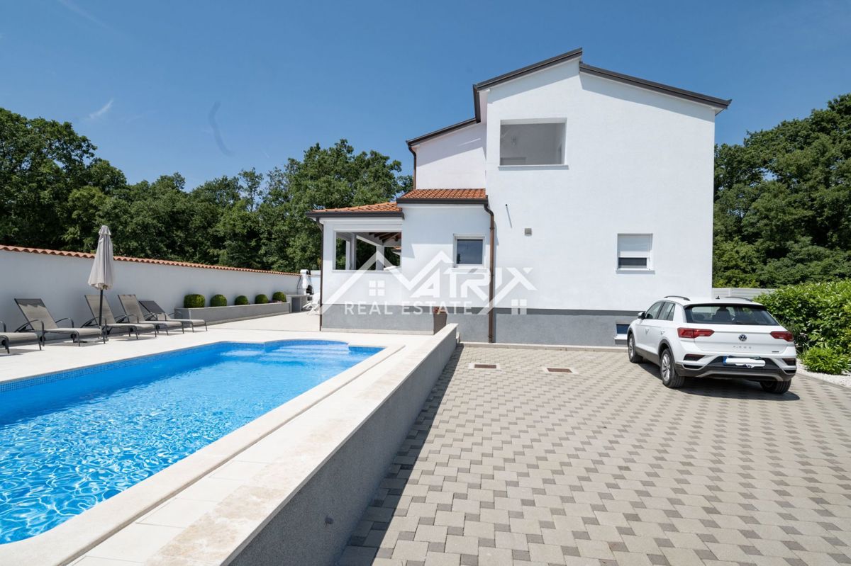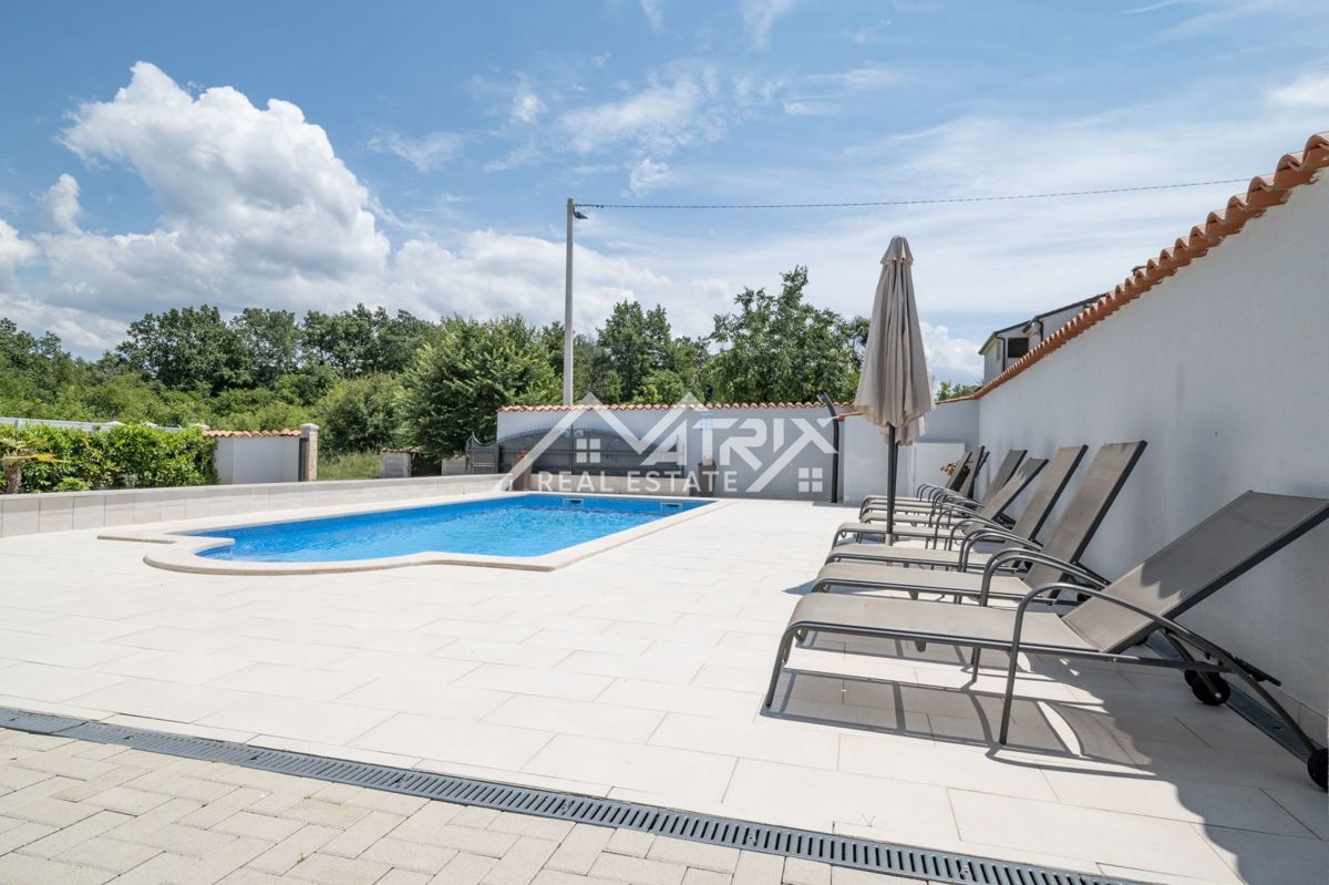 Predstavljamo vam čudovito vilo z bazenom, ki se nahaja v idilični vasici nedaleč od mesta Poreč. Ta očarljiva posest je obdana z nedotaknjeno naravo in le 6 km od čudovitih plaž Jadranskega morja. Vilo sestavljata dve popolnoma enaki ločeni stanovanjski