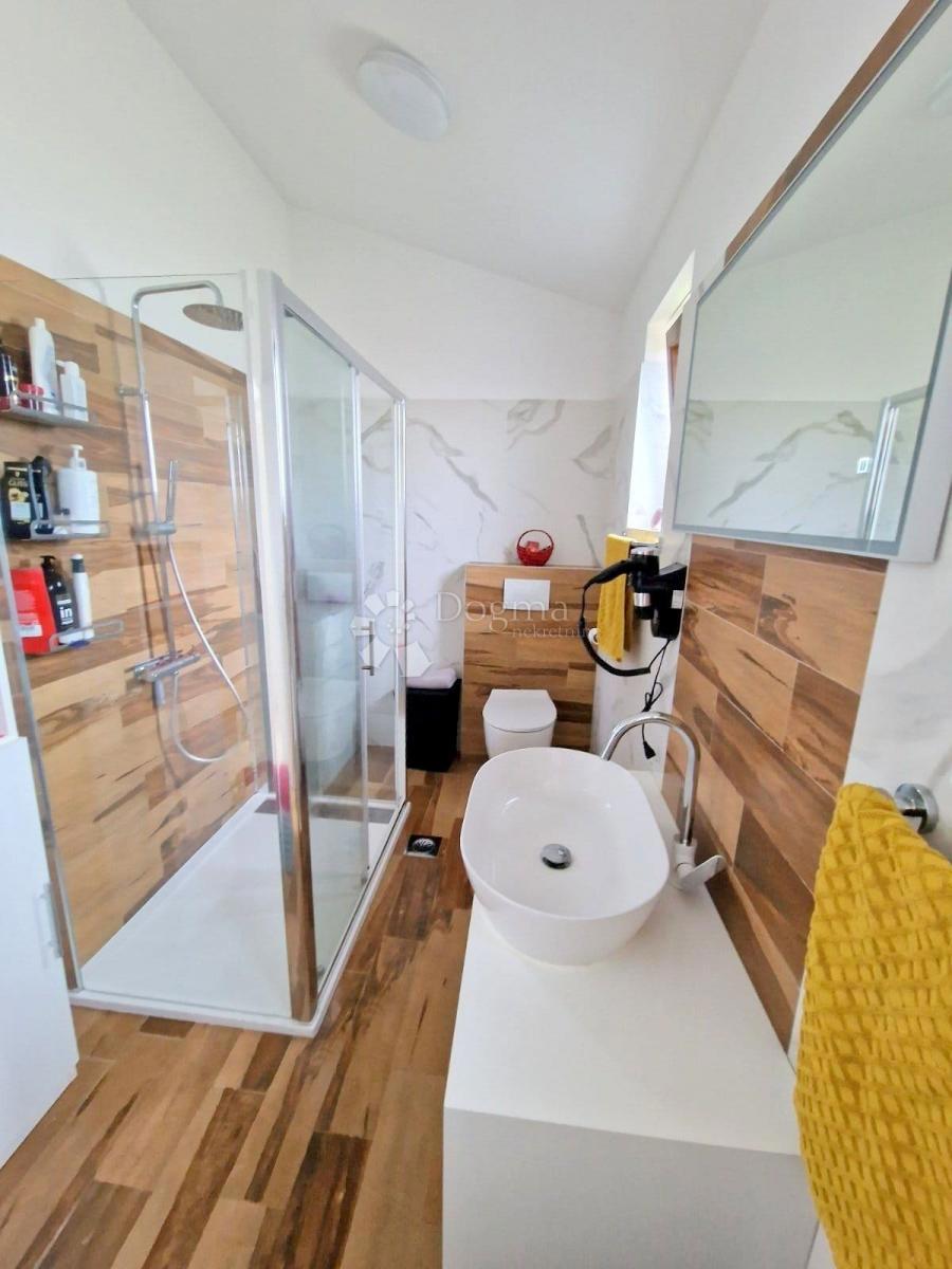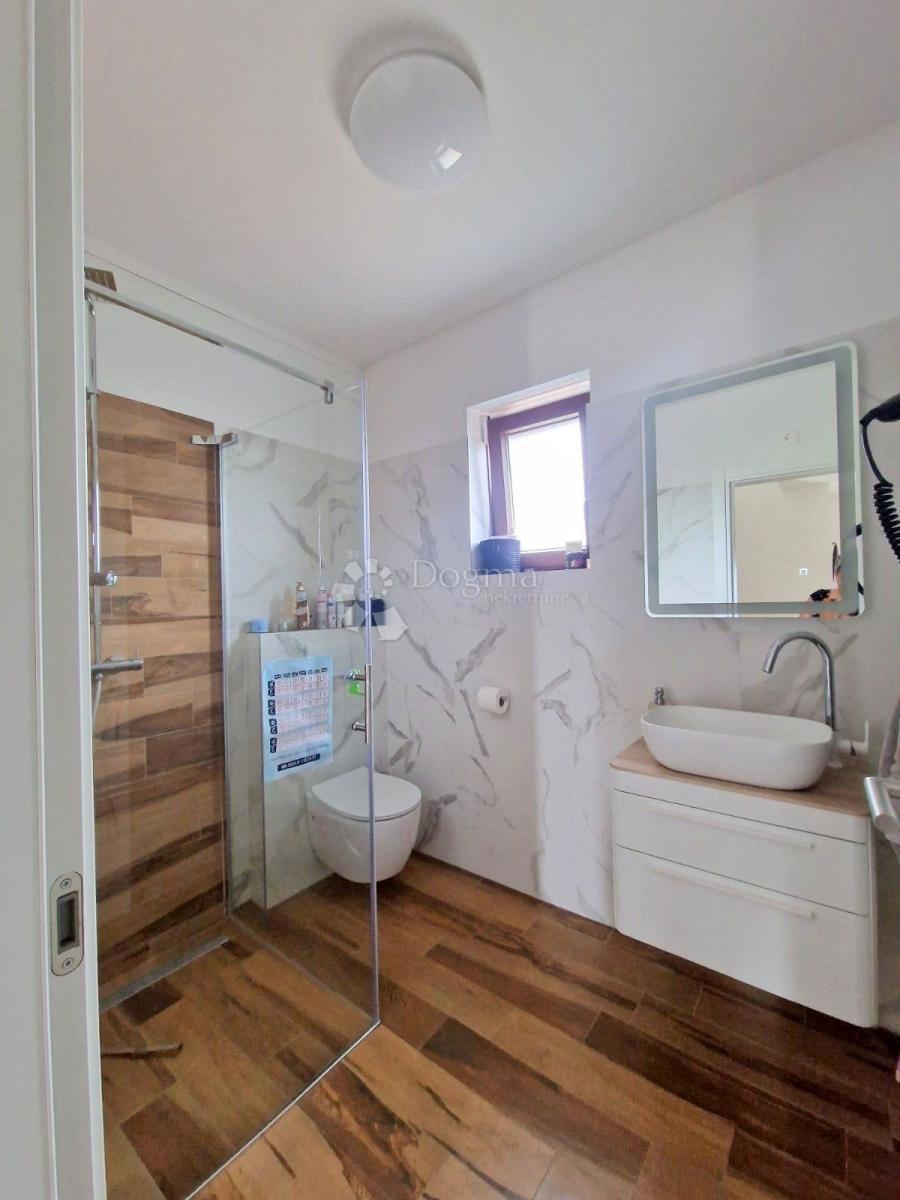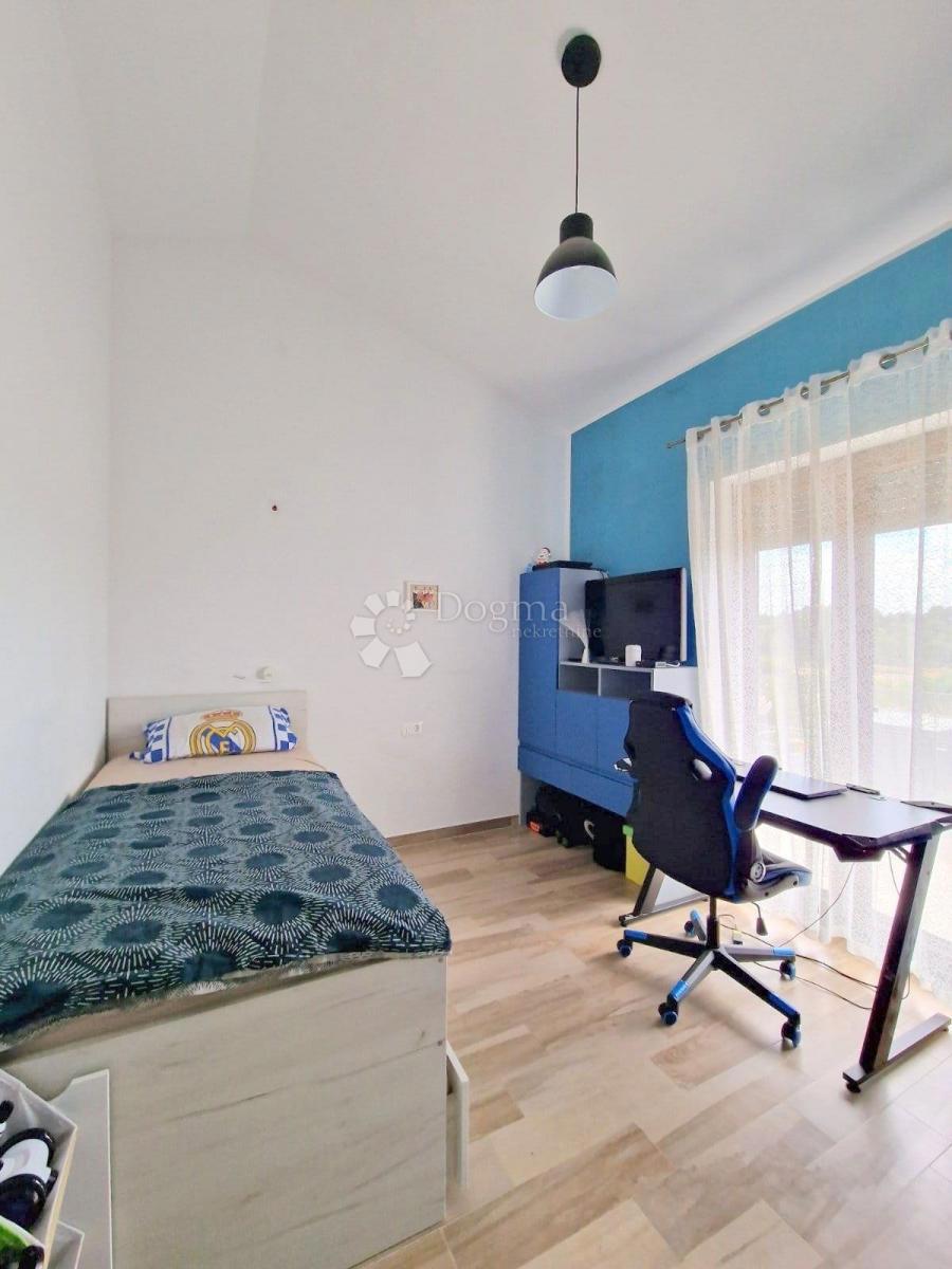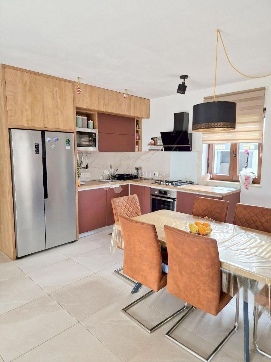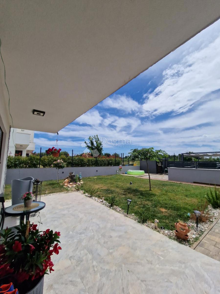 POREČ (okolica) - Nova moderna hiša zadnja v vrsti Samo 15 minut vožnje od Poreča se nahaja moderna hiša zadnja v vrsti. Površina hiše je 92 m2 razdeljena na dve etaži. V pritličju je predsoba, kuhinja z jedilnico, prostorna dnevna soba z izhodom na delno