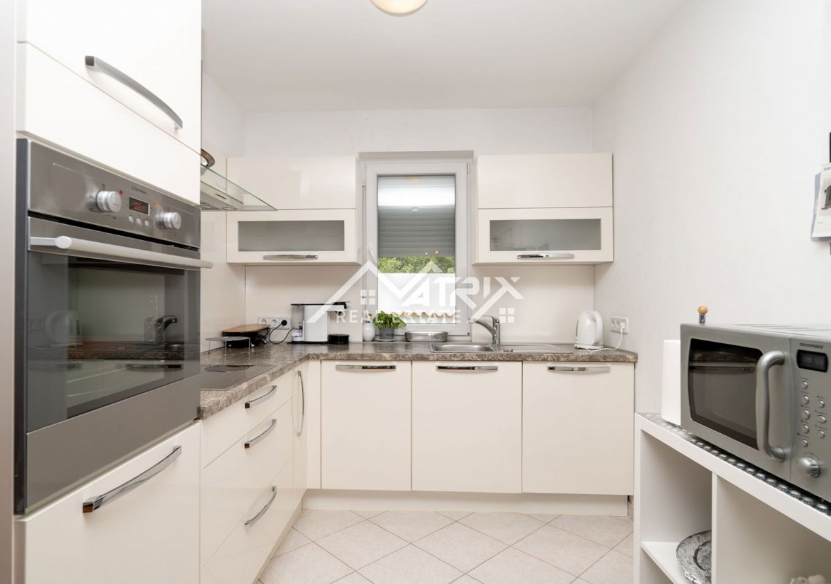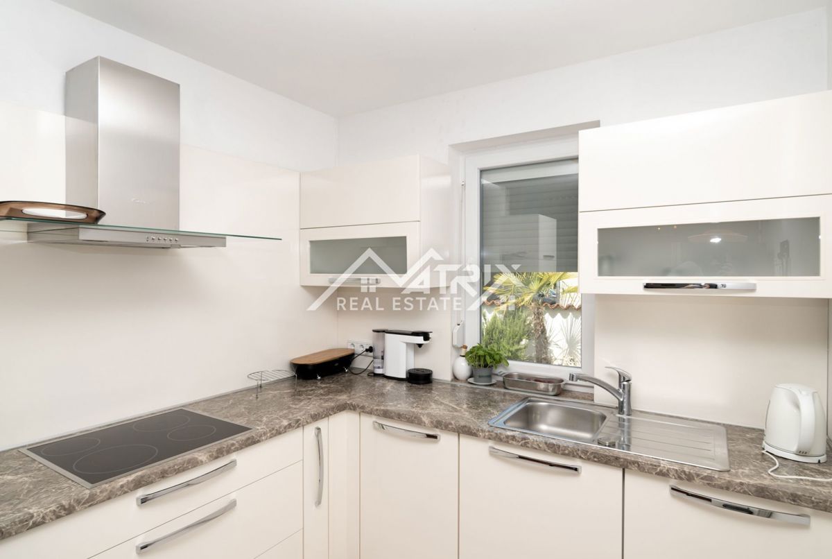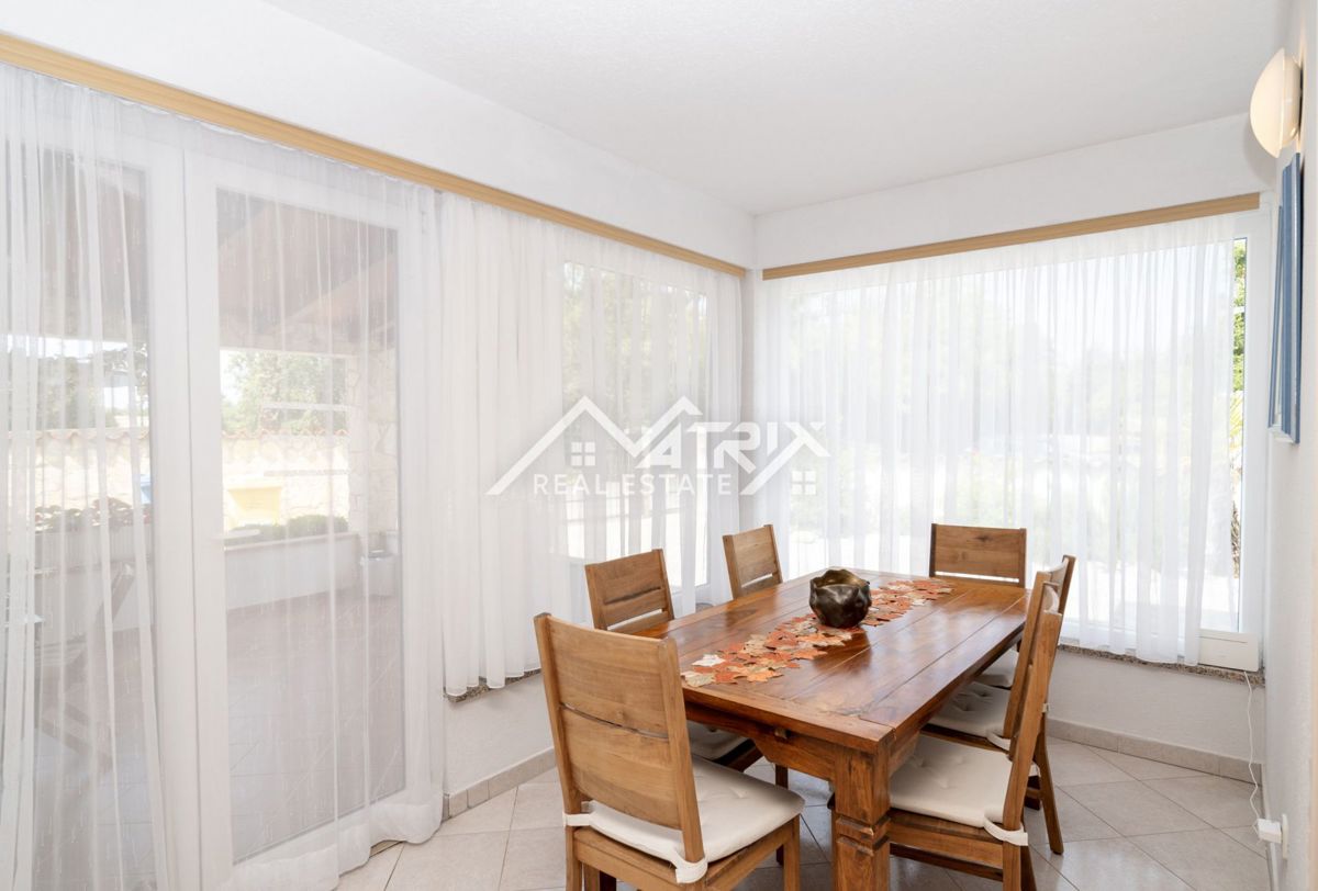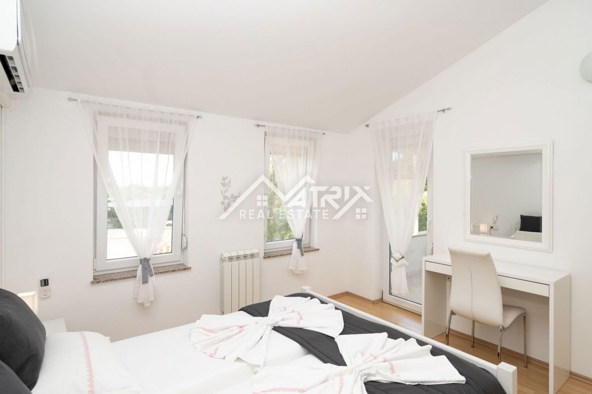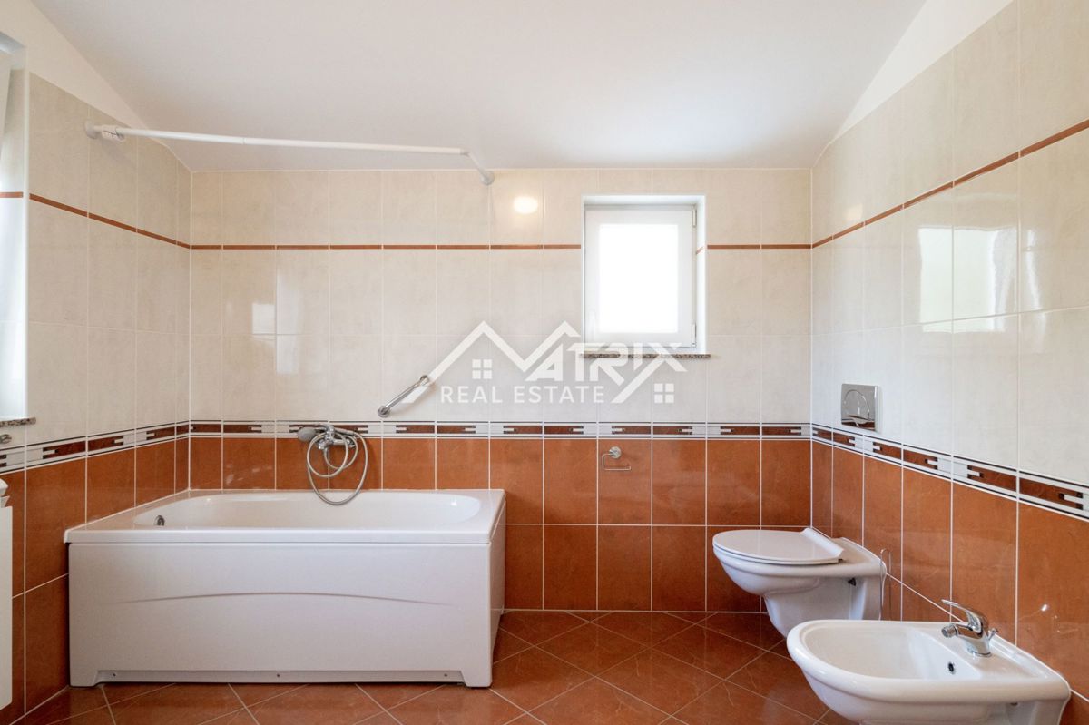 Dobrodošli v tej moderni hiši z bazenom, ki se nahaja v idilični vasici nedaleč od mesta Poreč. Hiša je obdana z naravo in je od morja oddaljena le 6 km. Razteza se v pritličju in prvem nadstropju, s skupno bivalno površino 120 m². Pritličje hiše je zasn
