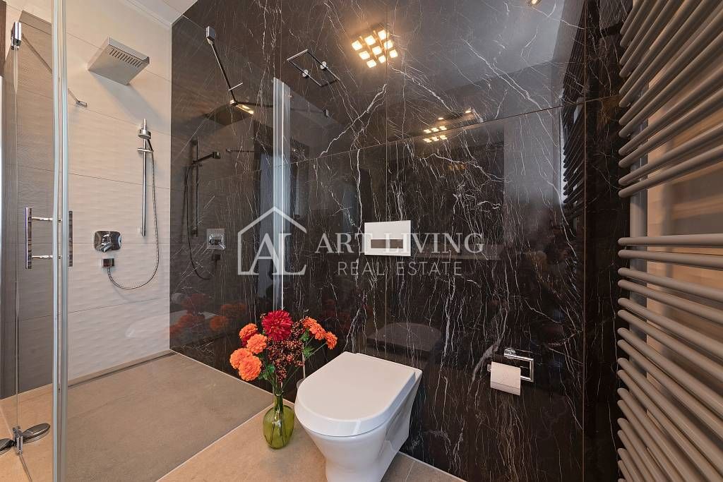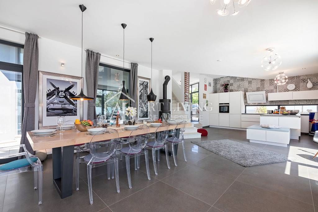 Istra, Poreč, okolica Prodaja se luksuzna vila z moderno zasnovanim bazenom, na mirni in lepi lokaciji, le 10 km od mesta Poreč in njegovih čudovitih plaž. Vila se razteza v dveh etažah, pritličju in nadstropju, ima skupno površino 385 m2 in ima prosto