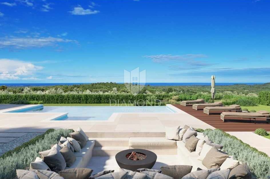 Poreč, Okolica – Impozantna Hiša s Panoramskim Razgledom V idiličnem okolju blizu Poreča se gradi razkošna hiša, ki s svojim sodobnim dizajnom in skrbno izbranimi detajli združuje vrhunsko udobje in spektakularne poglede. Lokacija nudi mir in zasebnost,