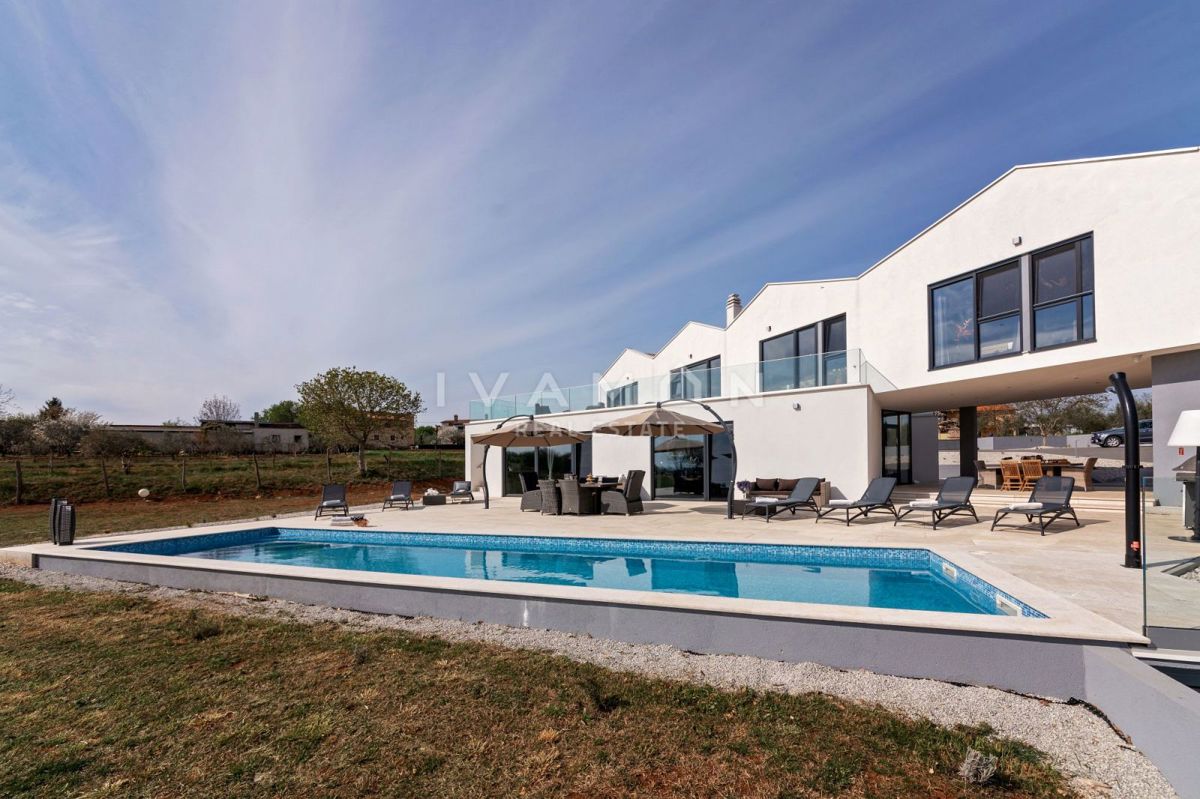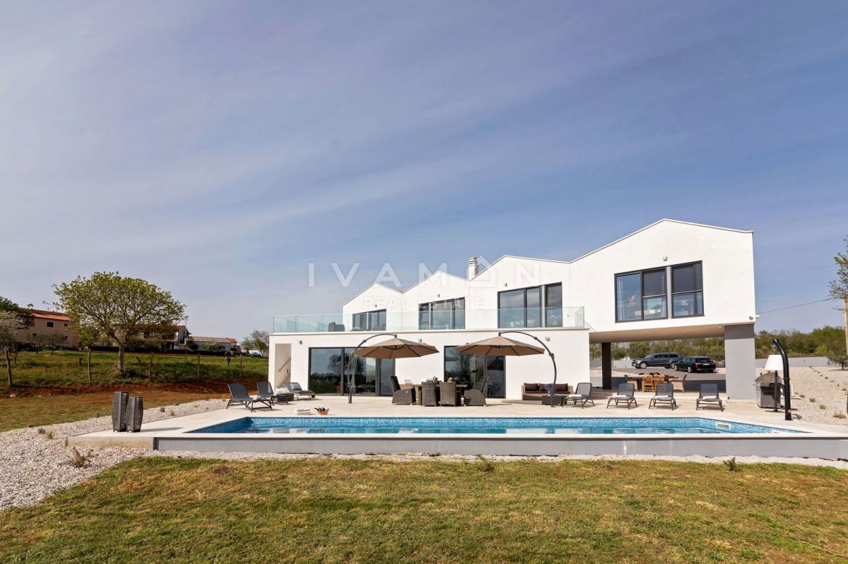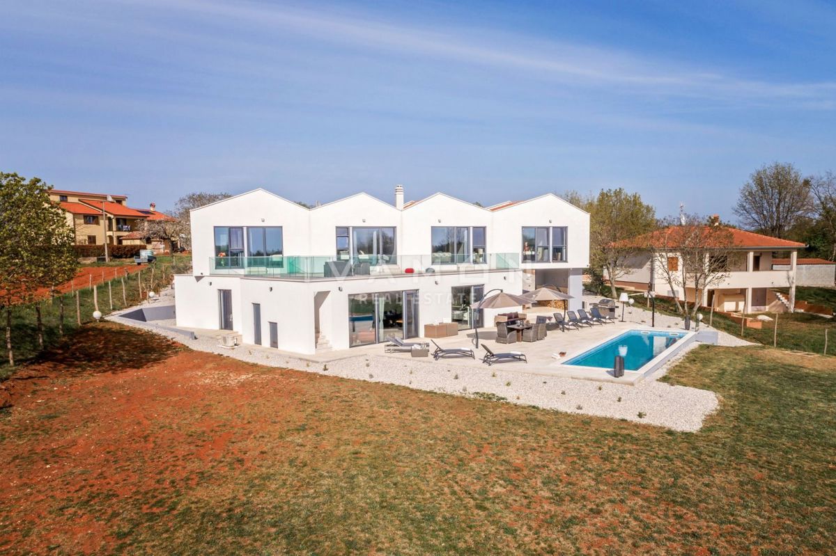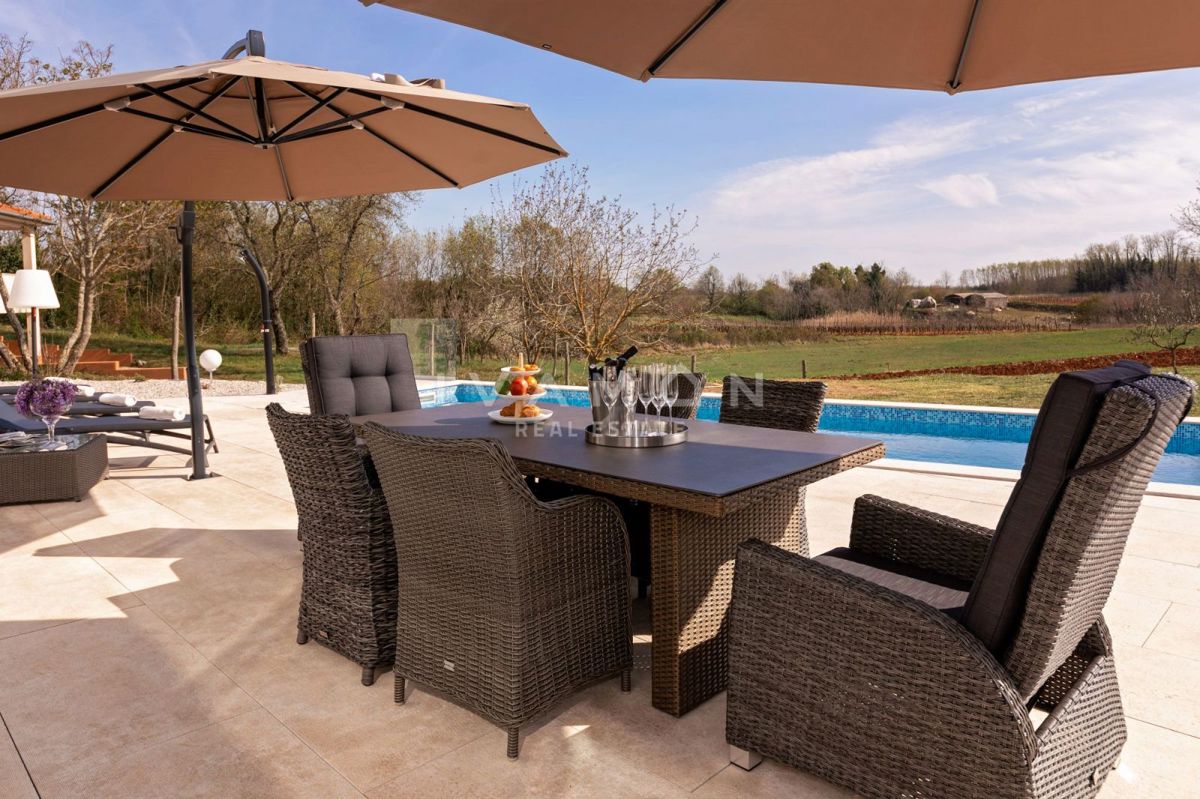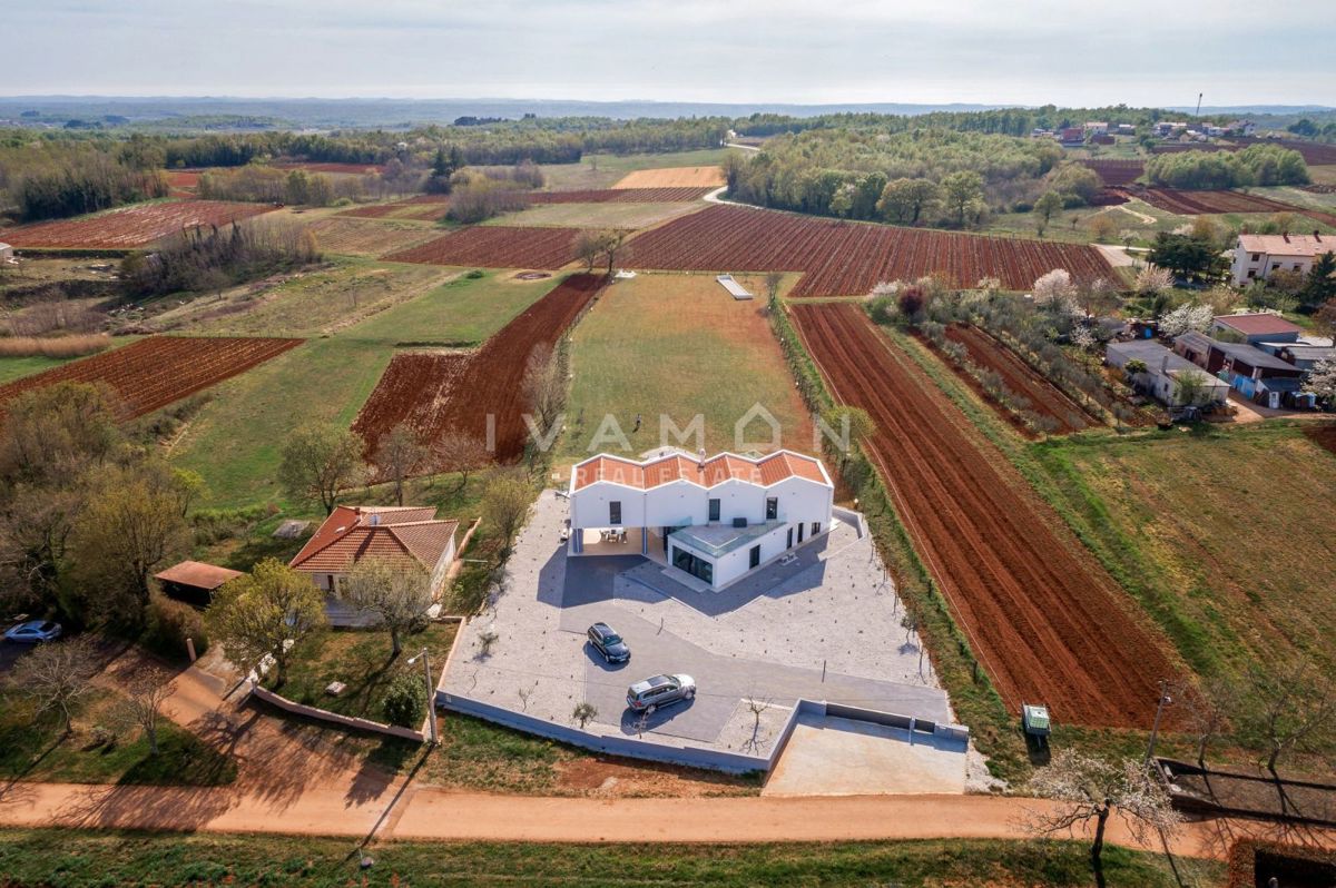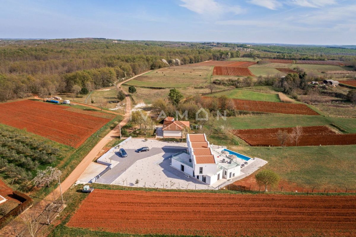 V okolici Poreča, približno 12 kilometrov od morja, na zelo mirni lokaciji v majhnem vasici z le nekaj hišami, je naprodaj nova vila s bazenom in šestimi spalnicami. Nahaja se na velikem zemljišču površine 6271 m². Vila obsega skupno 437 m² površine, raz
