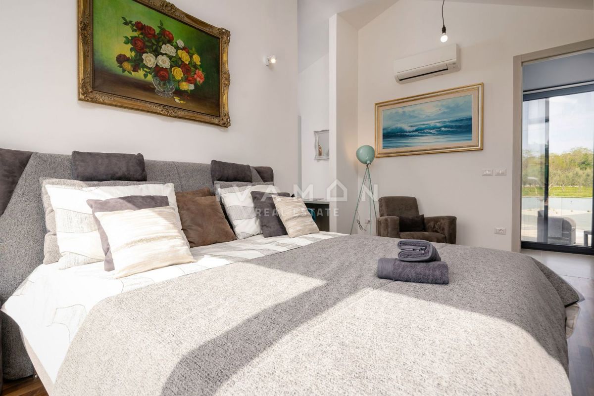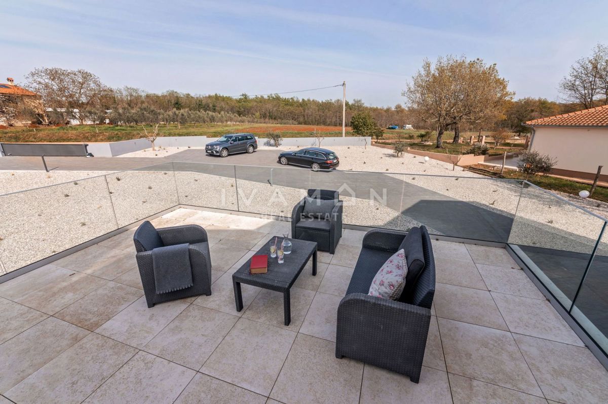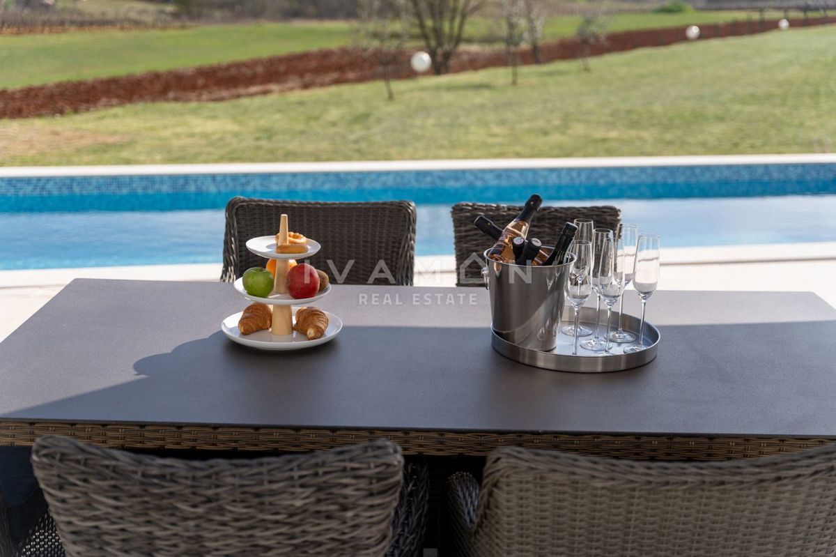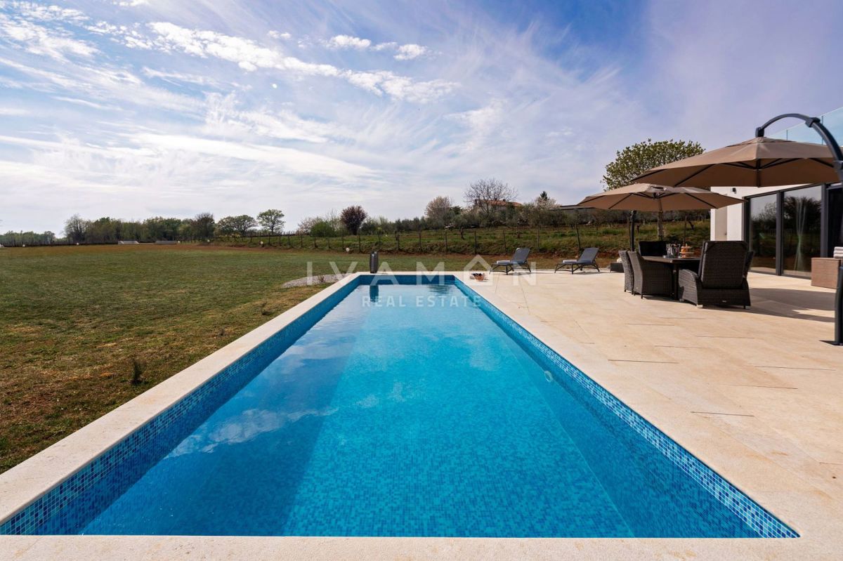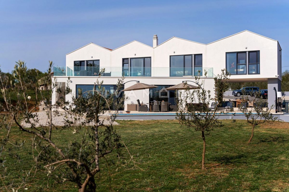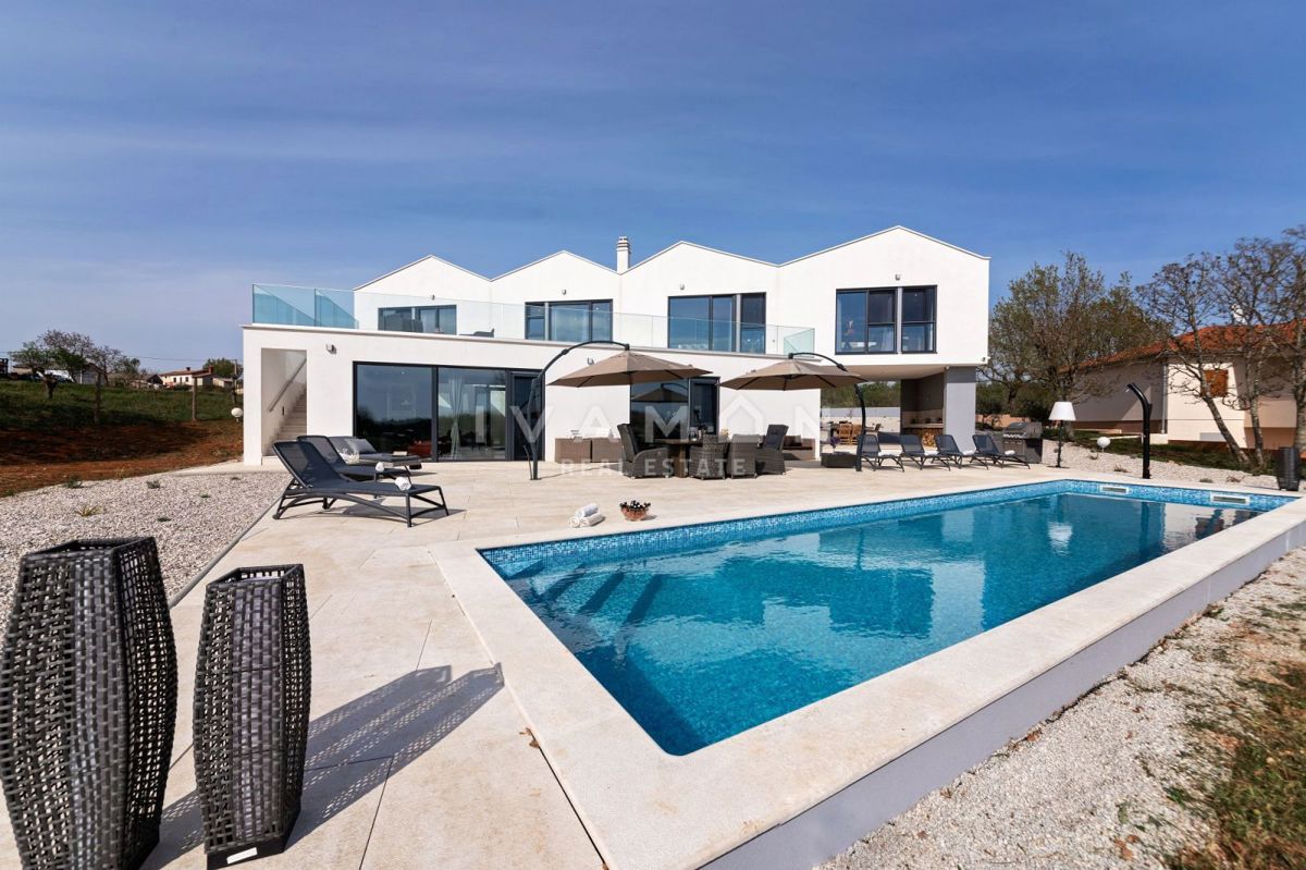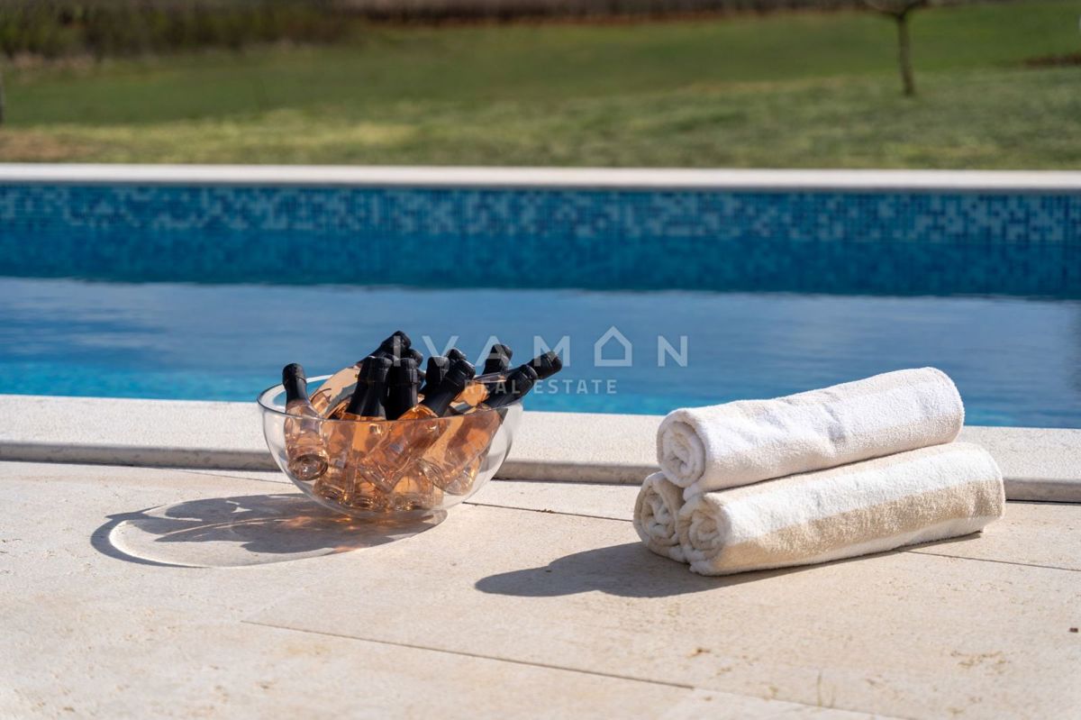 V okolici Poreča, približno 12 kilometrov od morja, na zelo mirni lokaciji v majhnem vasici z le nekaj hišami, je naprodaj nova vila s bazenom in šestimi spalnicami. Nahaja se na velikem zemljišču površine 6271 m². Vila obsega skupno 437 m² površine, raz