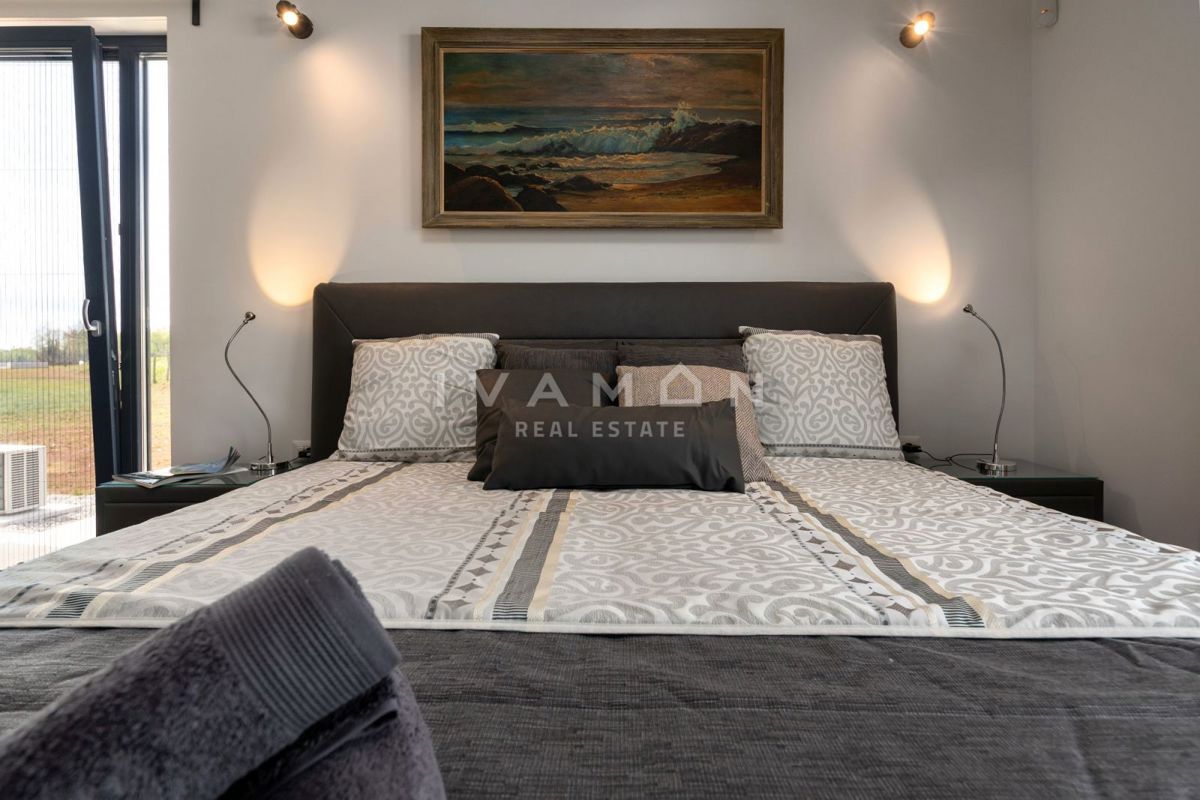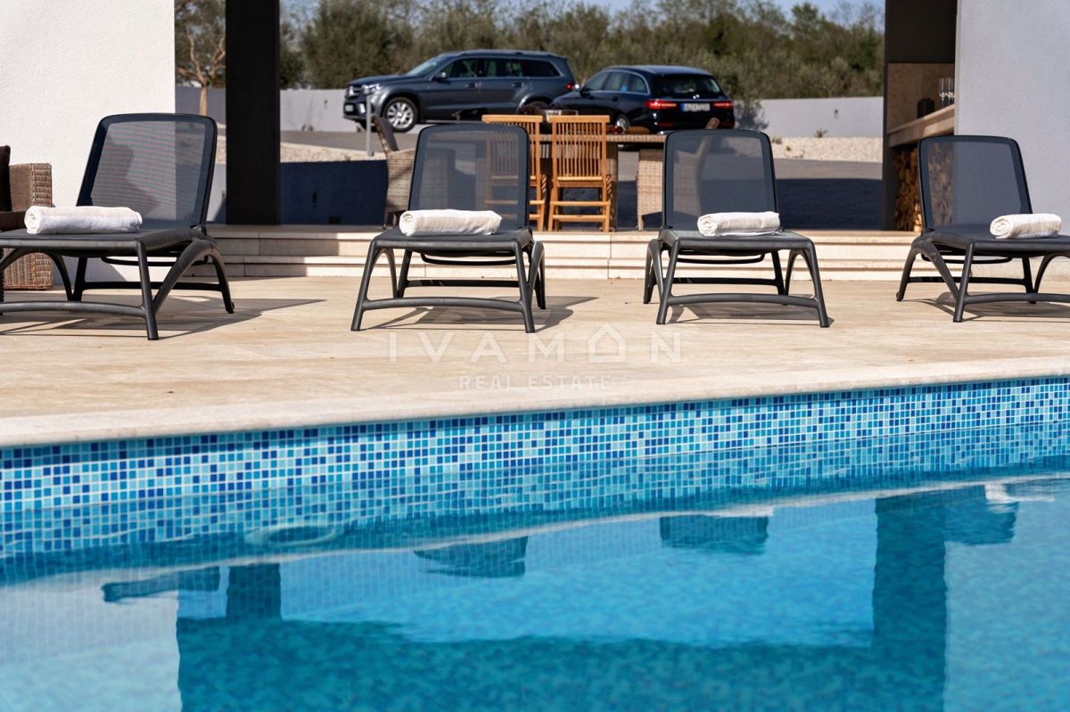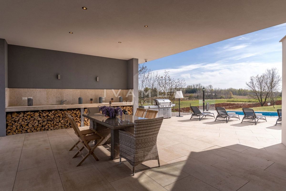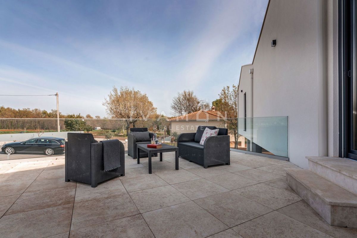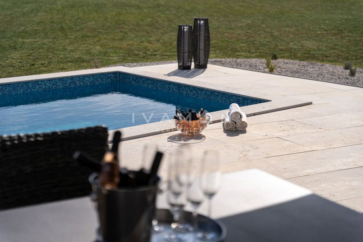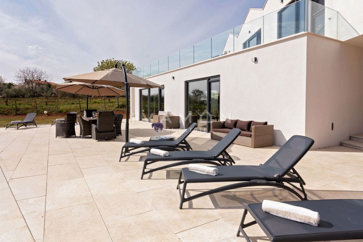 V okolici Poreča, približno 12 kilometrov od morja, na zelo mirni lokaciji v majhnem vasici z le nekaj hišami, je naprodaj nova vila s bazenom in šestimi spalnicami. Nahaja se na velikem zemljišču površine 6271 m². Vila obsega skupno 437 m² površine, raz