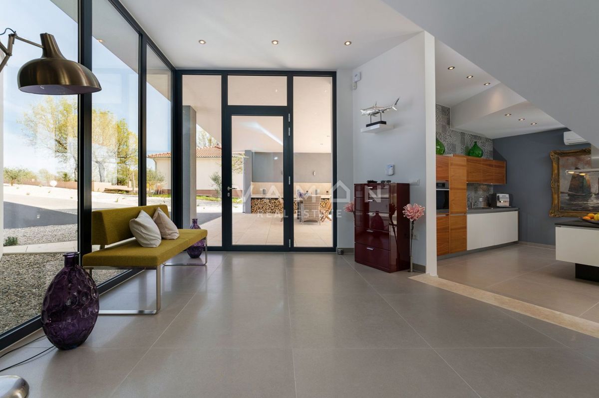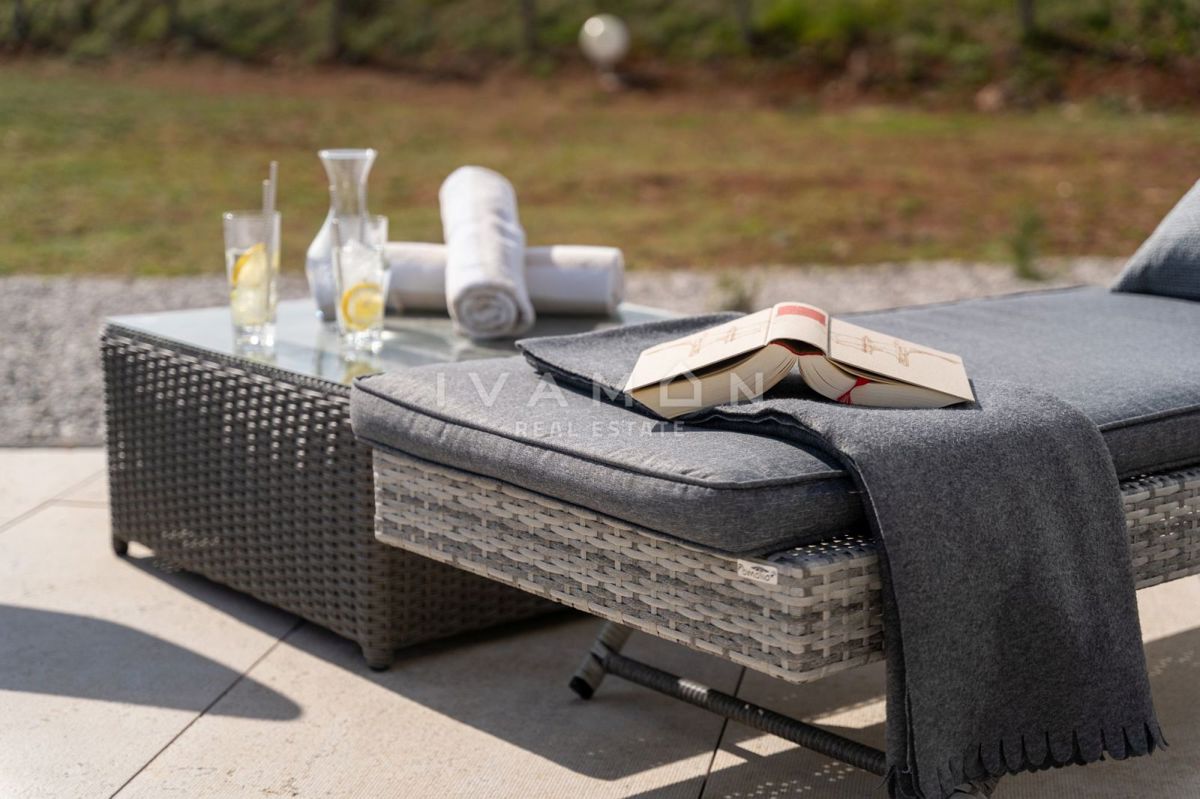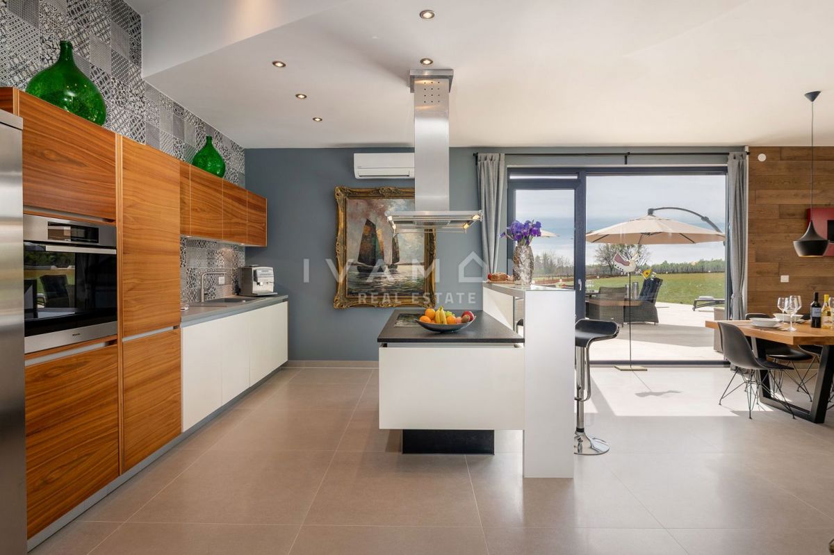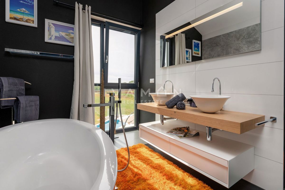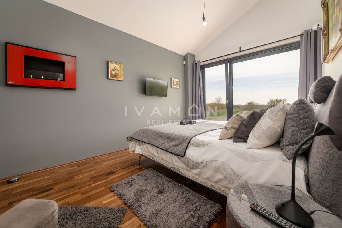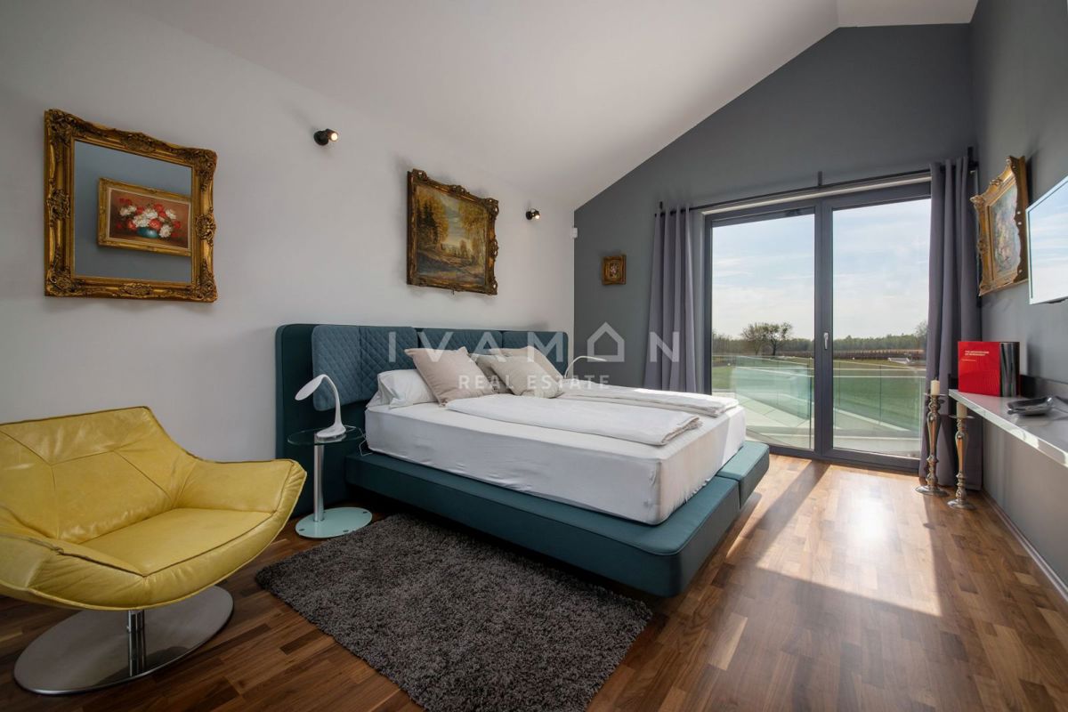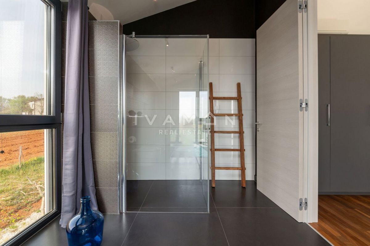 V okolici Poreča, približno 12 kilometrov od morja, na zelo mirni lokaciji v majhnem vasici z le nekaj hišami, je naprodaj nova vila s bazenom in šestimi spalnicami. Nahaja se na velikem zemljišču površine 6271 m². Vila obsega skupno 437 m² površine, raz