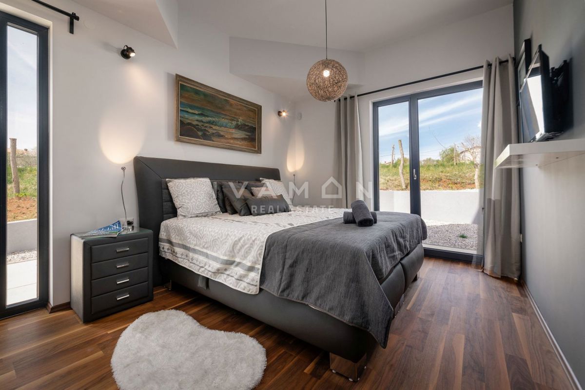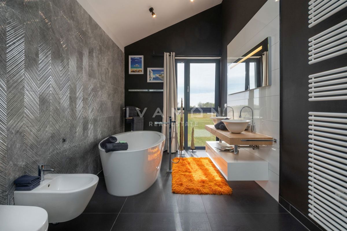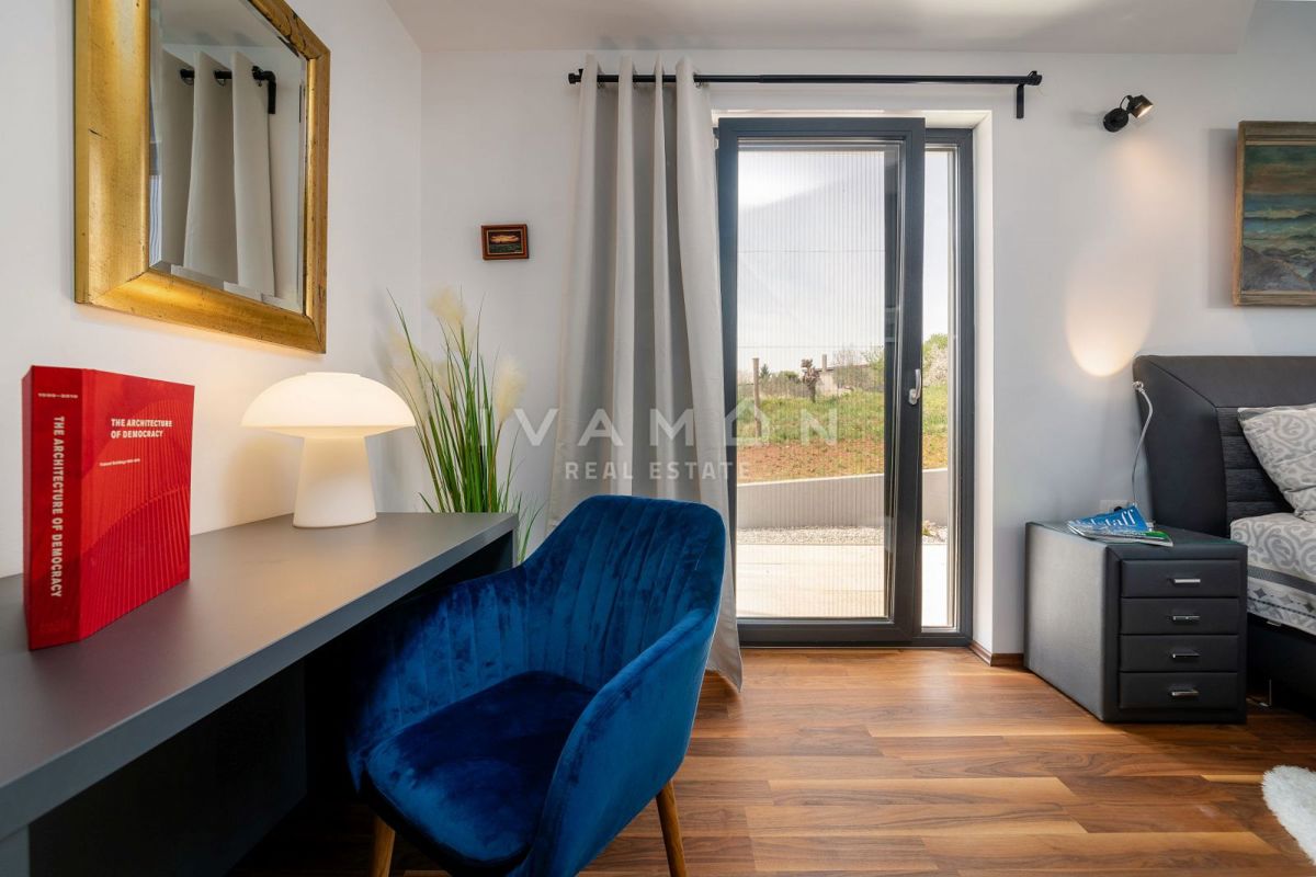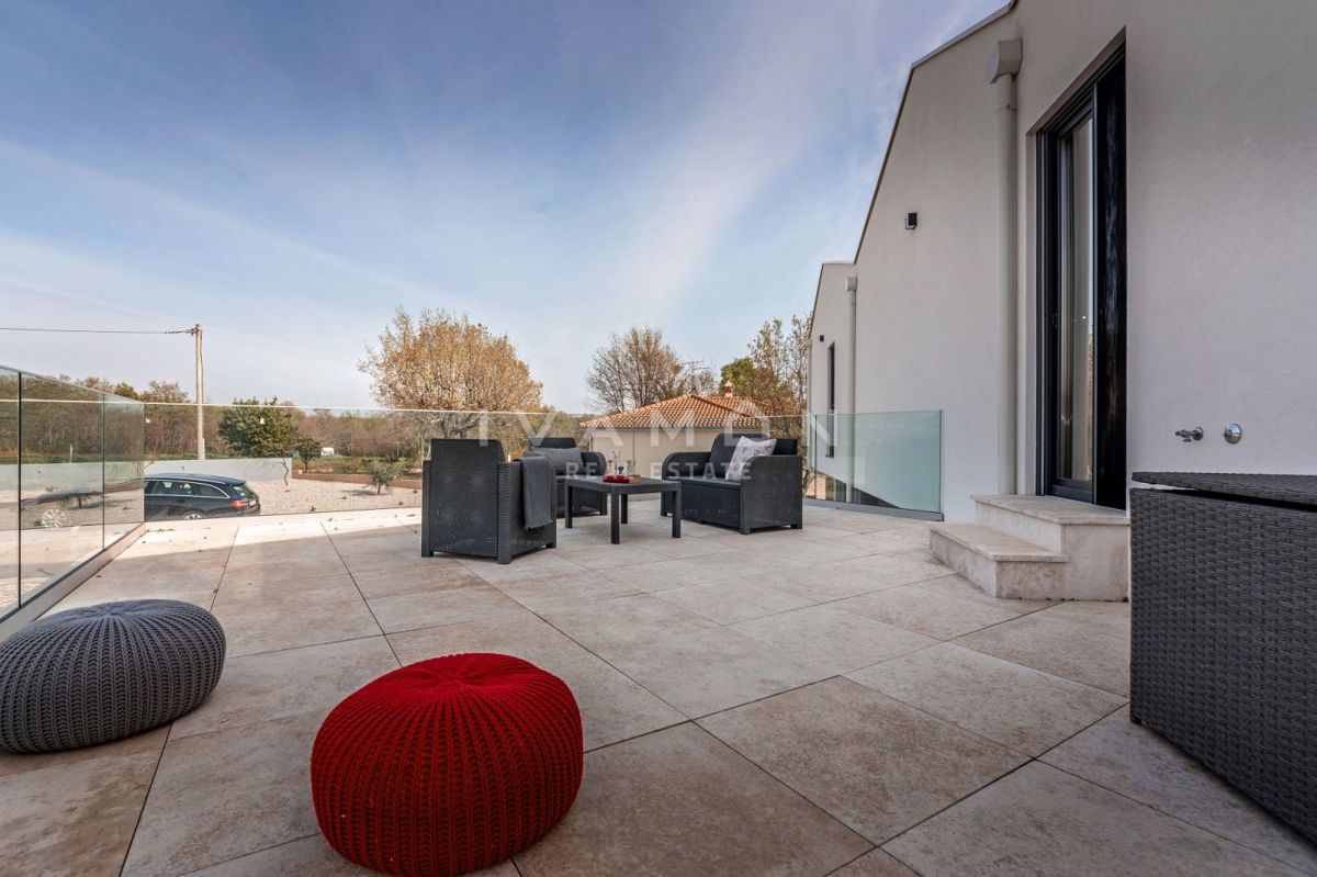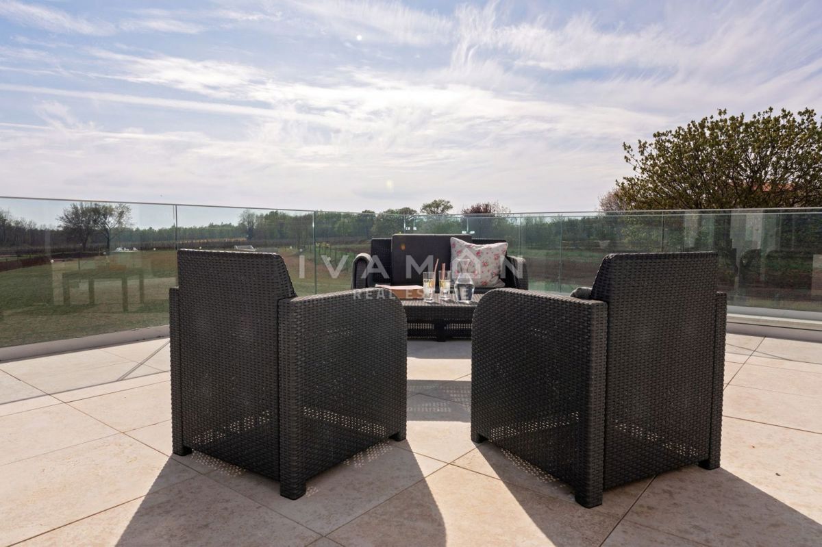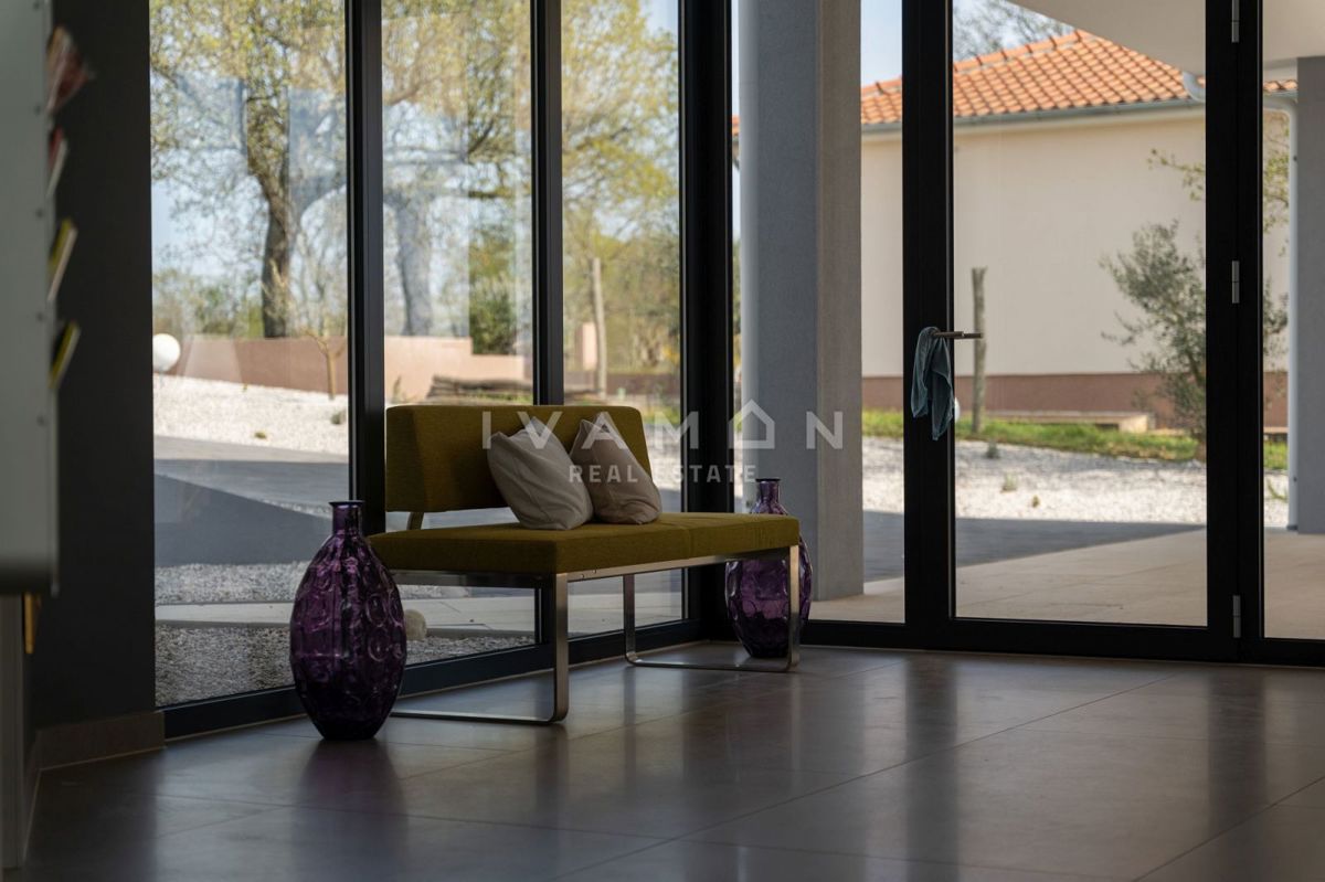 V okolici Poreča, približno 12 kilometrov od morja, na zelo mirni lokaciji v majhnem vasici z le nekaj hišami, je naprodaj nova vila s bazenom in šestimi spalnicami. Nahaja se na velikem zemljišču površine 6271 m². Vila obsega skupno 437 m² površine, raz