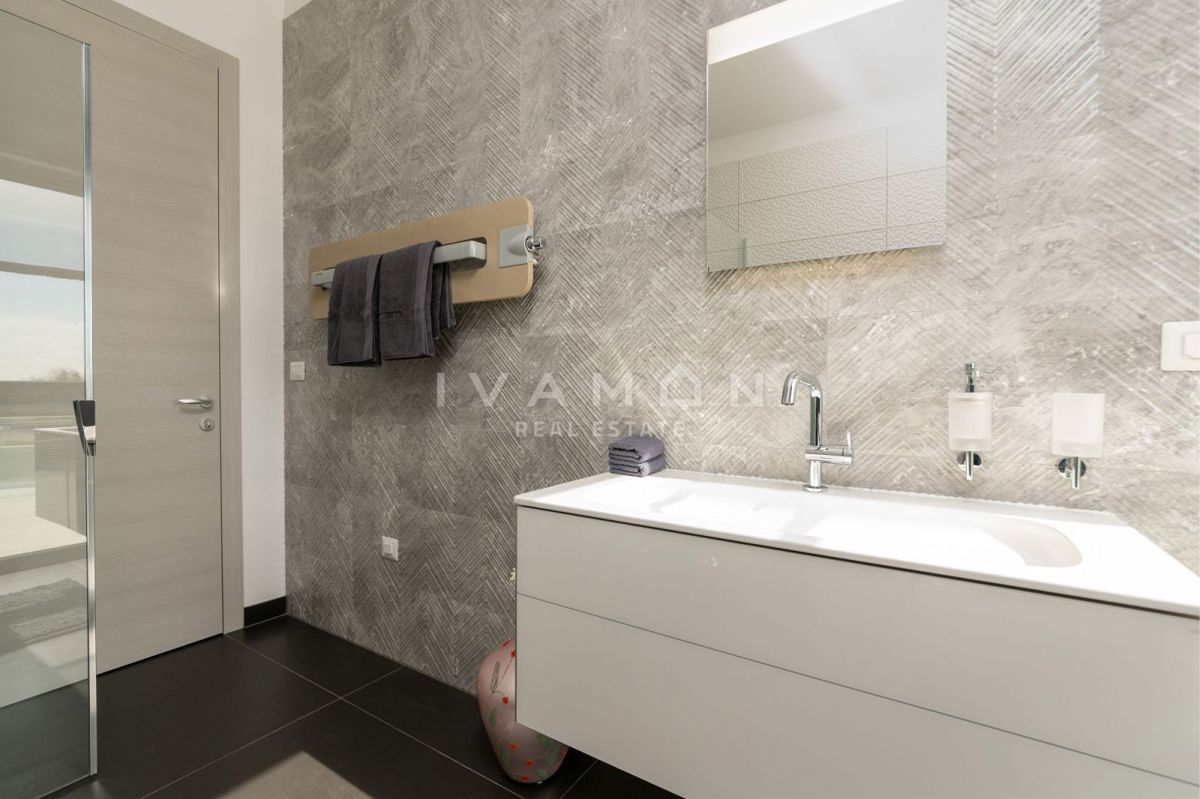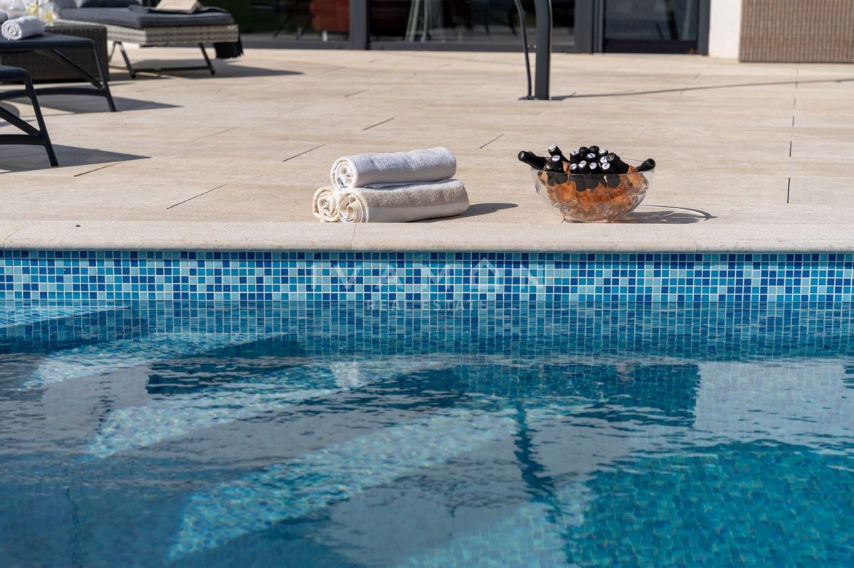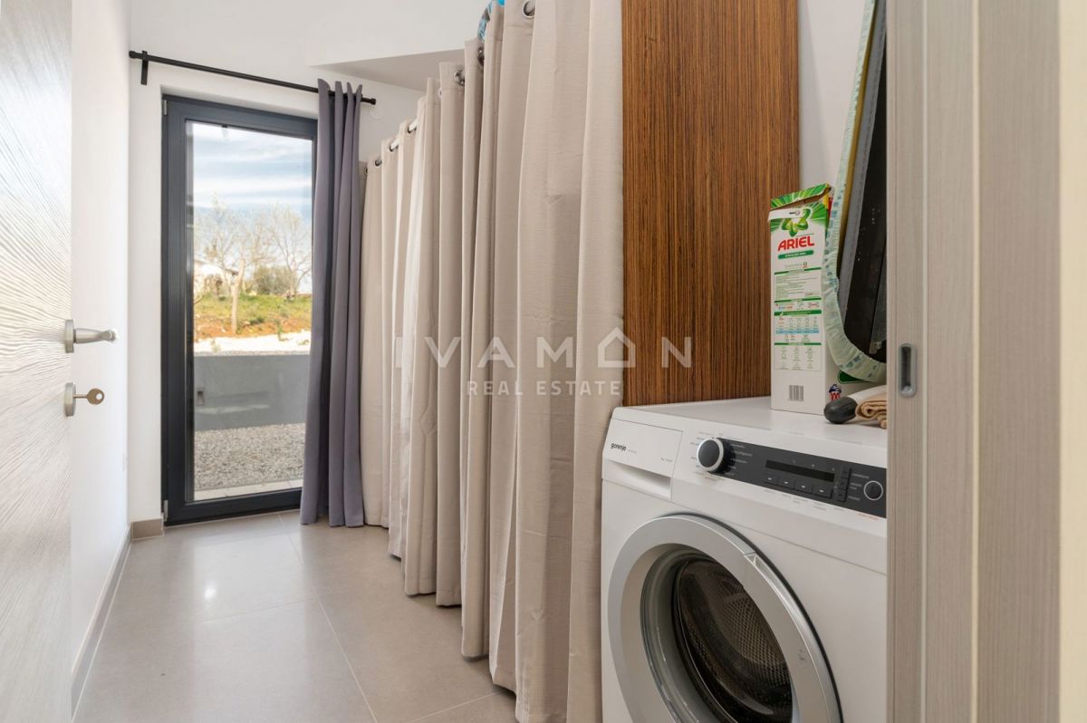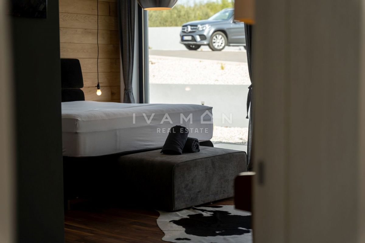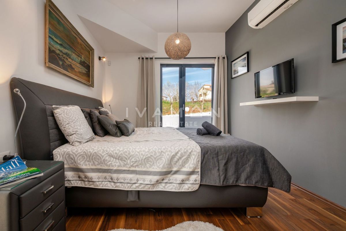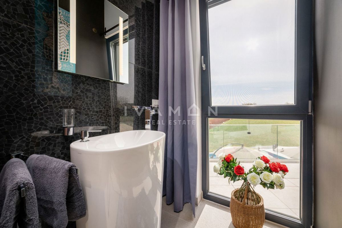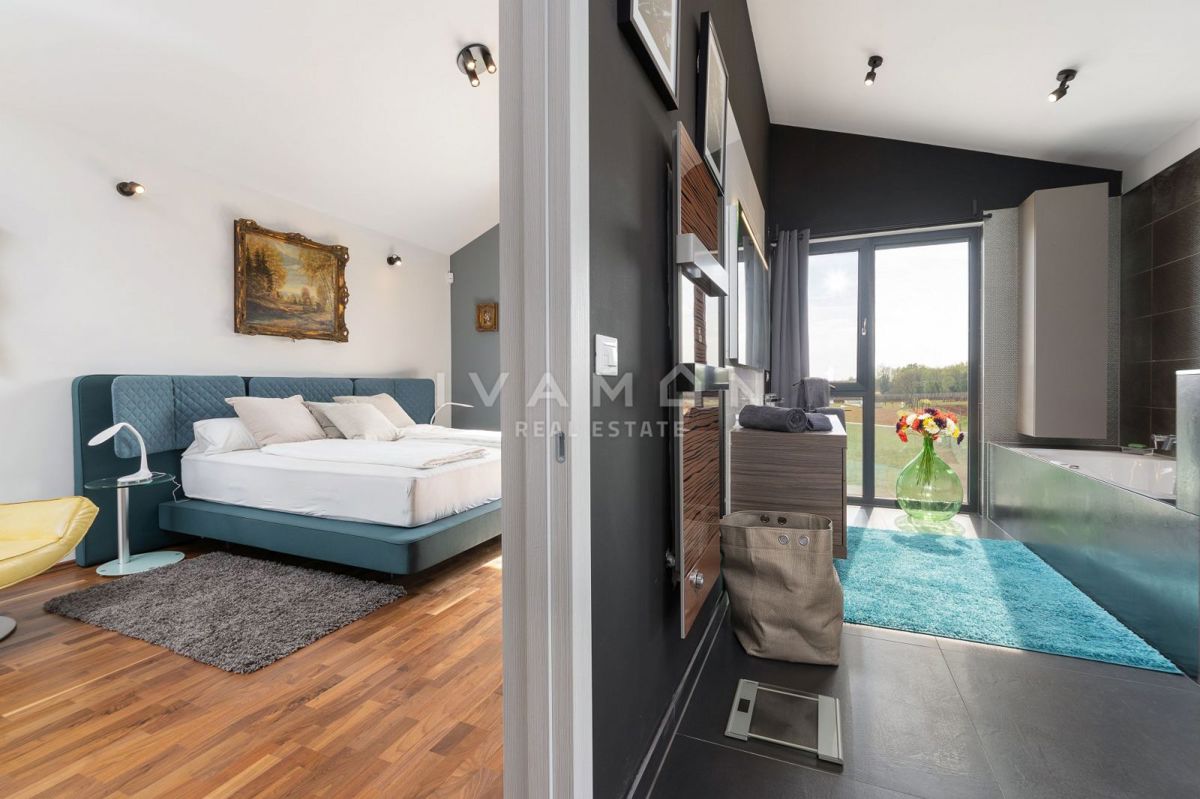 V okolici Poreča, približno 12 kilometrov od morja, na zelo mirni lokaciji v majhnem vasici z le nekaj hišami, je naprodaj nova vila s bazenom in šestimi spalnicami. Nahaja se na velikem zemljišču površine 6271 m². Vila obsega skupno 437 m² površine, raz