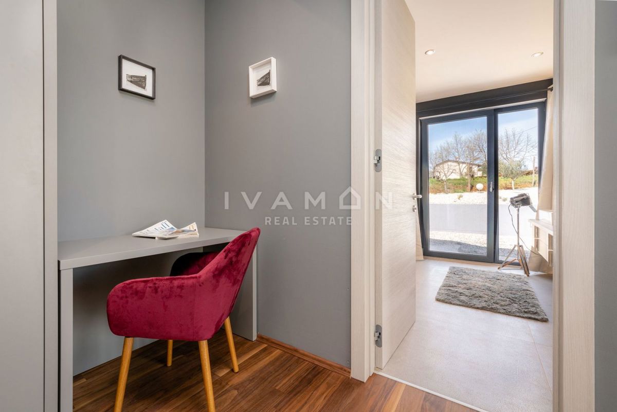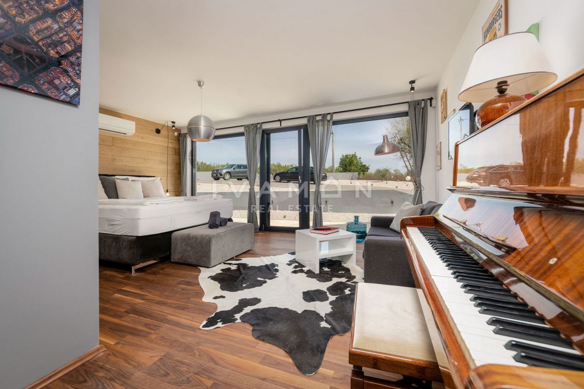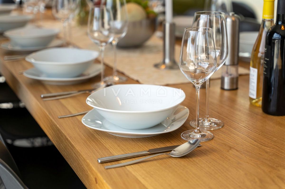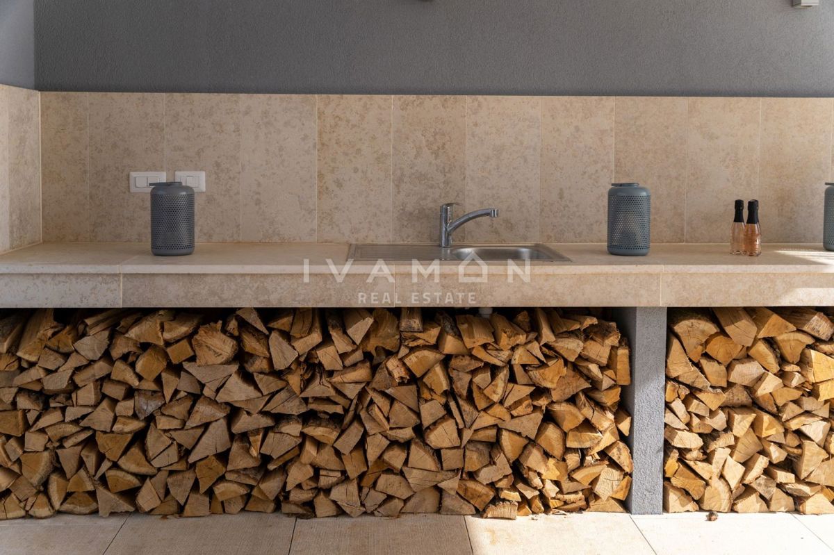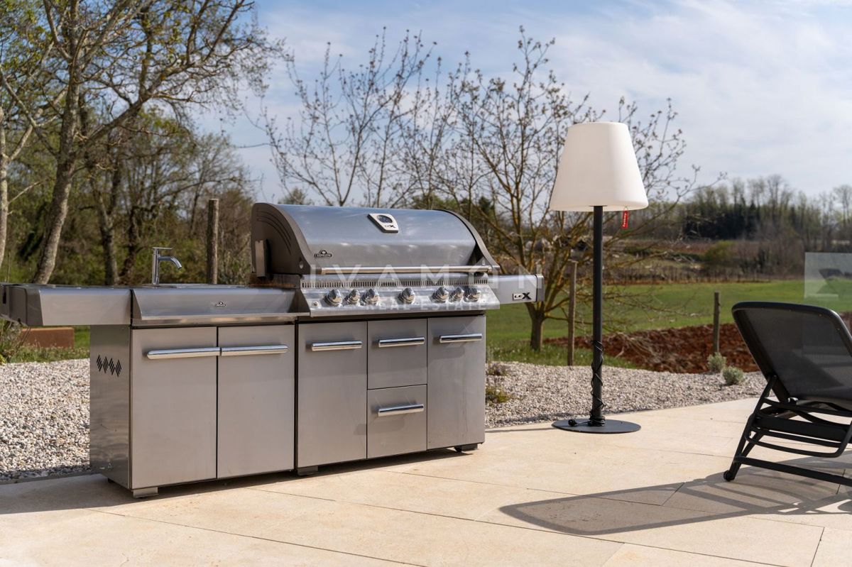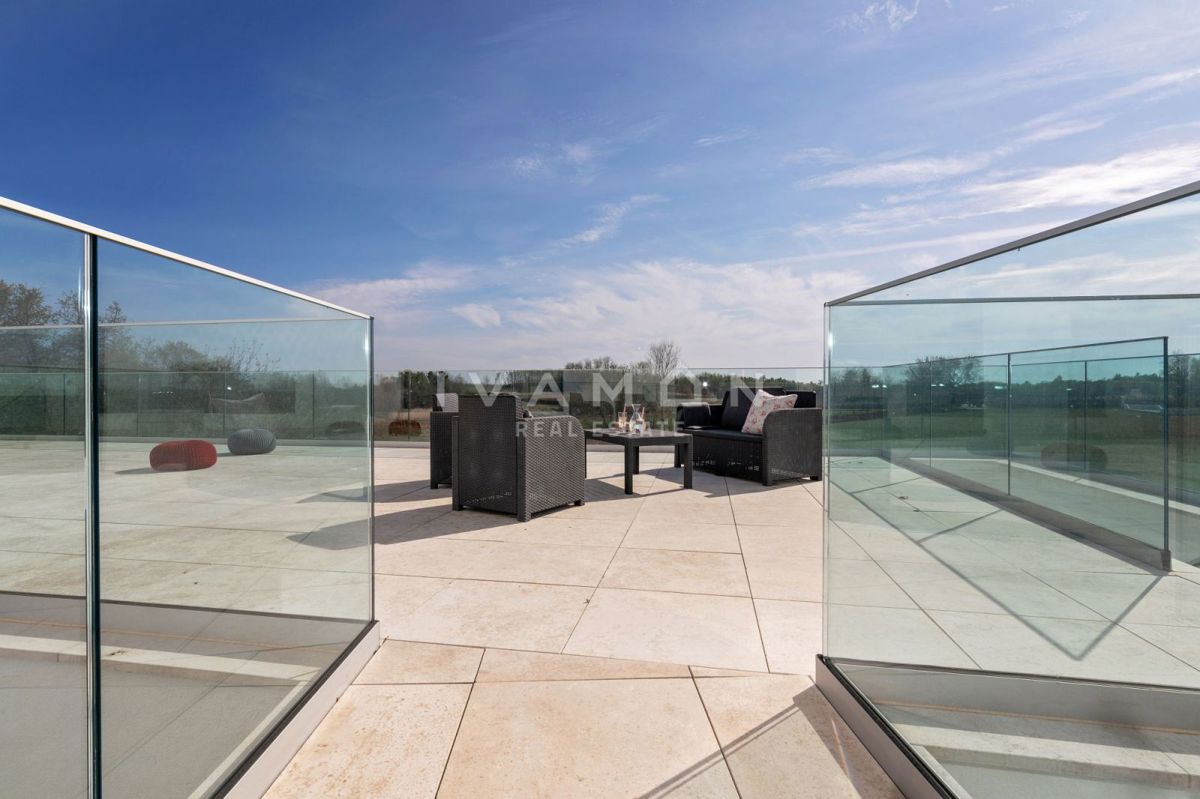 V okolici Poreča, približno 12 kilometrov od morja, na zelo mirni lokaciji v majhnem vasici z le nekaj hišami, je naprodaj nova vila s bazenom in šestimi spalnicami. Nahaja se na velikem zemljišču površine 6271 m². Vila obsega skupno 437 m² površine, raz