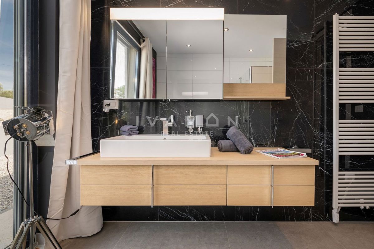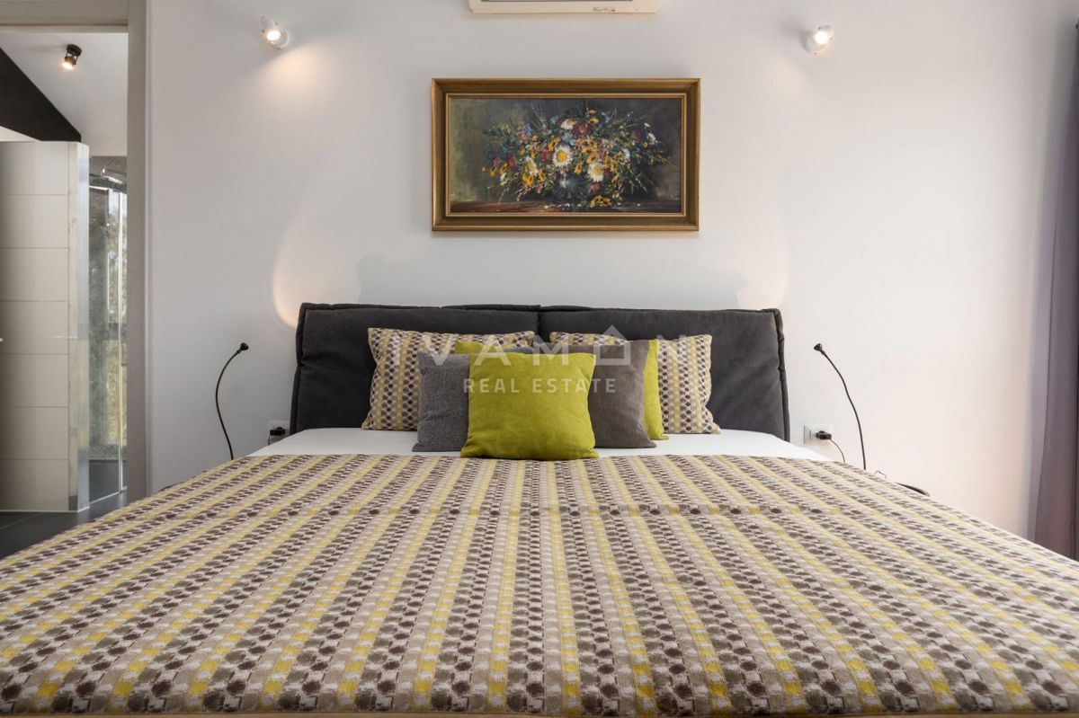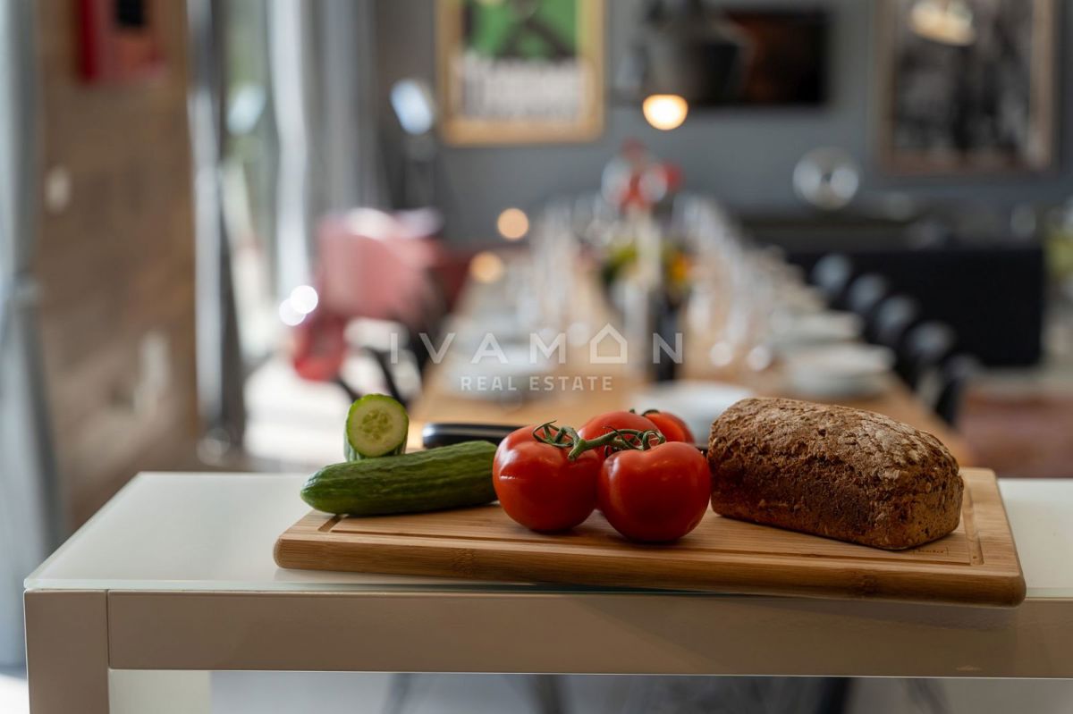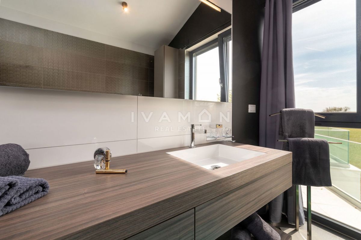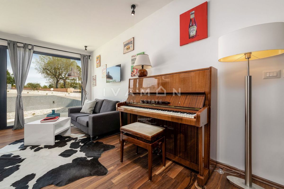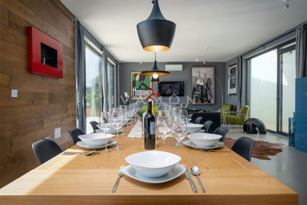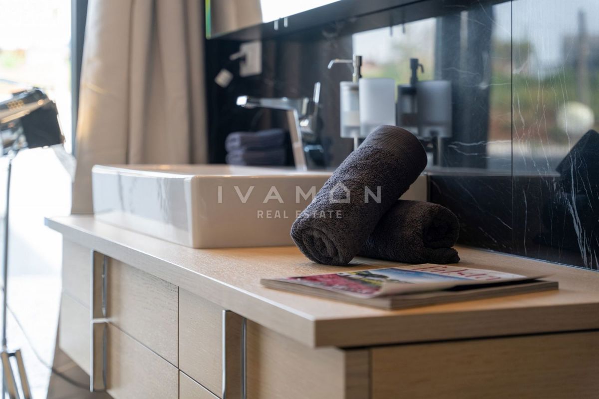 V okolici Poreča, približno 12 kilometrov od morja, na zelo mirni lokaciji v majhnem vasici z le nekaj hišami, je naprodaj nova vila s bazenom in šestimi spalnicami. Nahaja se na velikem zemljišču površine 6271 m². Vila obsega skupno 437 m² površine, raz