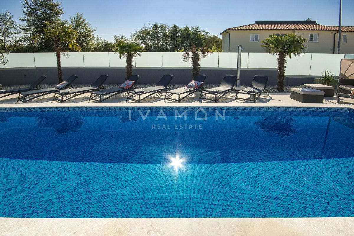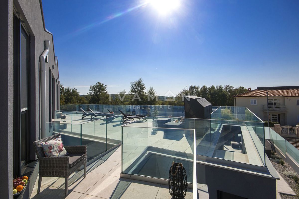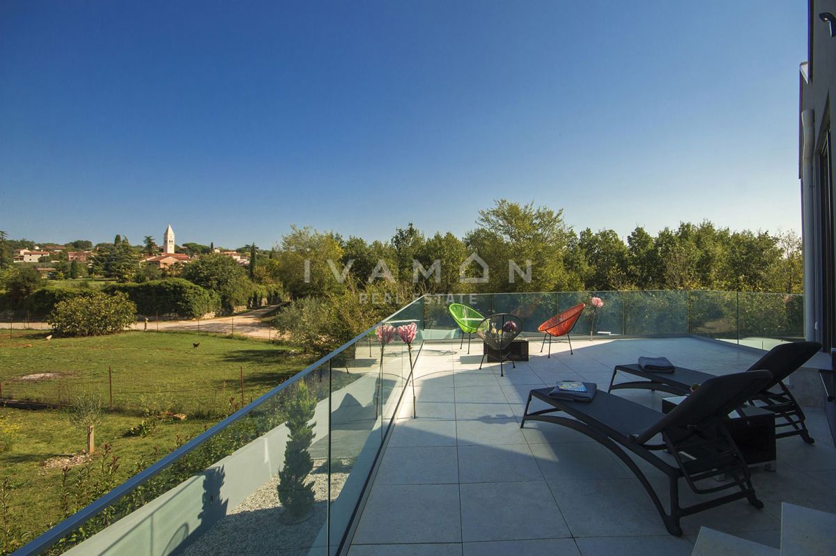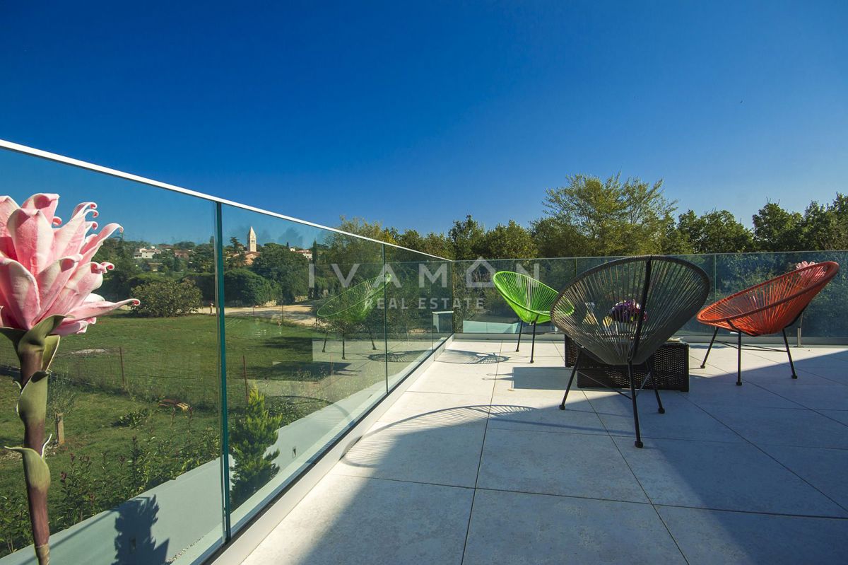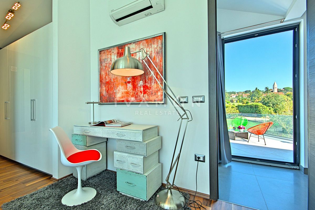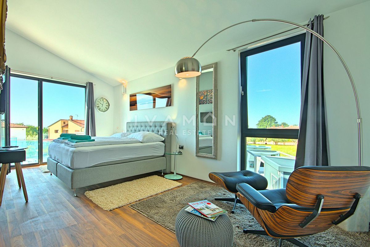 V bližini Poreča, osem kilometrov od morja, na zelo lepi mikrolokaciji, je naprodaj nova vila s bazenom in petimi spalnicami. Vila obsega 385,5 m² površine, razporejene v pritličju in nadstropju. Ponaša se z zelo zanimivo arhitekturo in zunanjostjo. Je r