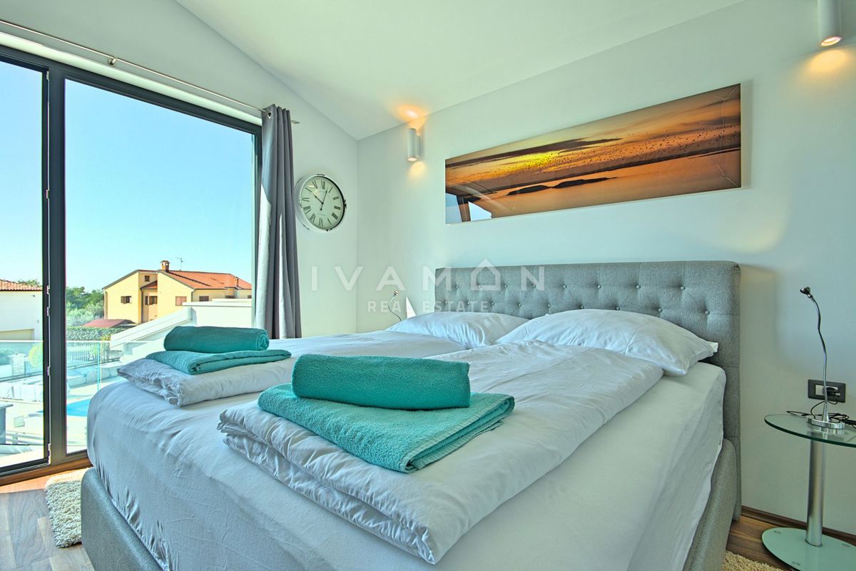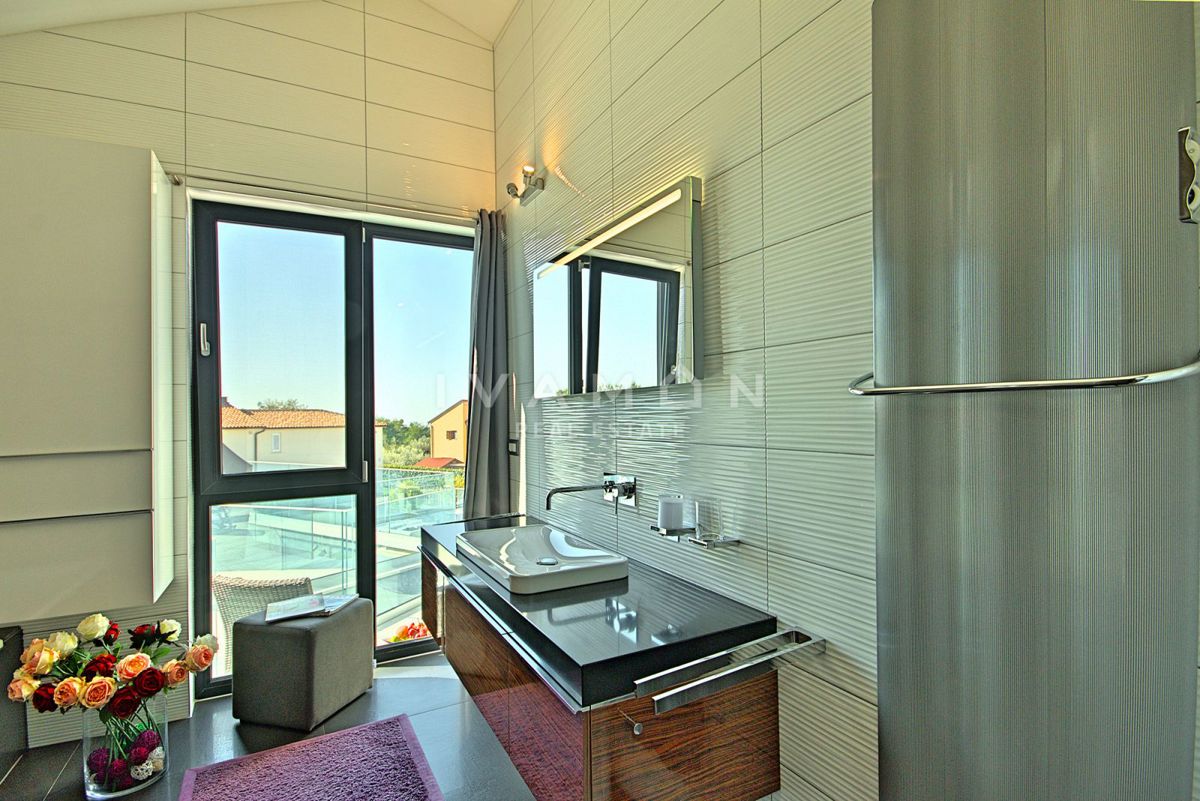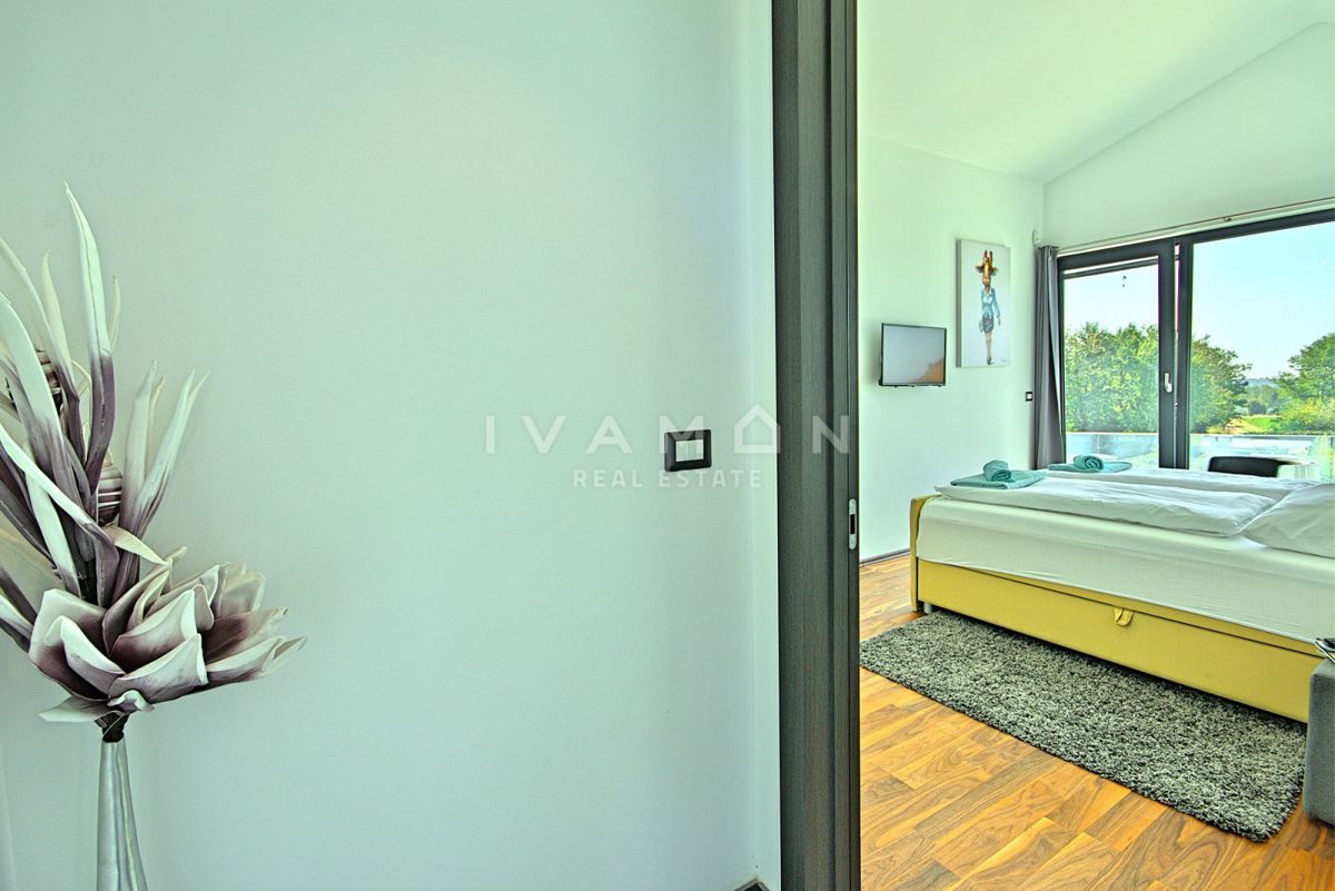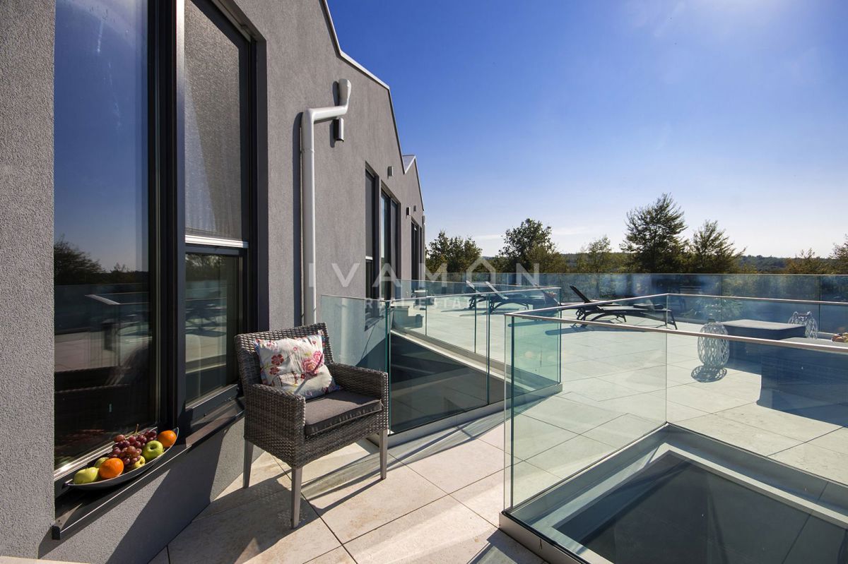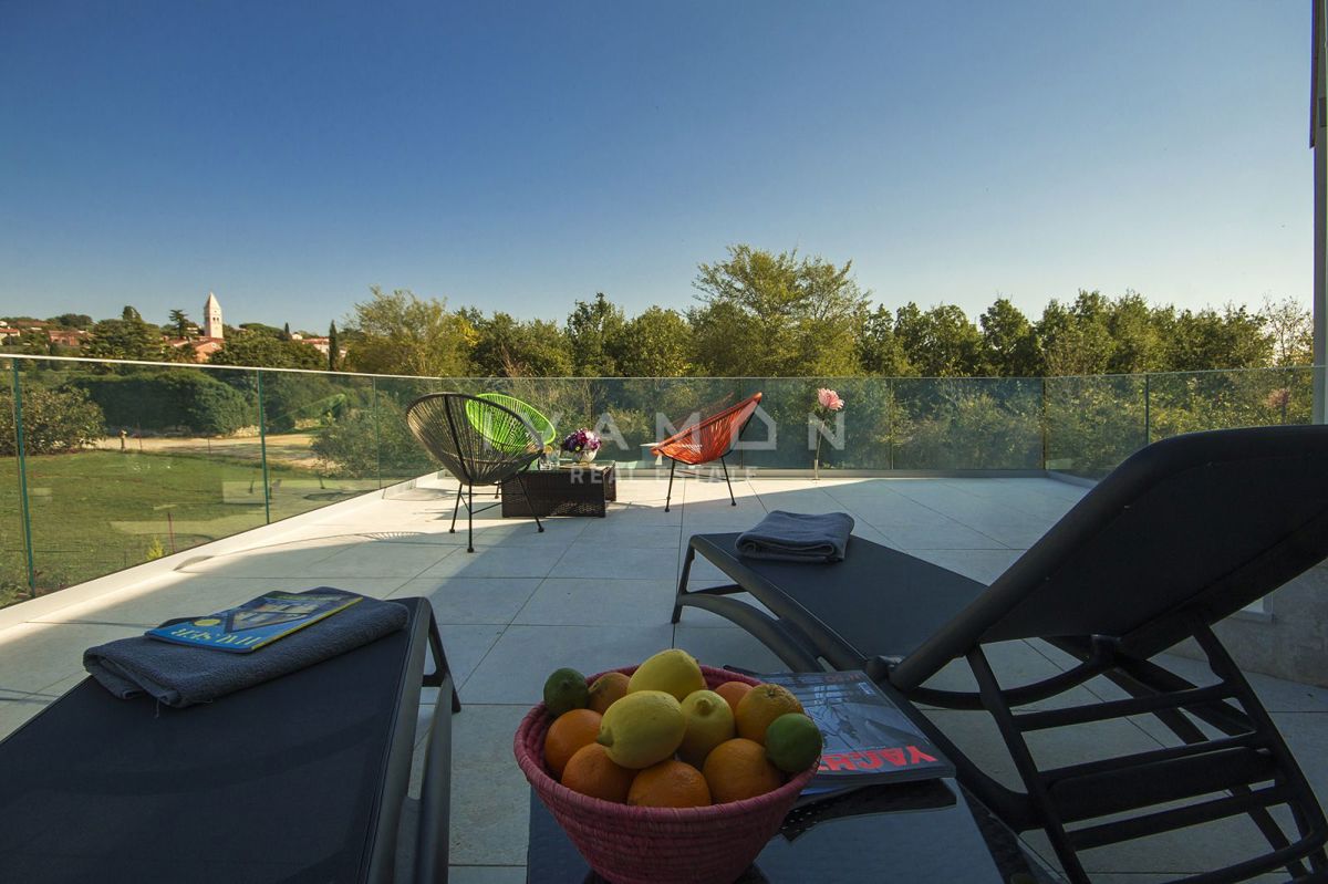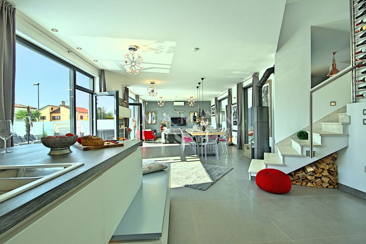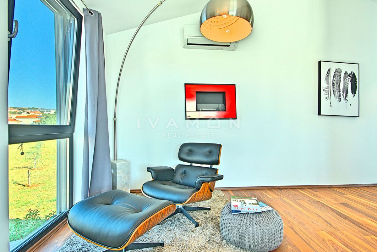 V bližini Poreča, osem kilometrov od morja, na zelo lepi mikrolokaciji, je naprodaj nova vila s bazenom in petimi spalnicami. Vila obsega 385,5 m² površine, razporejene v pritličju in nadstropju. Ponaša se z zelo zanimivo arhitekturo in zunanjostjo. Je r