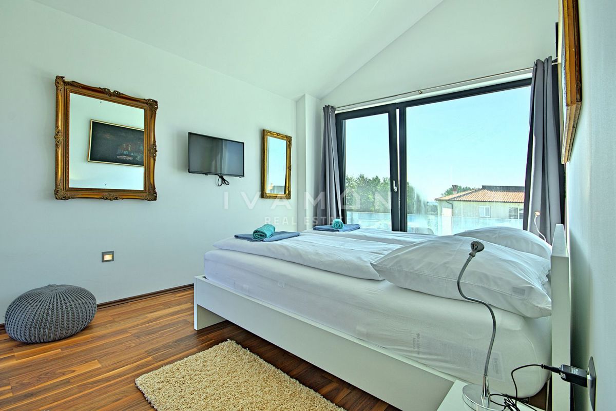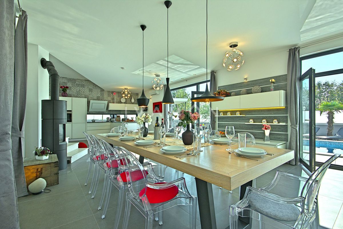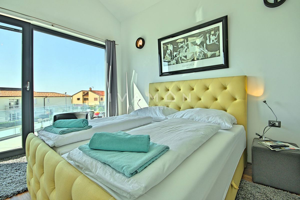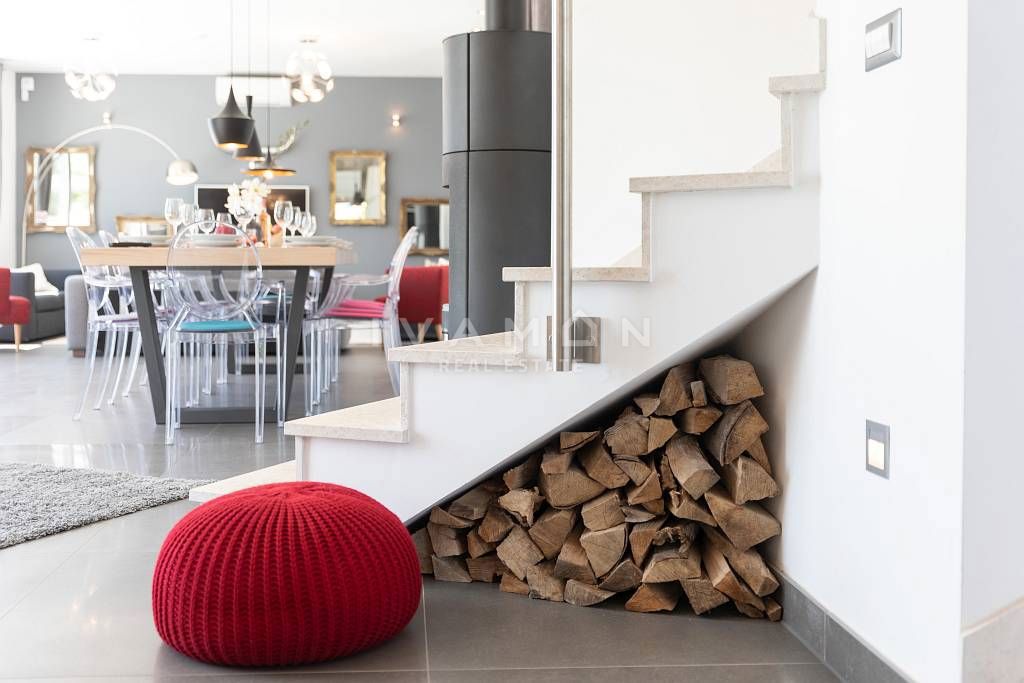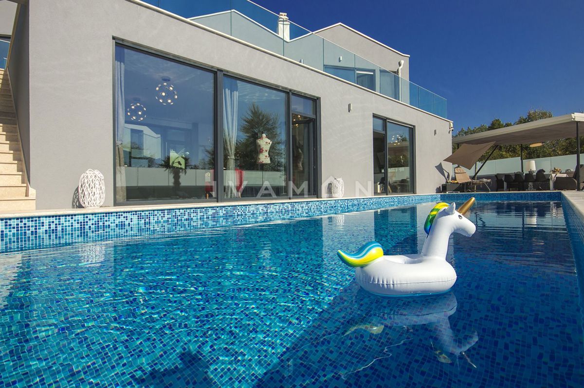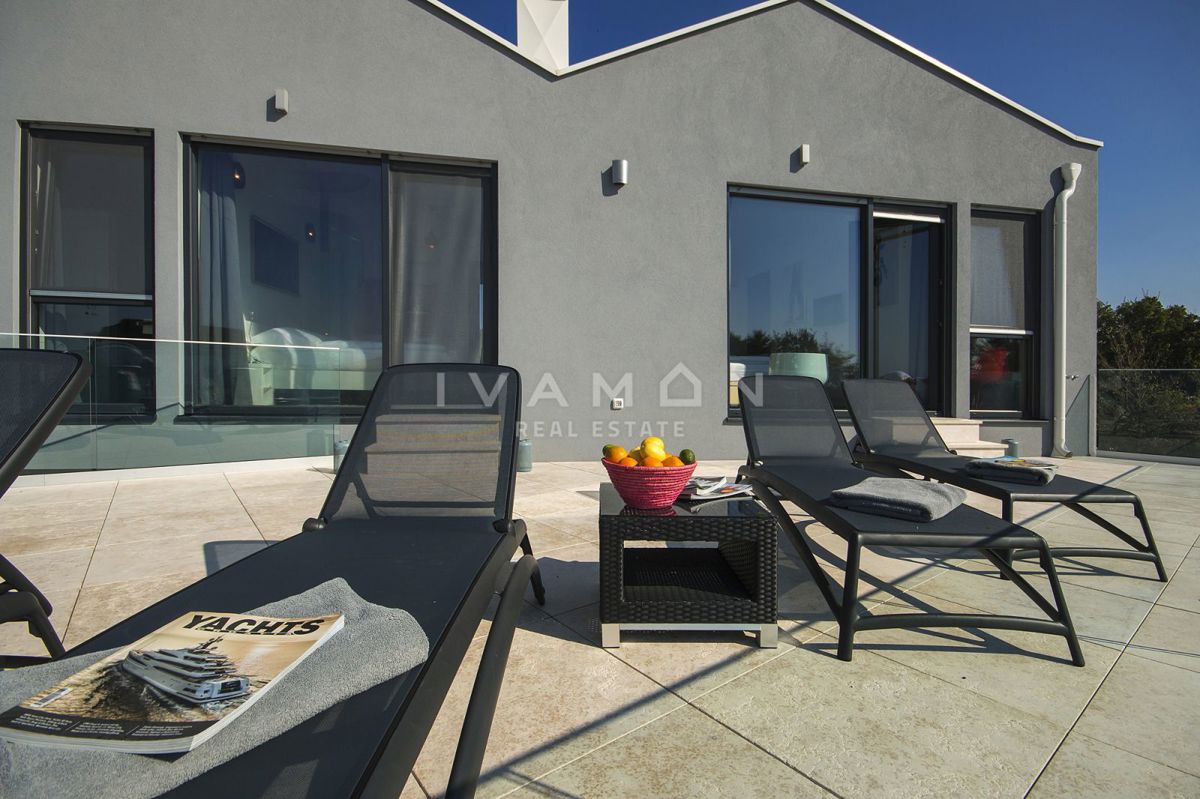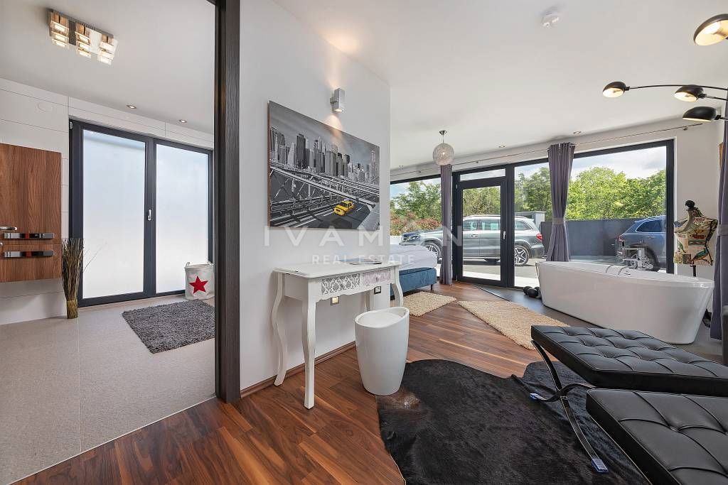 V bližini Poreča, osem kilometrov od morja, na zelo lepi mikrolokaciji, je naprodaj nova vila s bazenom in petimi spalnicami. Vila obsega 385,5 m² površine, razporejene v pritličju in nadstropju. Ponaša se z zelo zanimivo arhitekturo in zunanjostjo. Je r