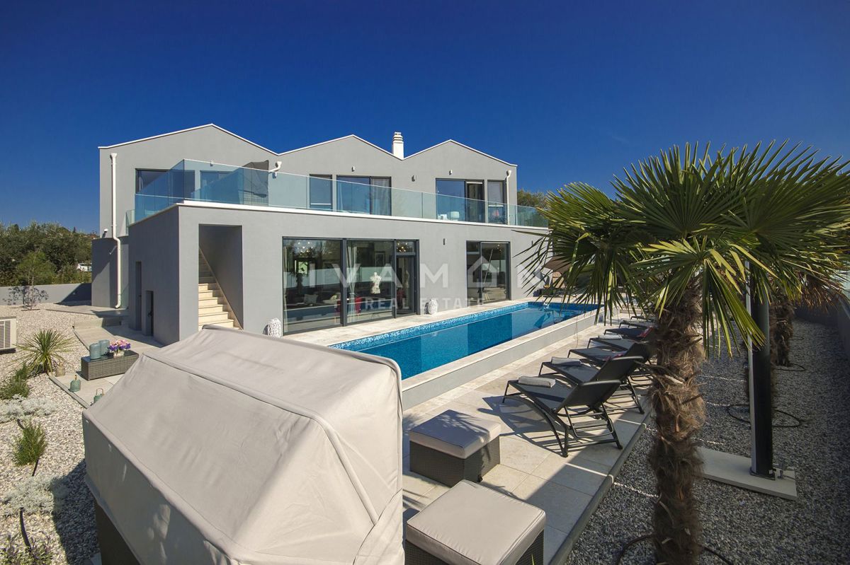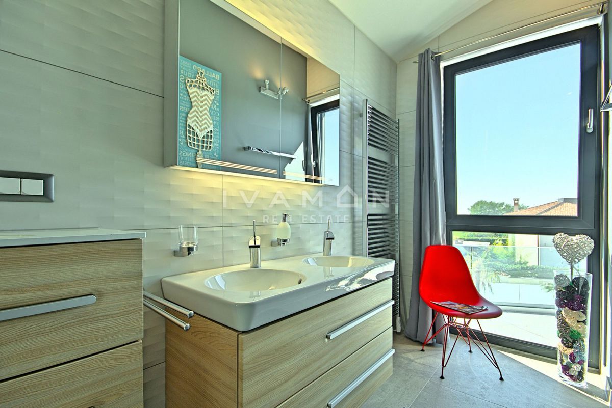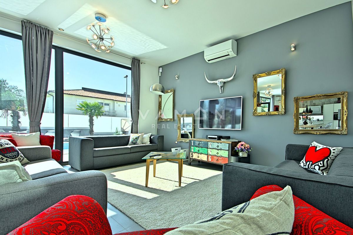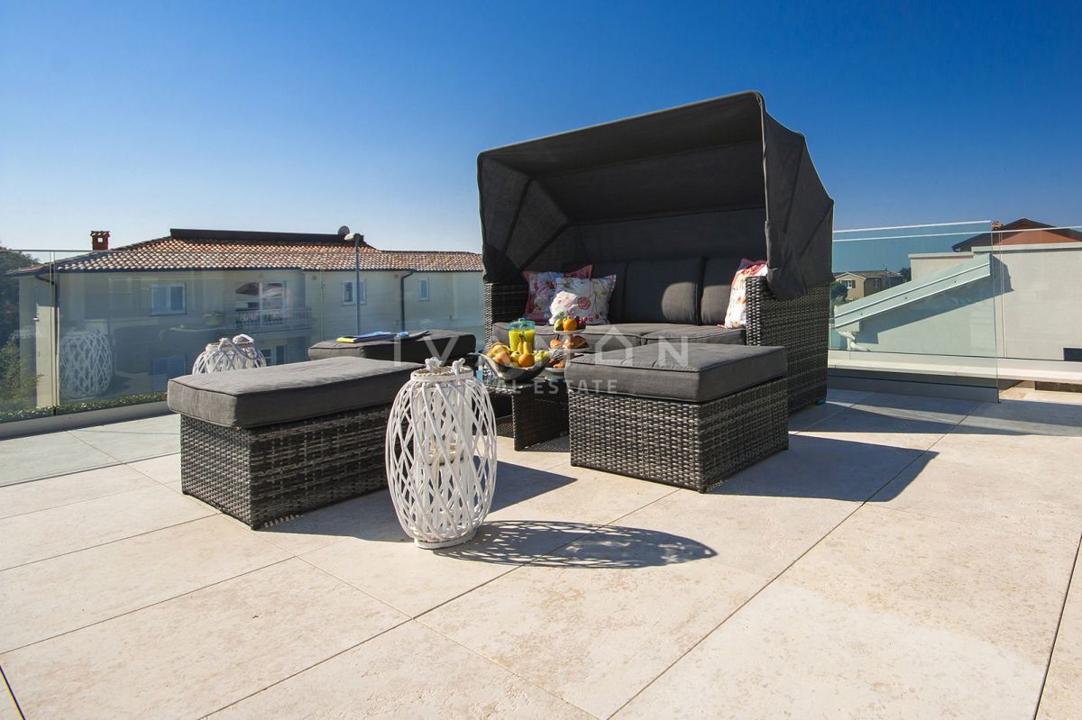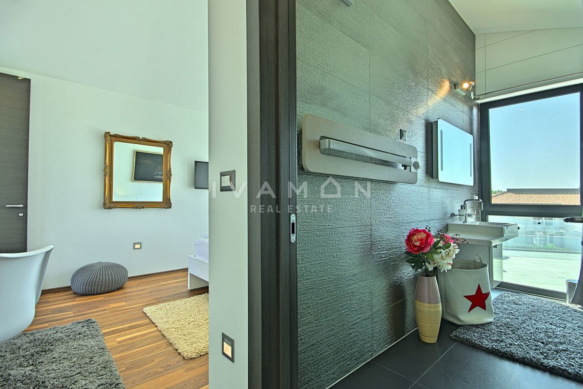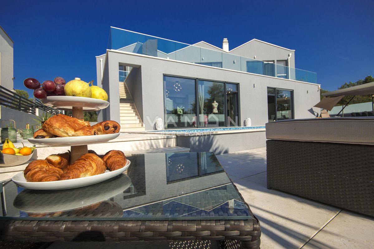V bližini Poreča, osem kilometrov od morja, na zelo lepi mikrolokaciji, je naprodaj nova vila s bazenom in petimi spalnicami. Vila obsega 385,5 m² površine, razporejene v pritličju in nadstropju. Ponaša se z zelo zanimivo arhitekturo in zunanjostjo. Je r