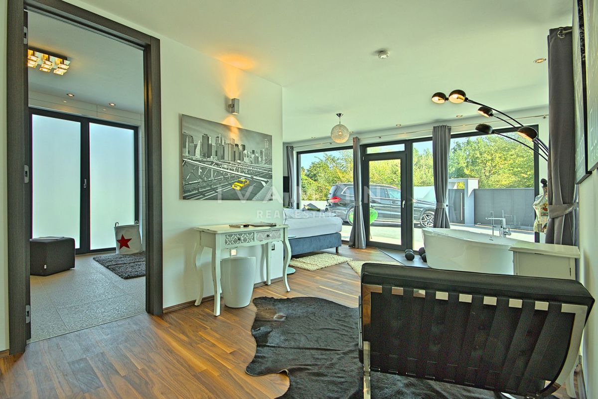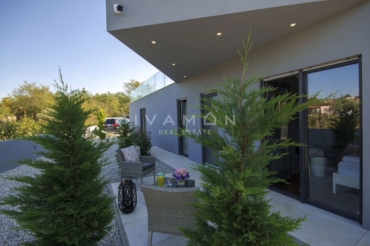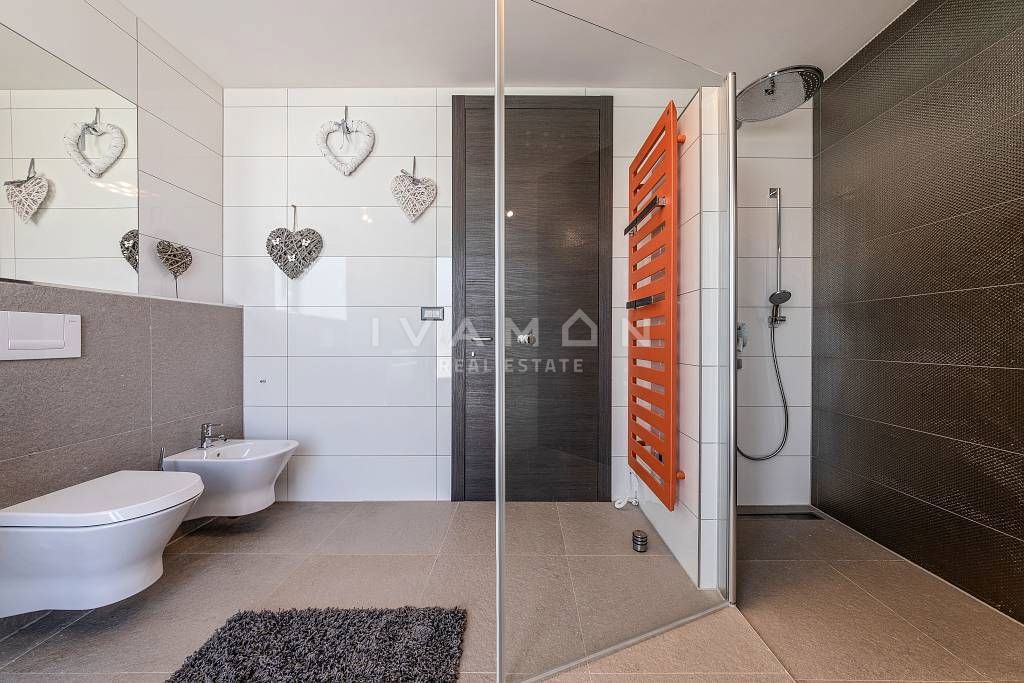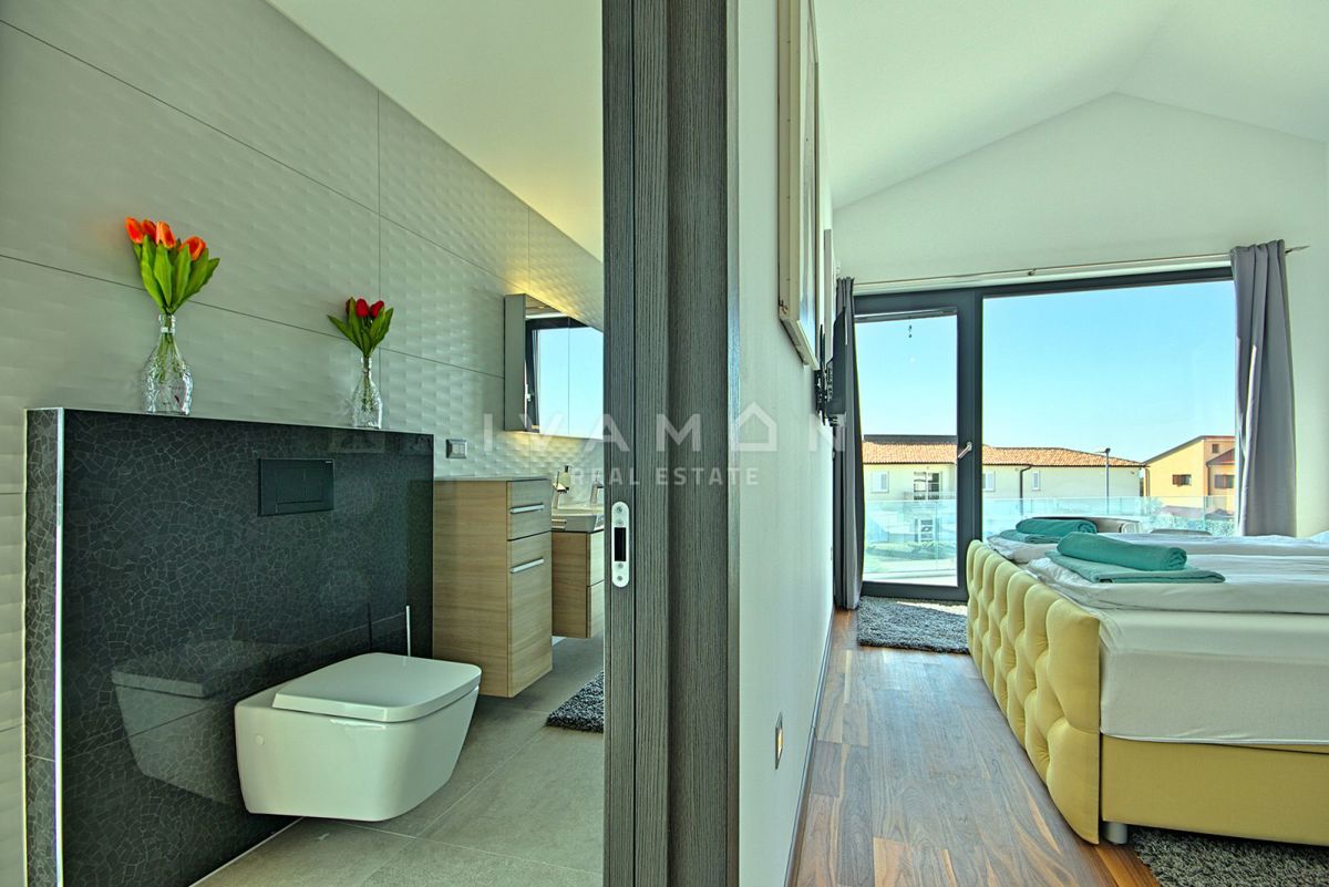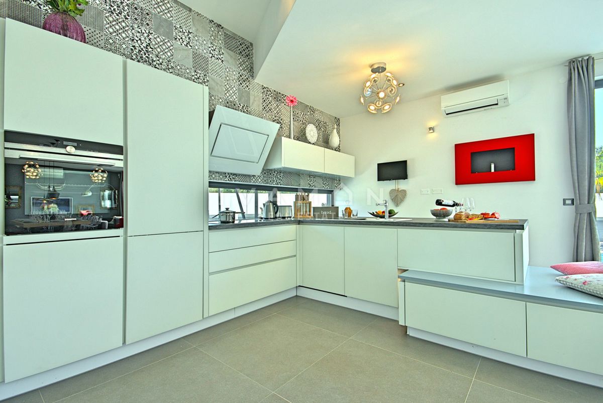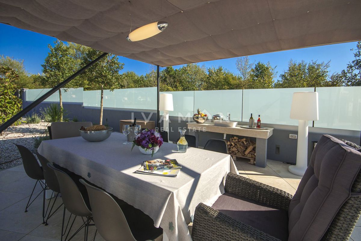 V bližini Poreča, osem kilometrov od morja, na zelo lepi mikrolokaciji, je naprodaj nova vila s bazenom in petimi spalnicami. Vila obsega 385,5 m² površine, razporejene v pritličju in nadstropju. Ponaša se z zelo zanimivo arhitekturo in zunanjostjo. Je r