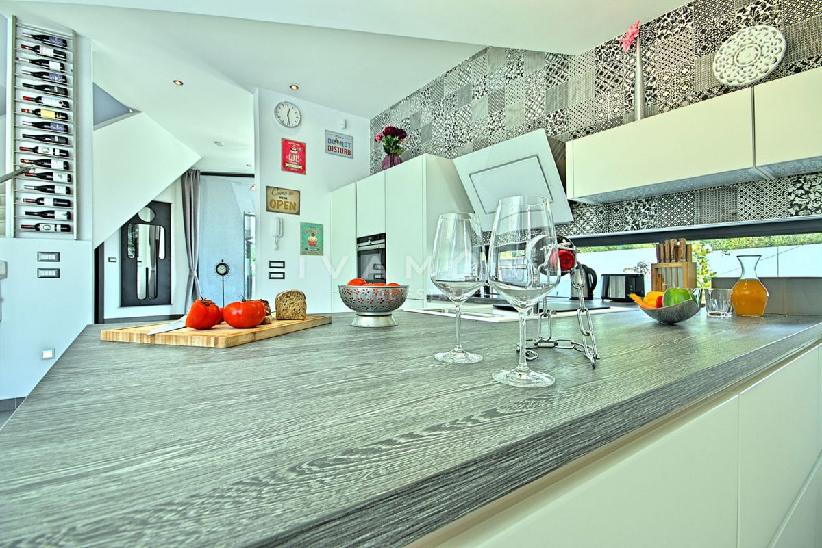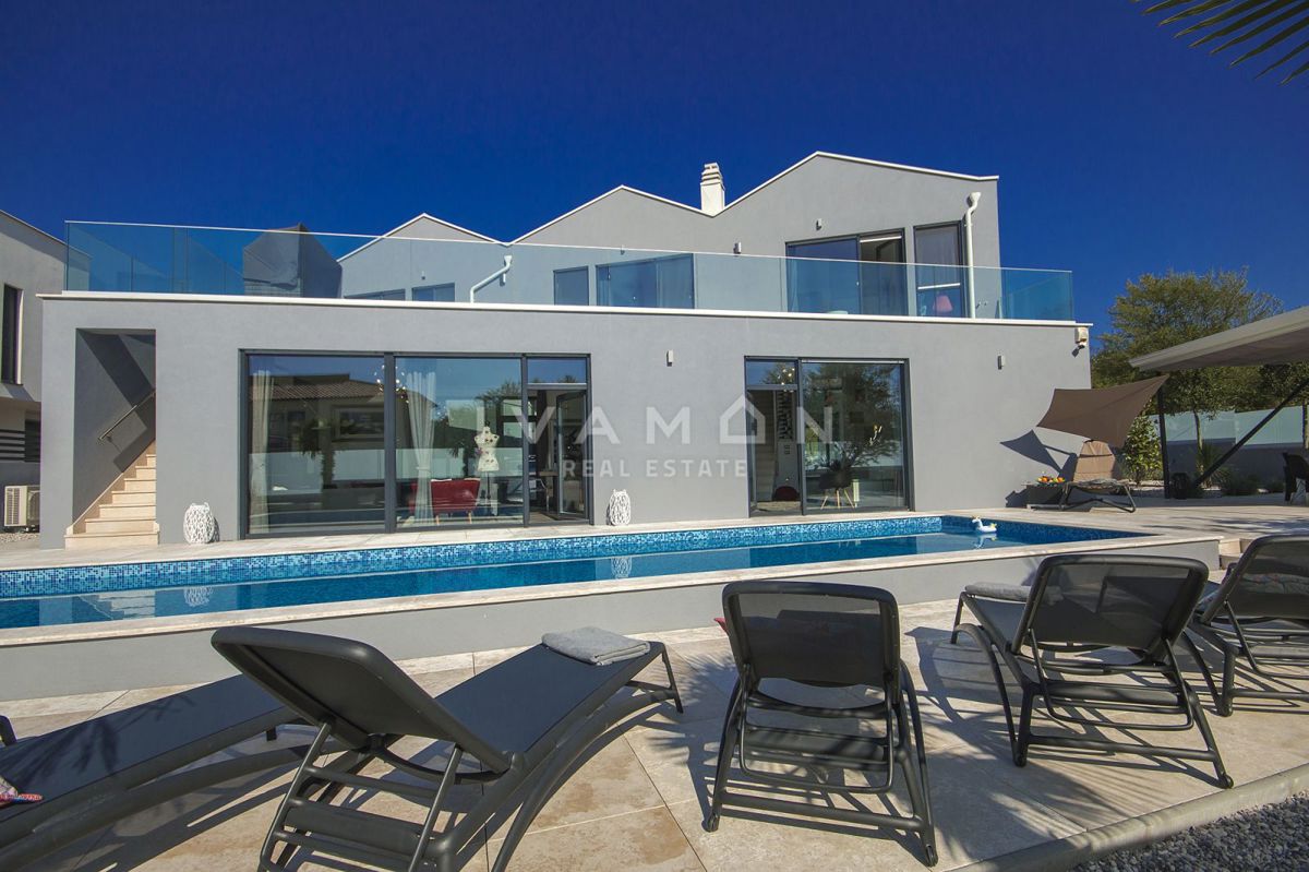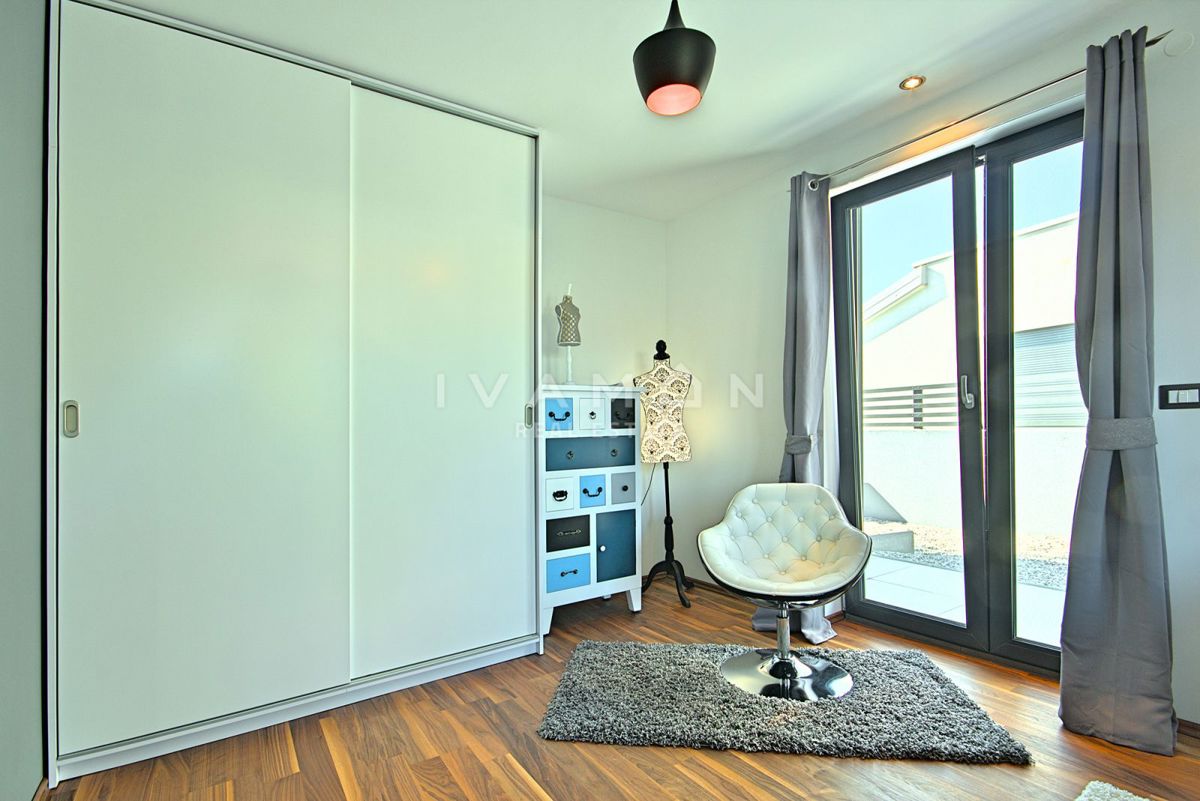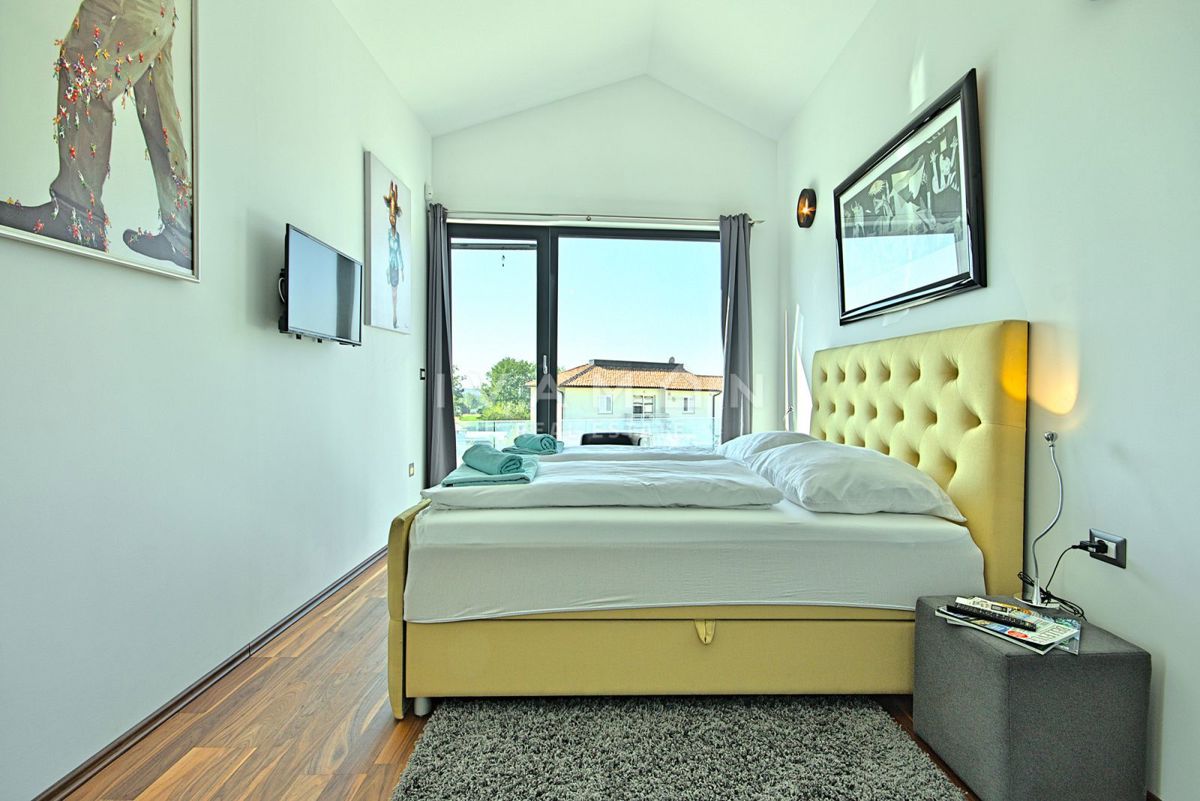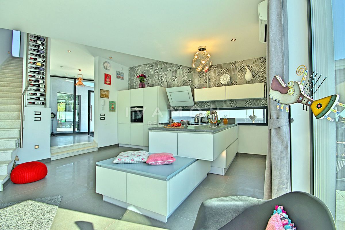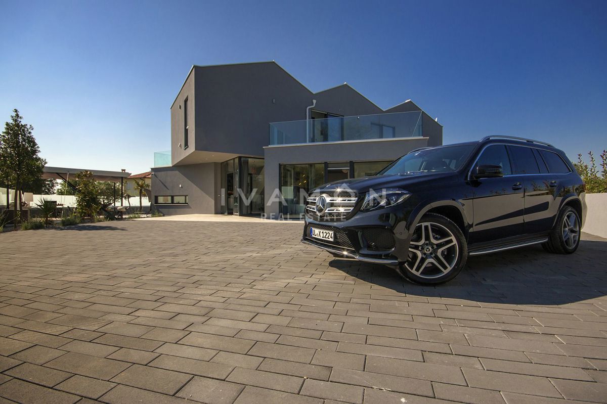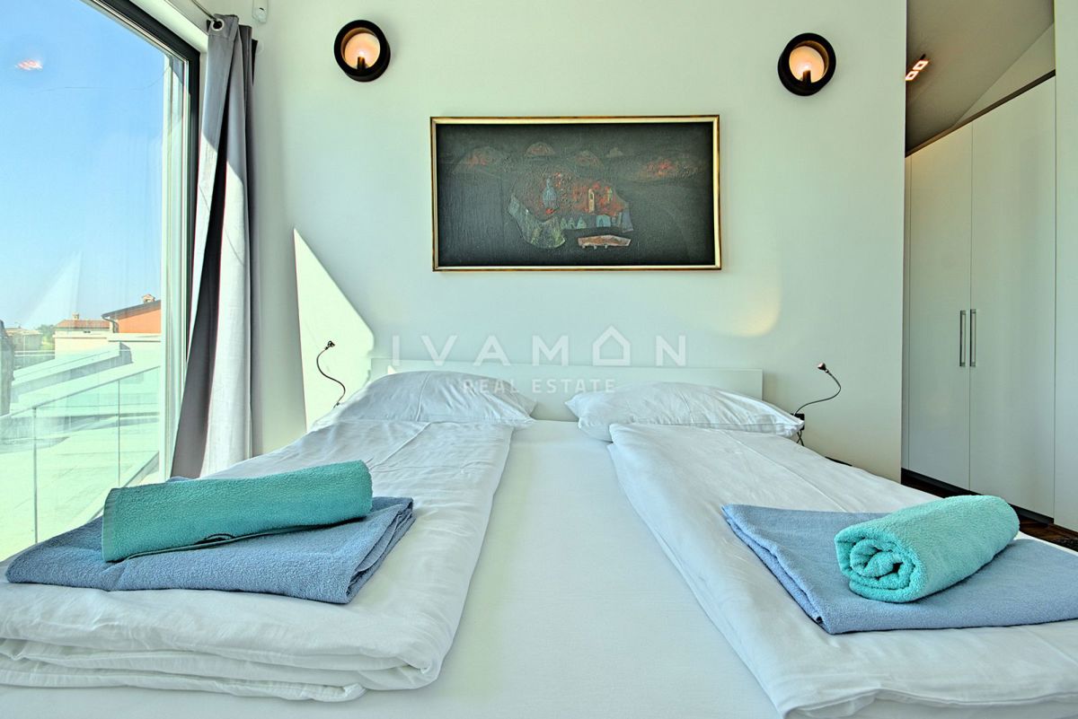 V bližini Poreča, osem kilometrov od morja, na zelo lepi mikrolokaciji, je naprodaj nova vila s bazenom in petimi spalnicami. Vila obsega 385,5 m² površine, razporejene v pritličju in nadstropju. Ponaša se z zelo zanimivo arhitekturo in zunanjostjo. Je r