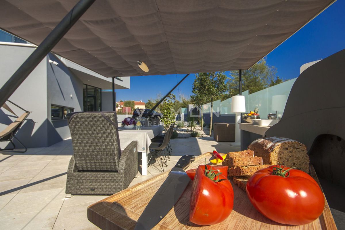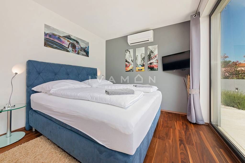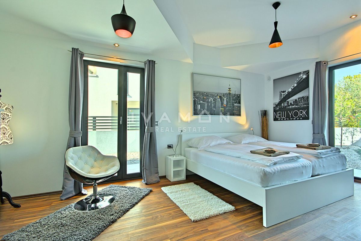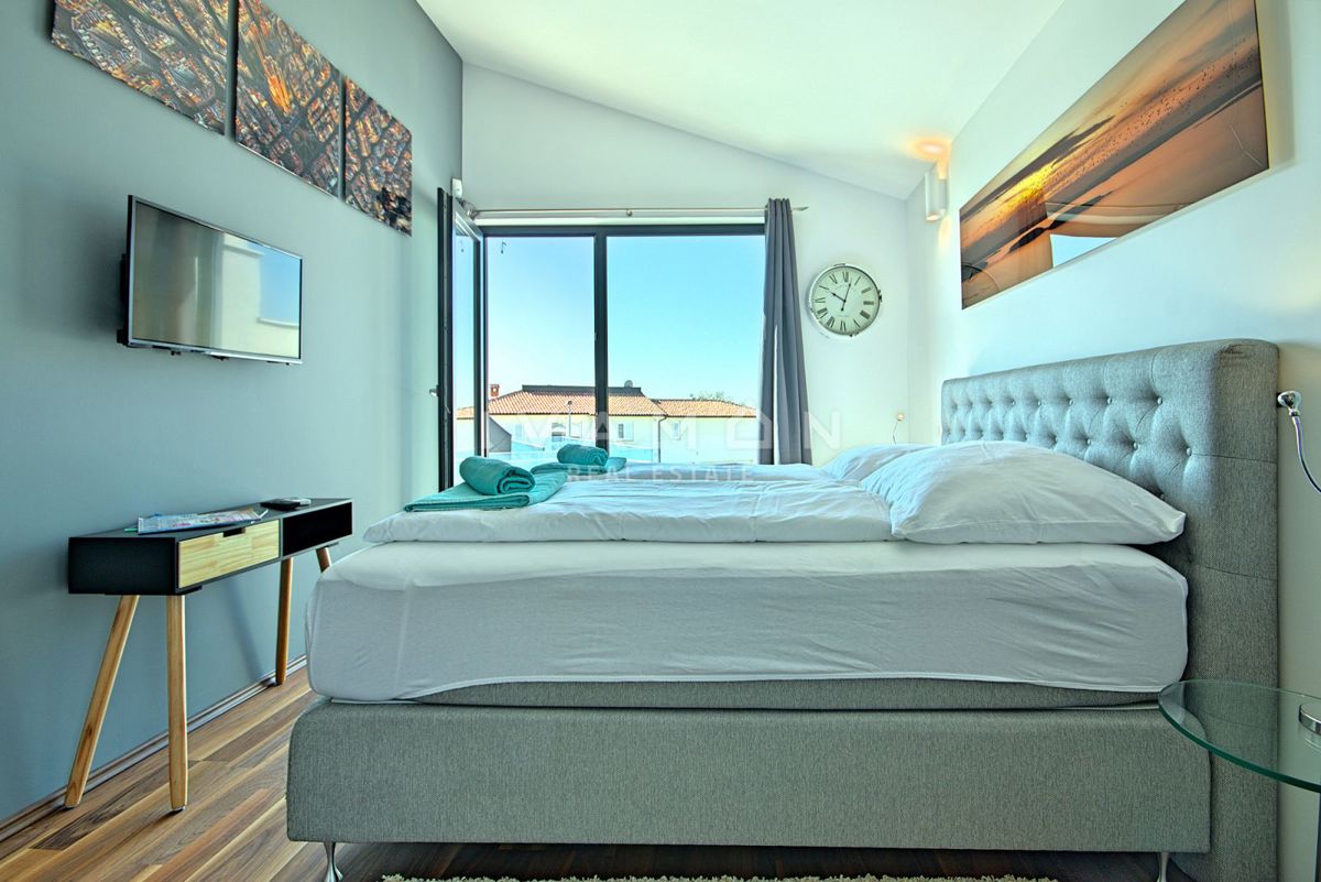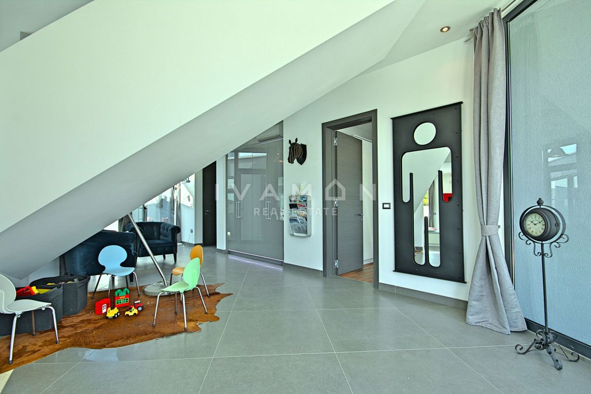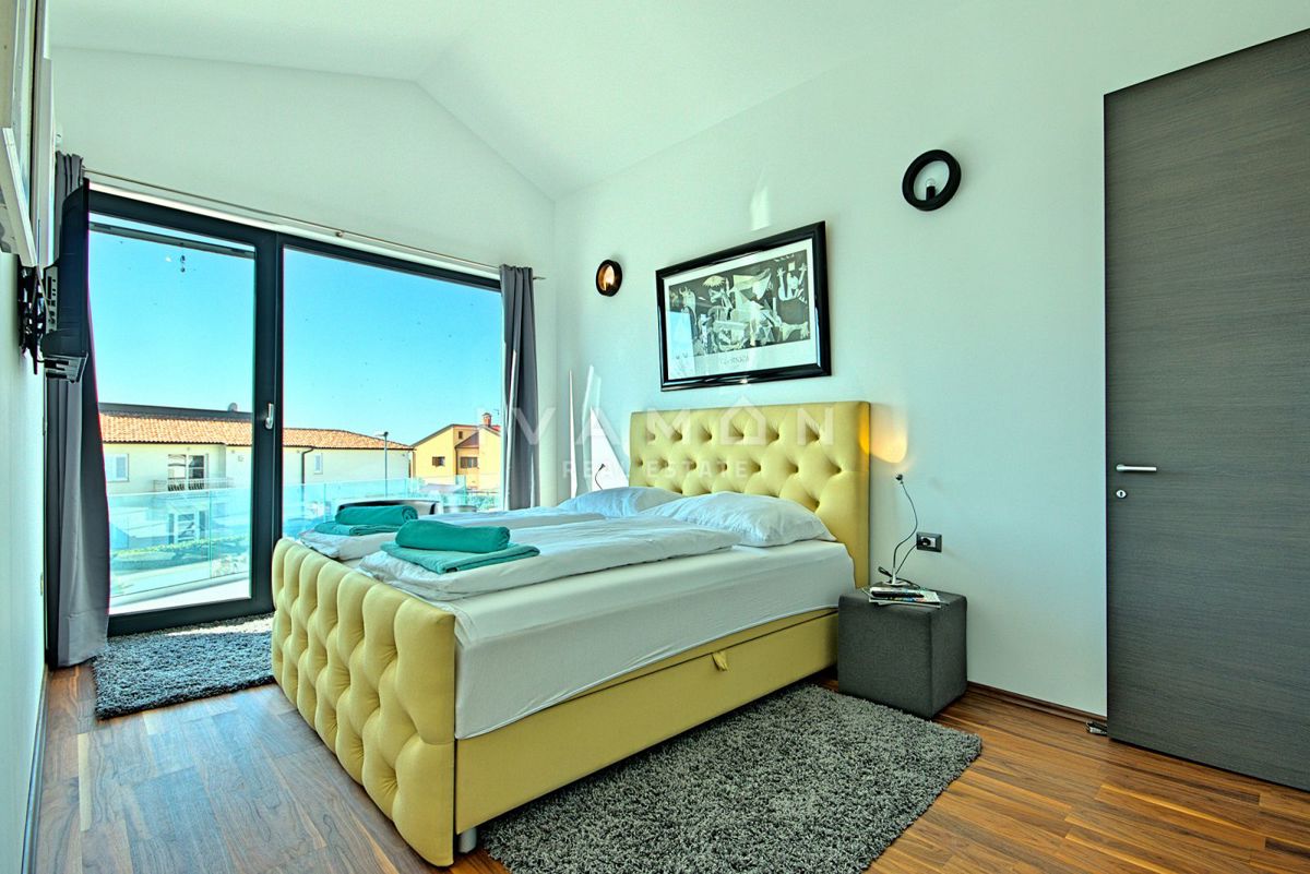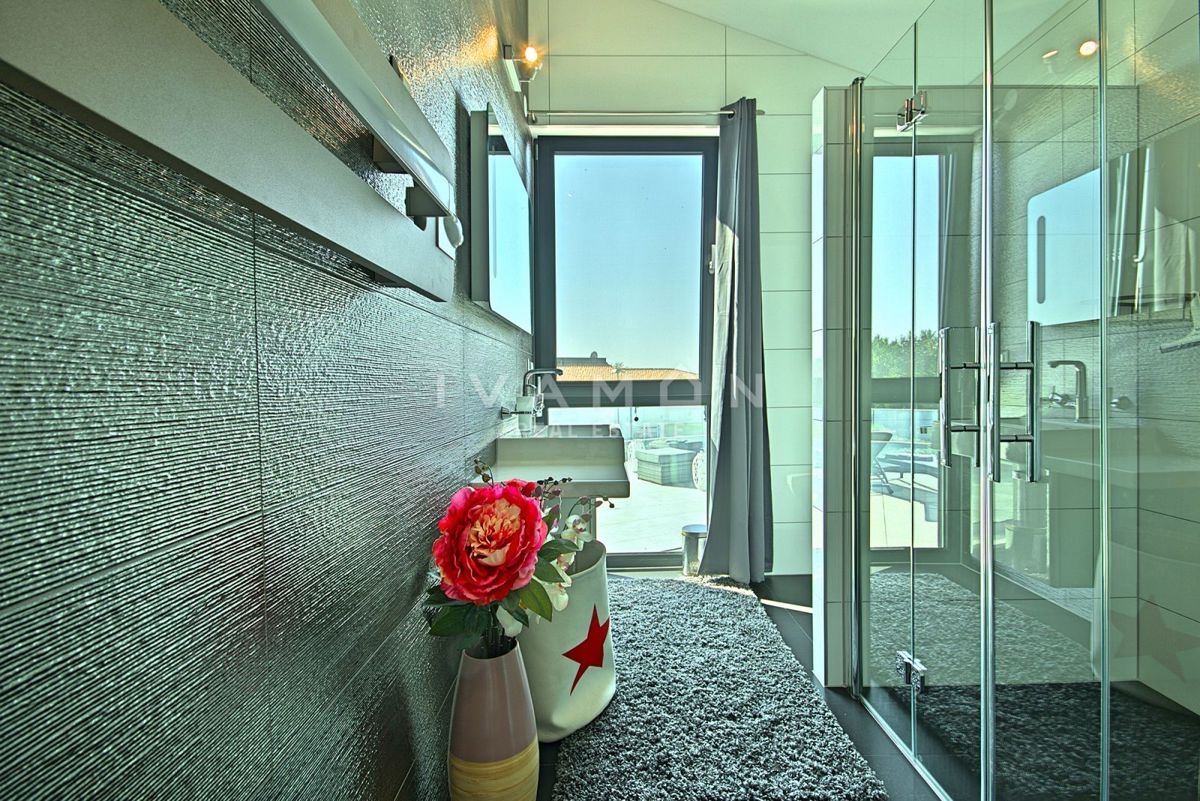 V bližini Poreča, osem kilometrov od morja, na zelo lepi mikrolokaciji, je naprodaj nova vila s bazenom in petimi spalnicami. Vila obsega 385,5 m² površine, razporejene v pritličju in nadstropju. Ponaša se z zelo zanimivo arhitekturo in zunanjostjo. Je r