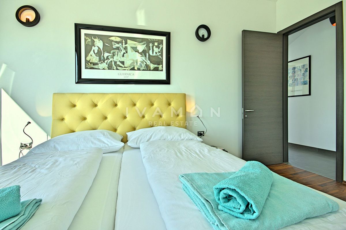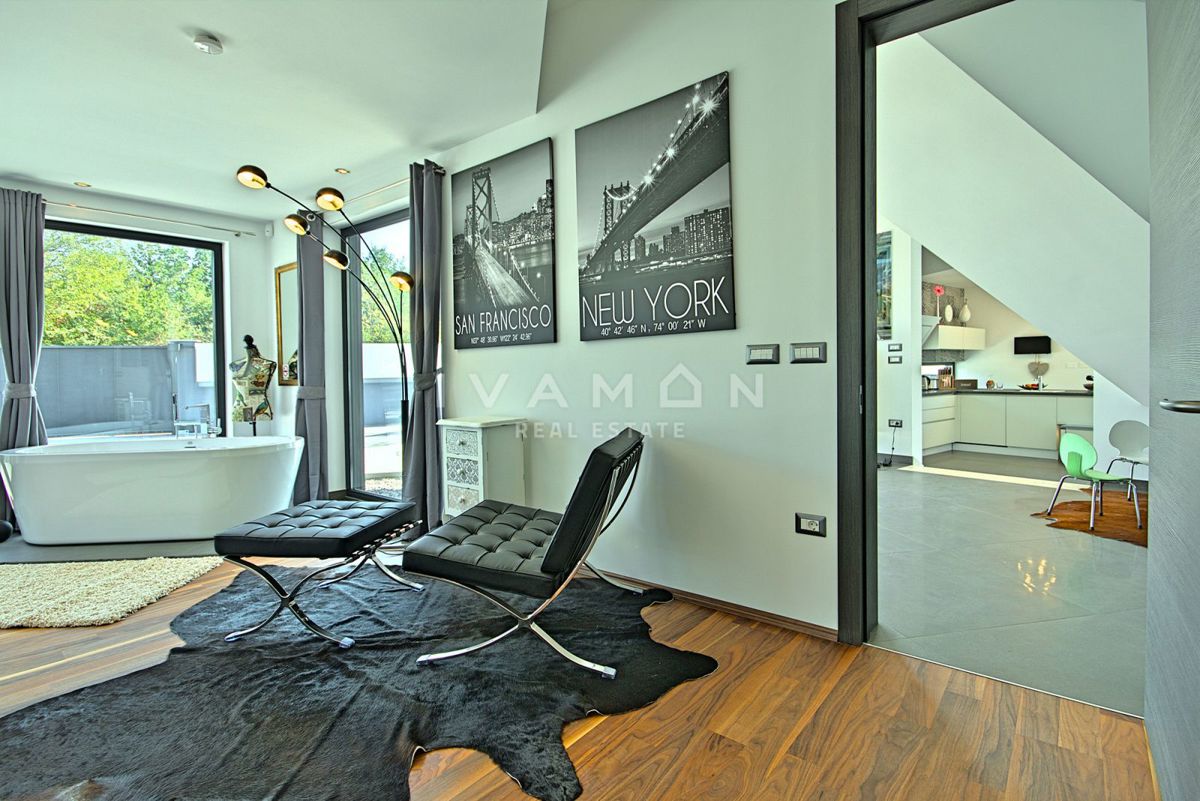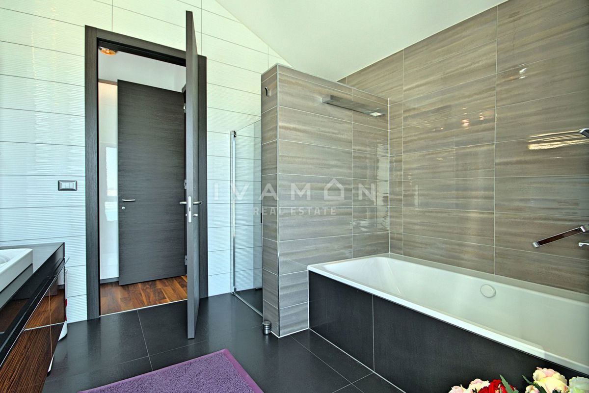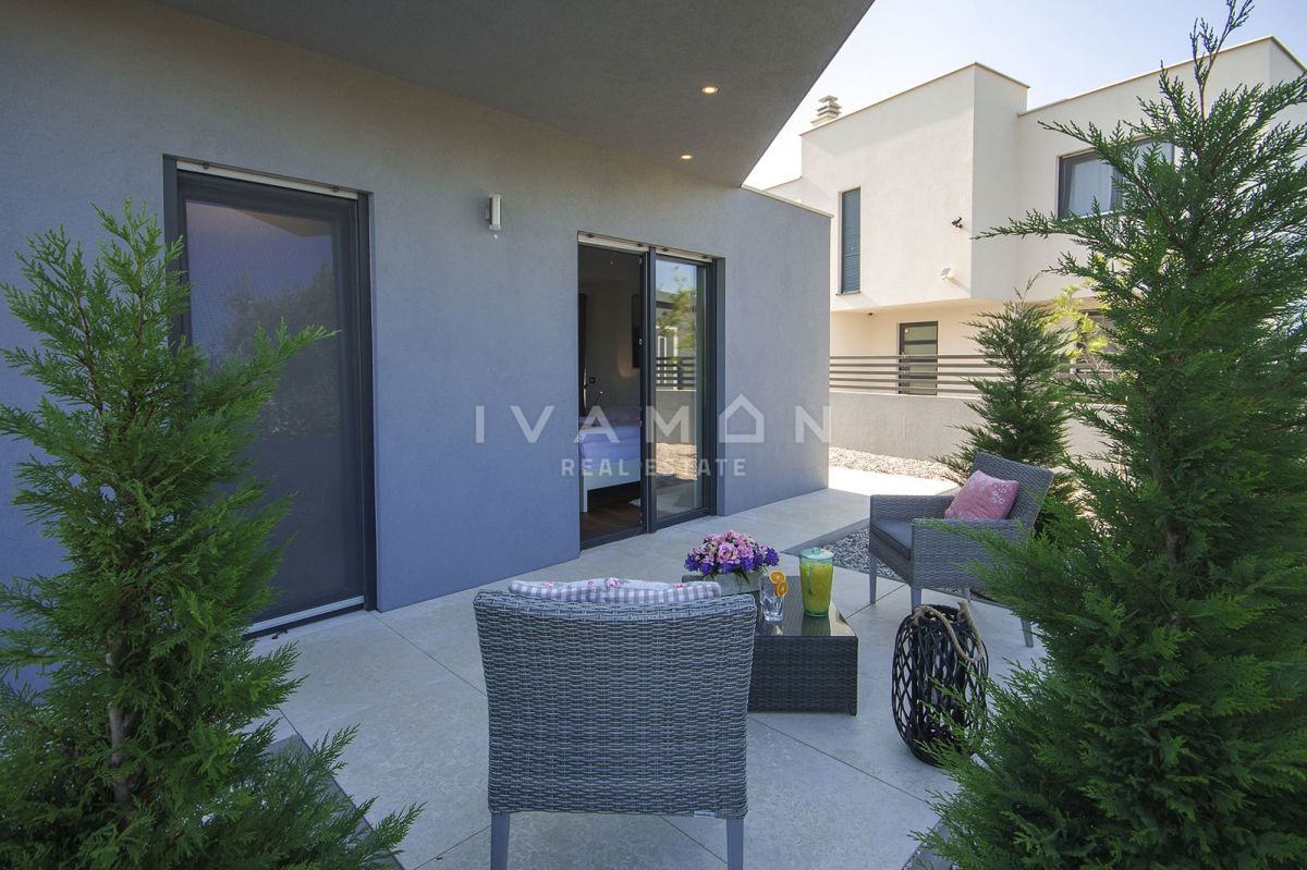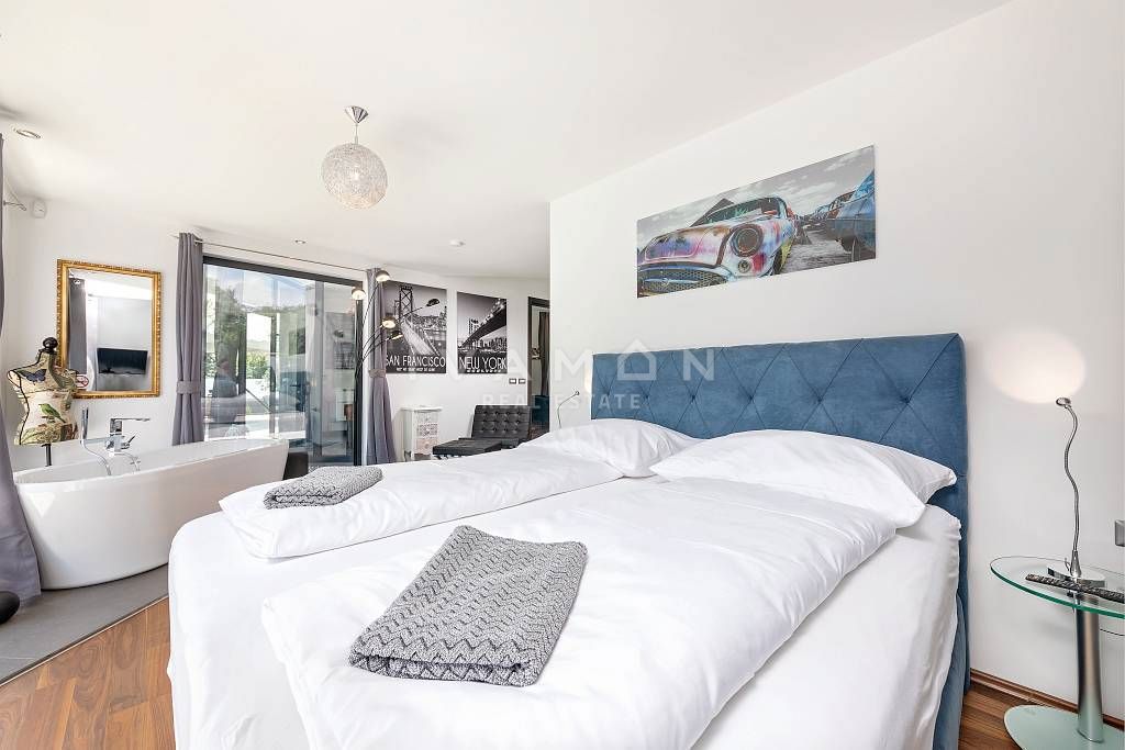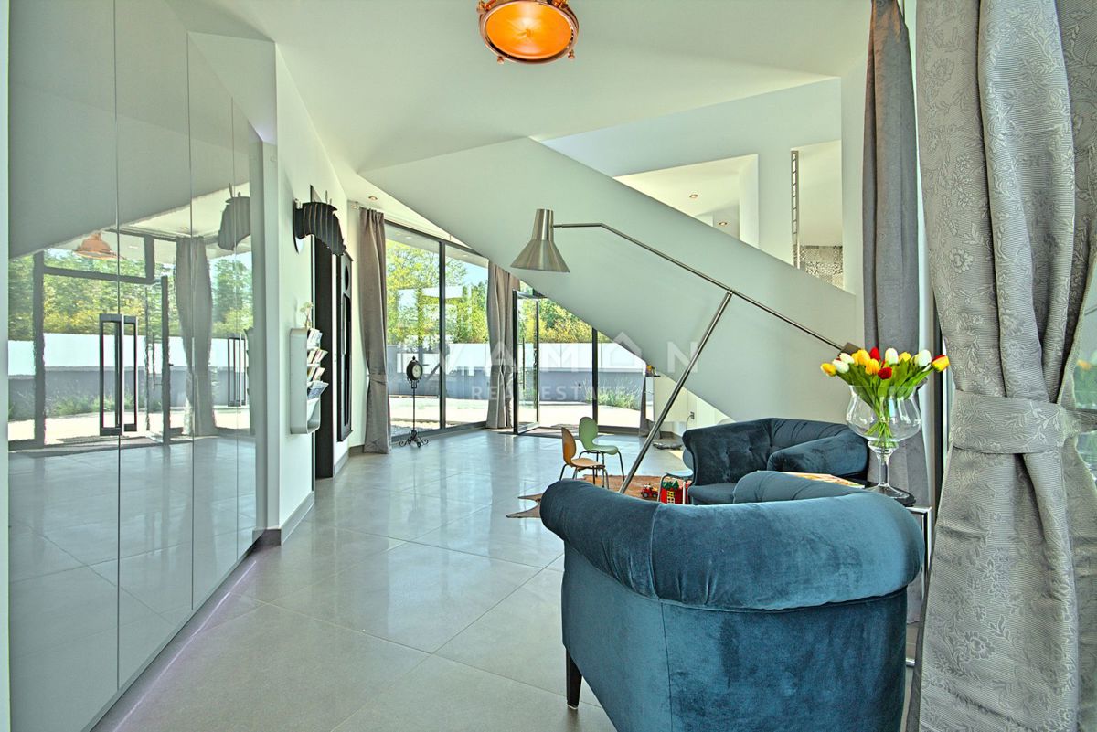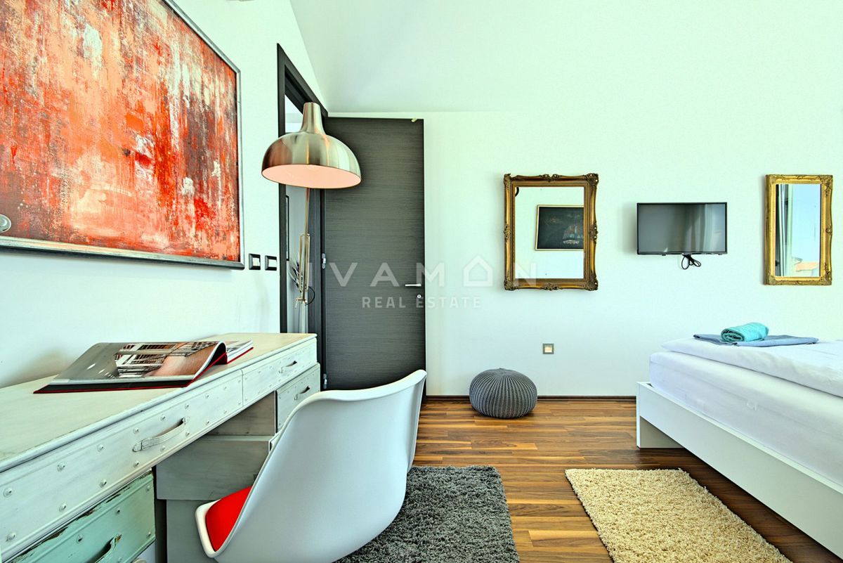 V bližini Poreča, osem kilometrov od morja, na zelo lepi mikrolokaciji, je naprodaj nova vila s bazenom in petimi spalnicami. Vila obsega 385,5 m² površine, razporejene v pritličju in nadstropju. Ponaša se z zelo zanimivo arhitekturo in zunanjostjo. Je r