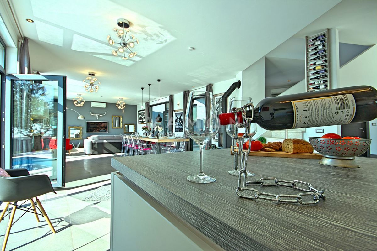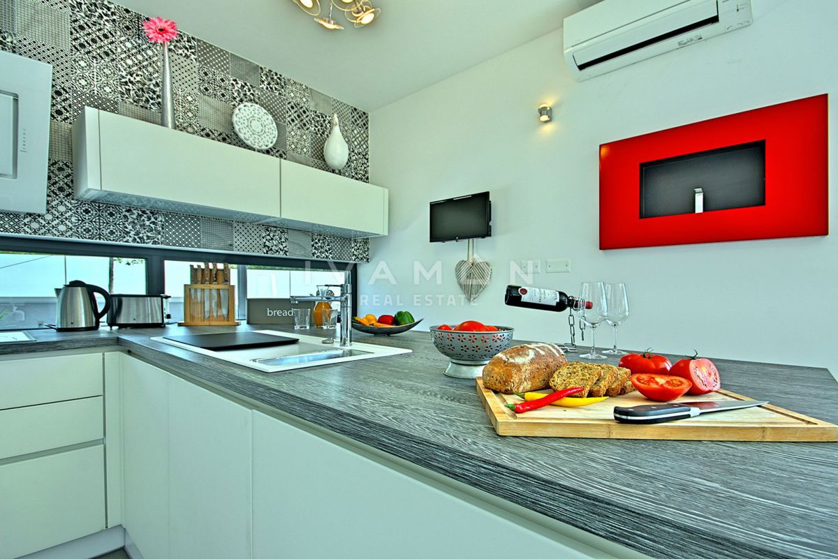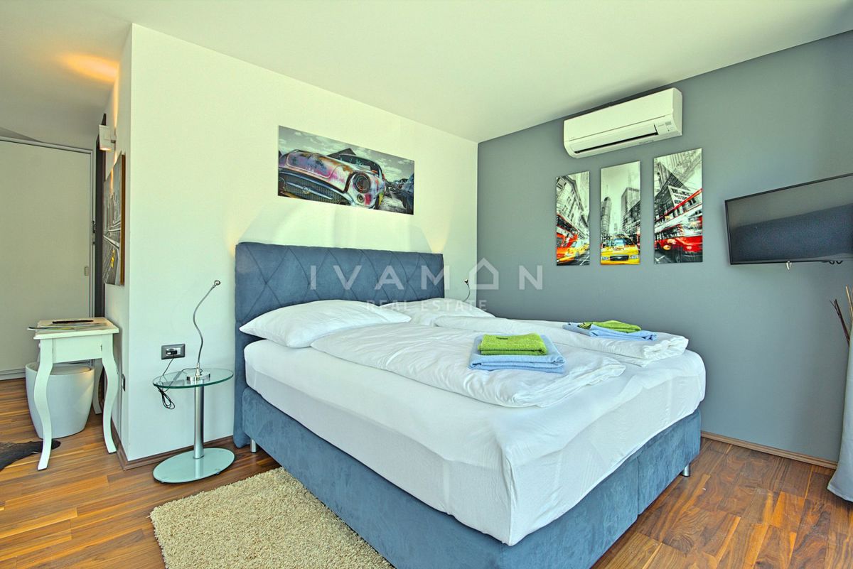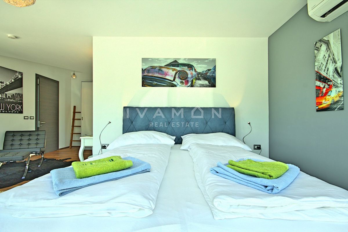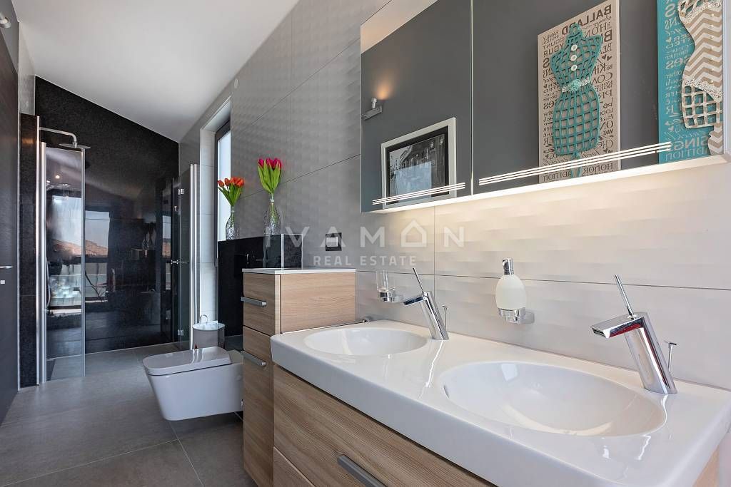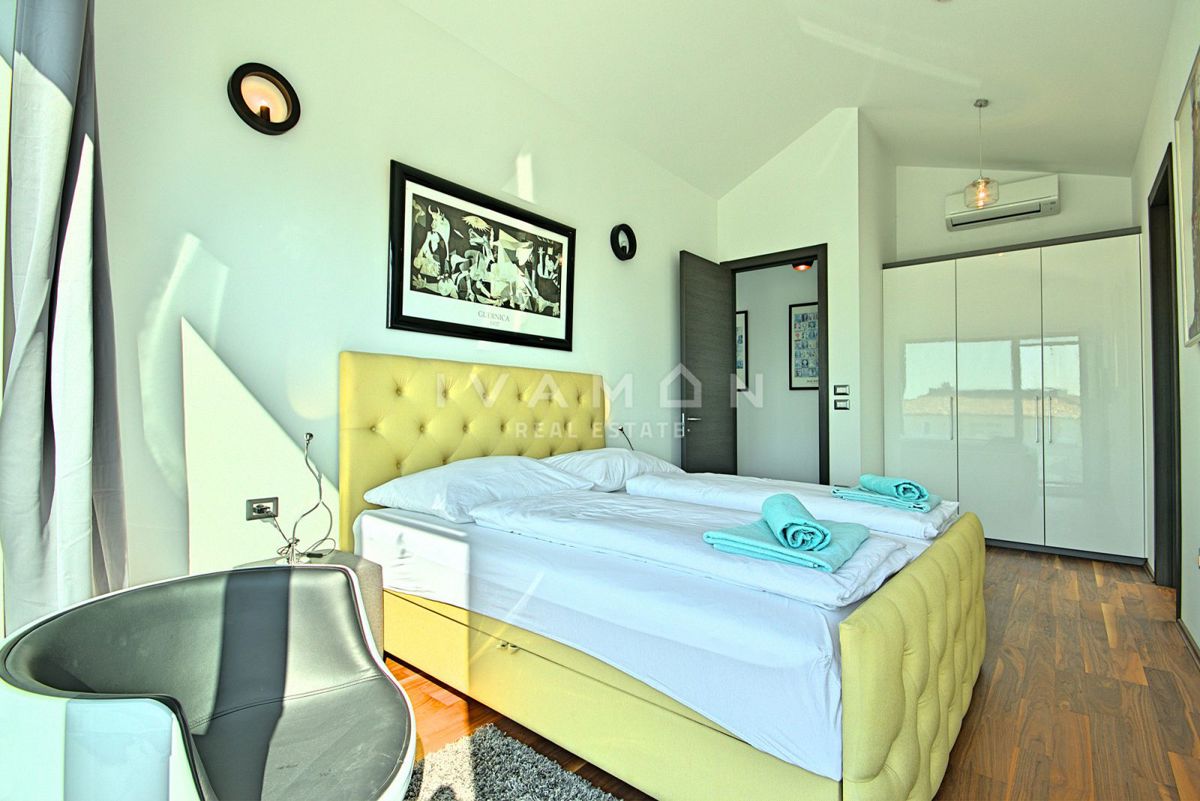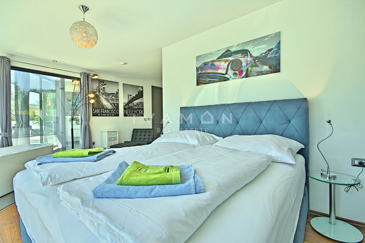 V bližini Poreča, osem kilometrov od morja, na zelo lepi mikrolokaciji, je naprodaj nova vila s bazenom in petimi spalnicami. Vila obsega 385,5 m² površine, razporejene v pritličju in nadstropju. Ponaša se z zelo zanimivo arhitekturo in zunanjostjo. Je r