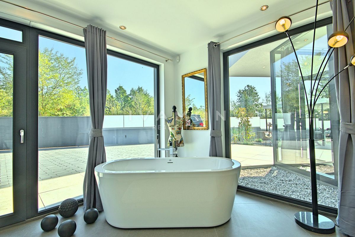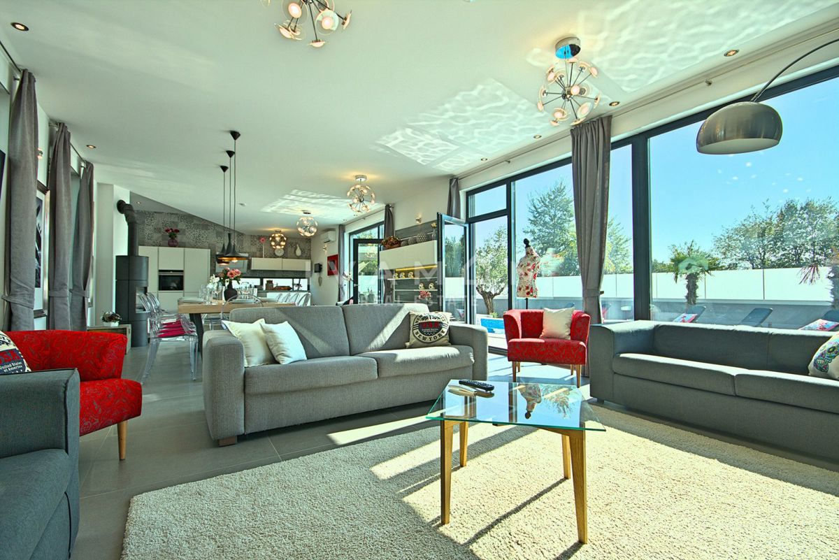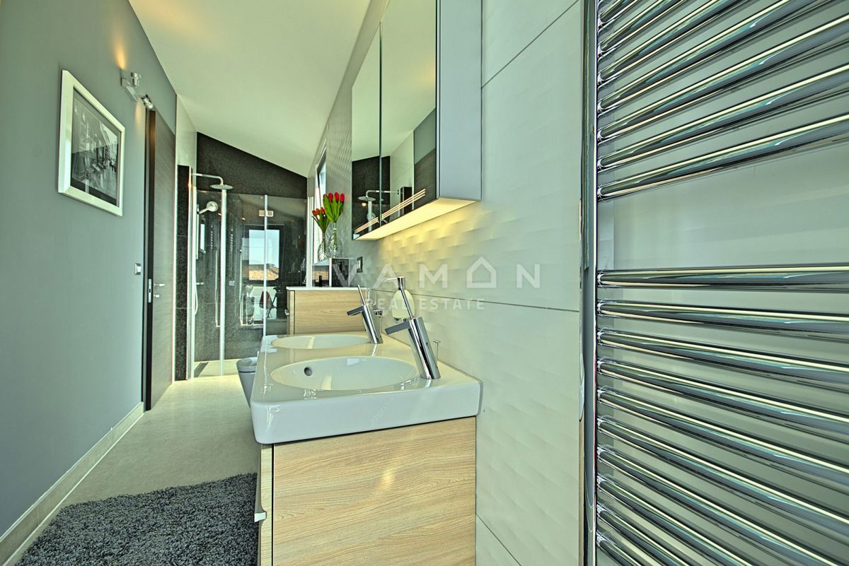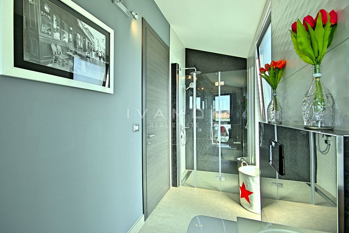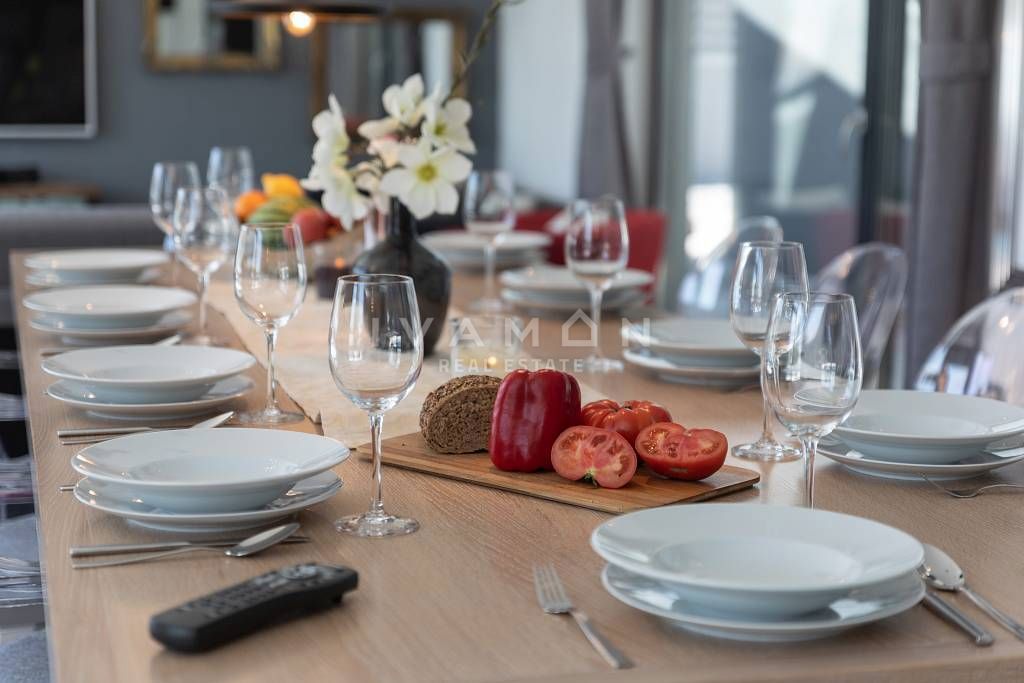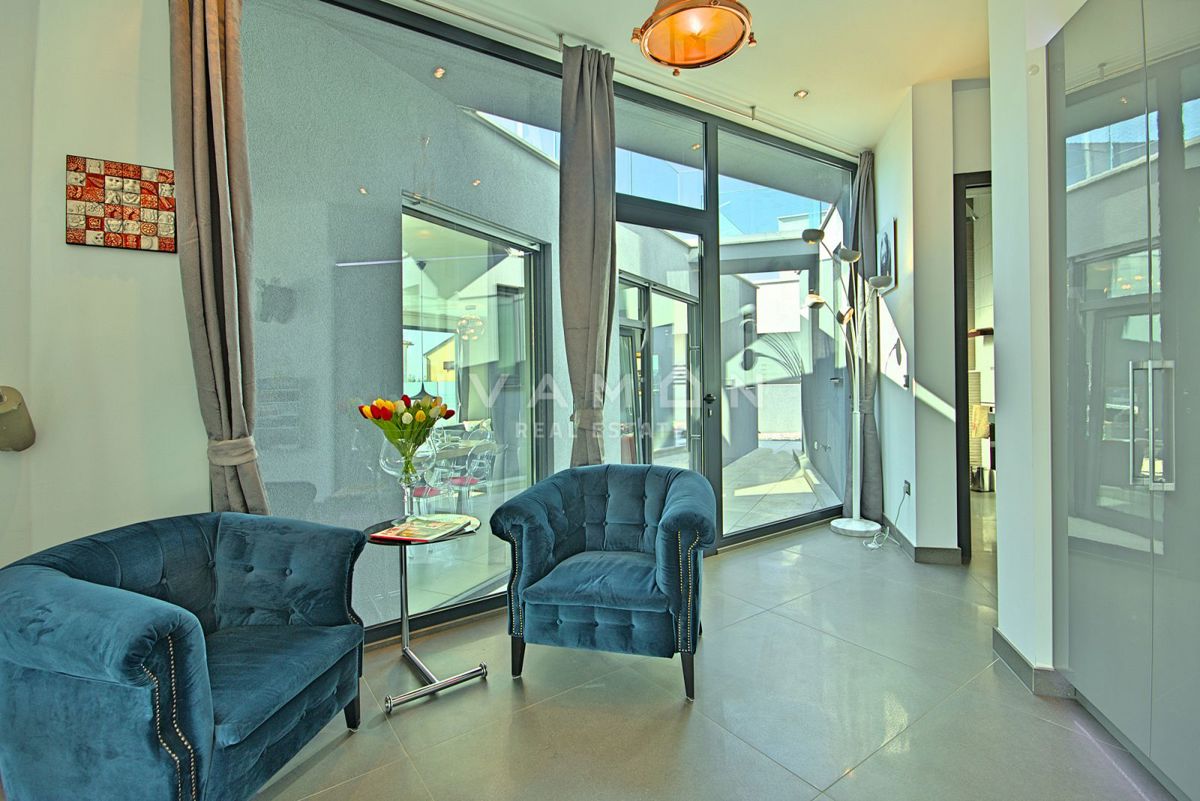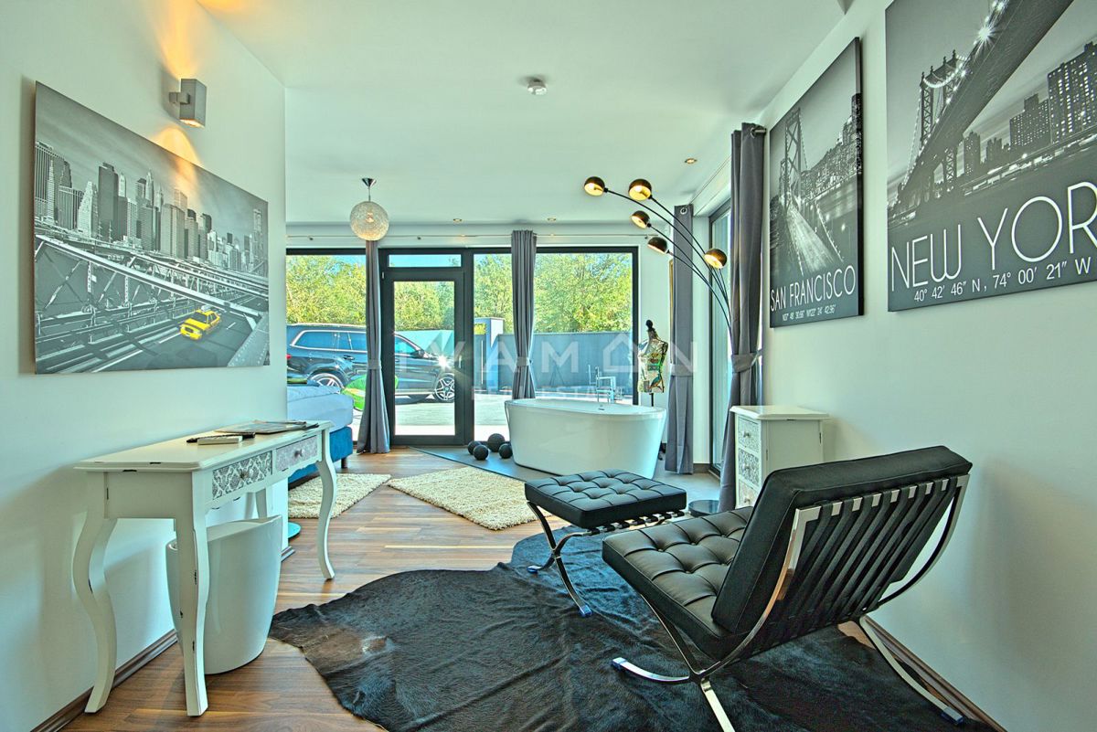V bližini Poreča, osem kilometrov od morja, na zelo lepi mikrolokaciji, je naprodaj nova vila s bazenom in petimi spalnicami. Vila obsega 385,5 m² površine, razporejene v pritličju in nadstropju. Ponaša se z zelo zanimivo arhitekturo in zunanjostjo. Je r