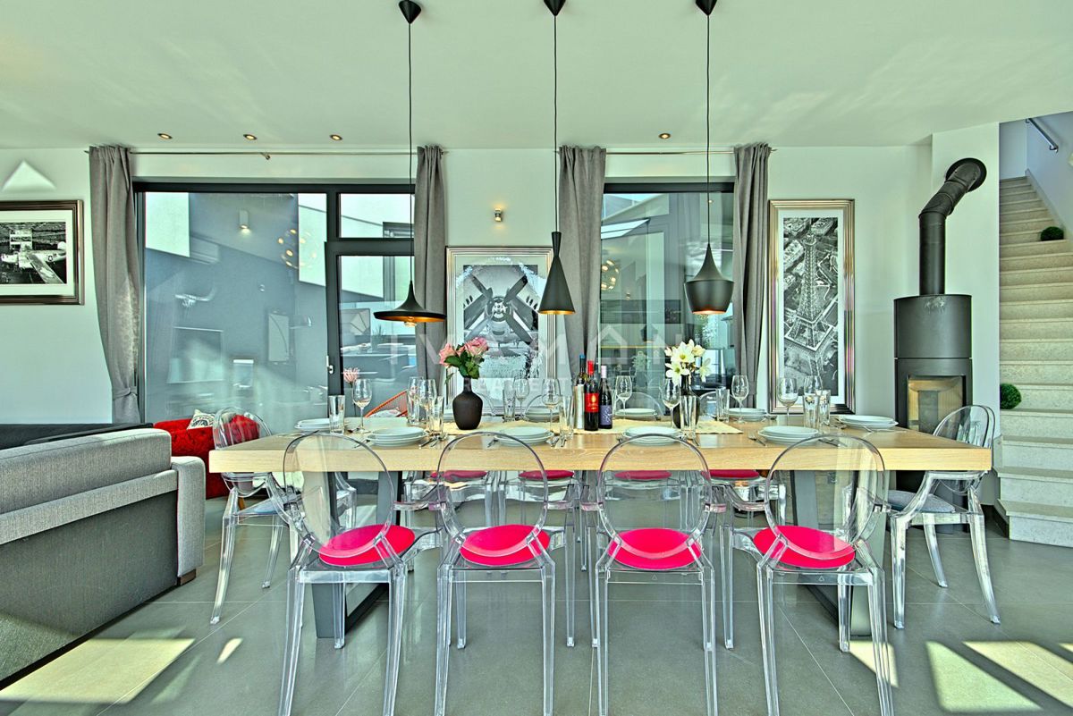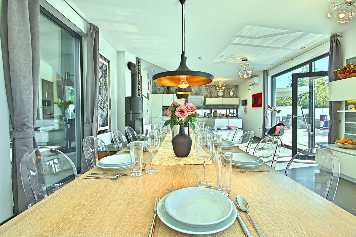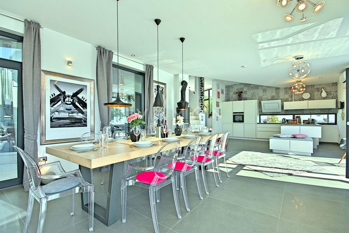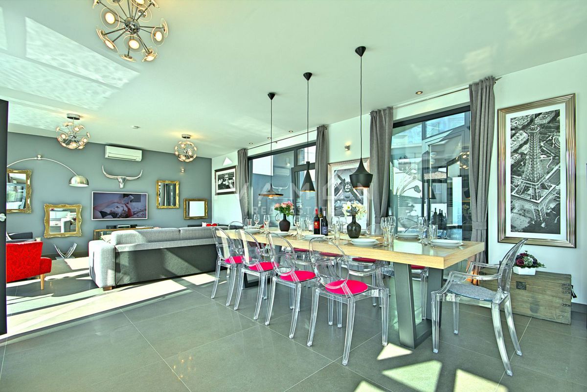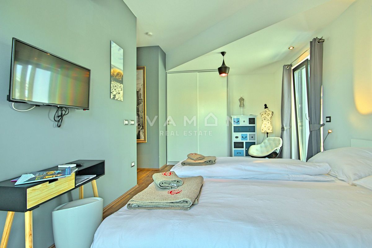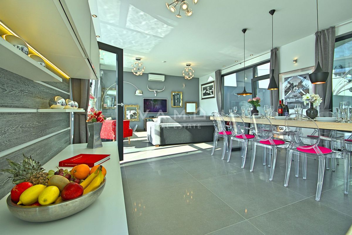 V bližini Poreča, osem kilometrov od morja, na zelo lepi mikrolokaciji, je naprodaj nova vila s bazenom in petimi spalnicami. Vila obsega 385,5 m² površine, razporejene v pritličju in nadstropju. Ponaša se z zelo zanimivo arhitekturo in zunanjostjo. Je r