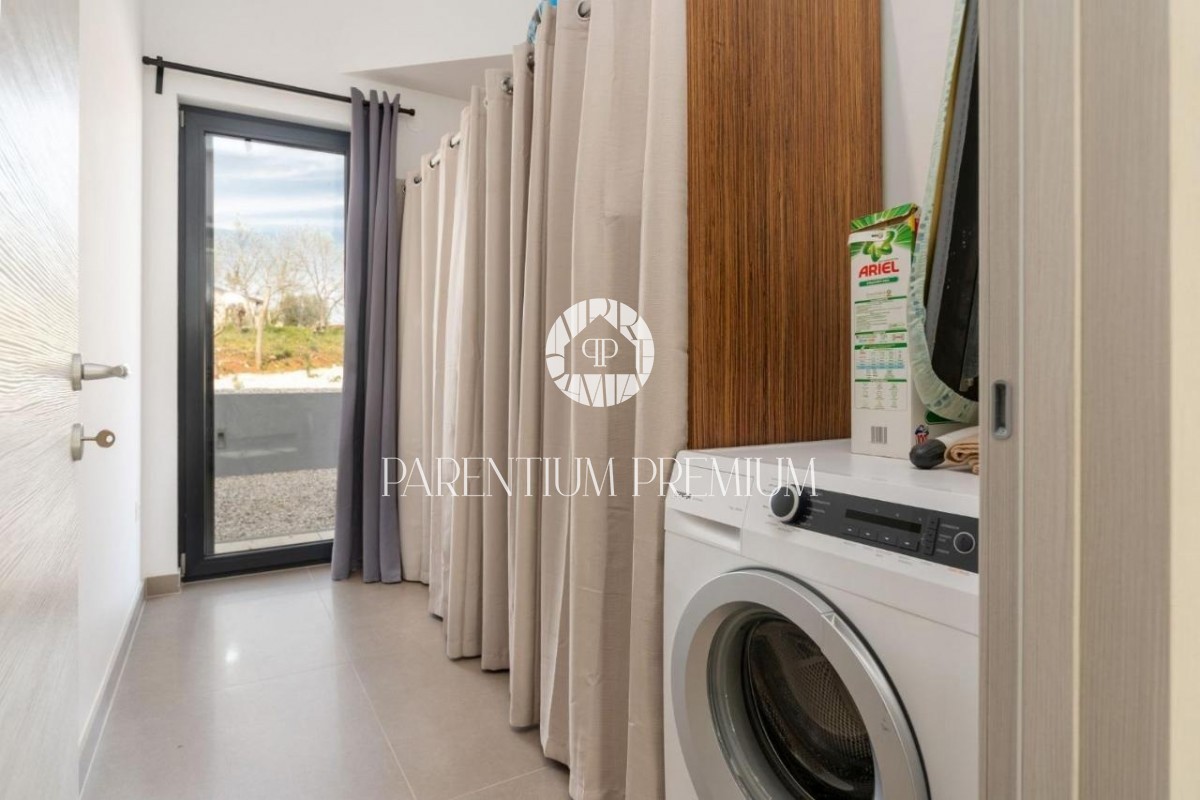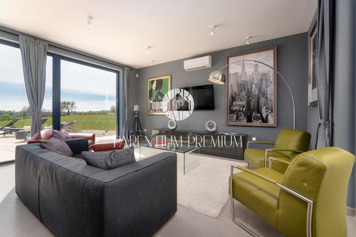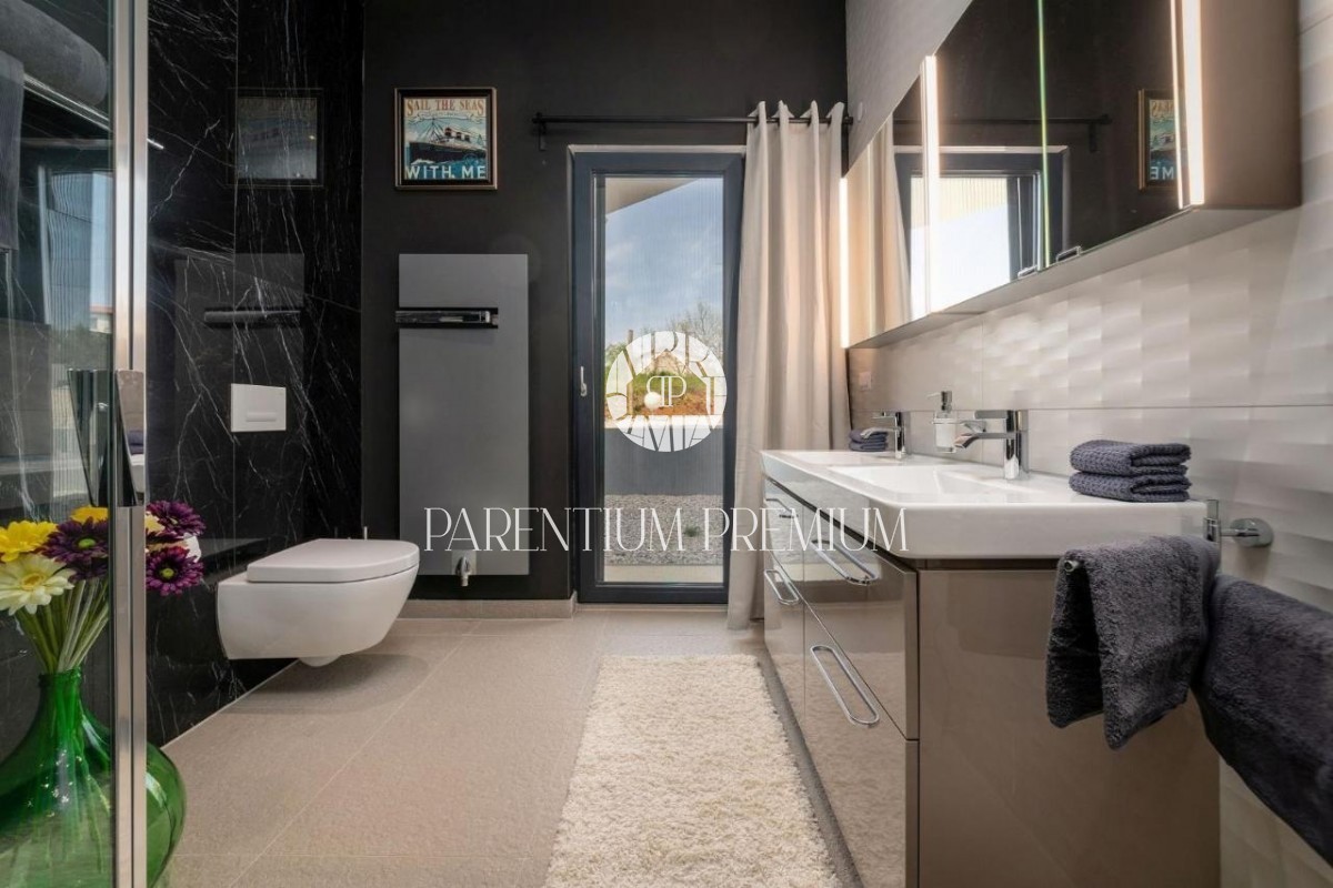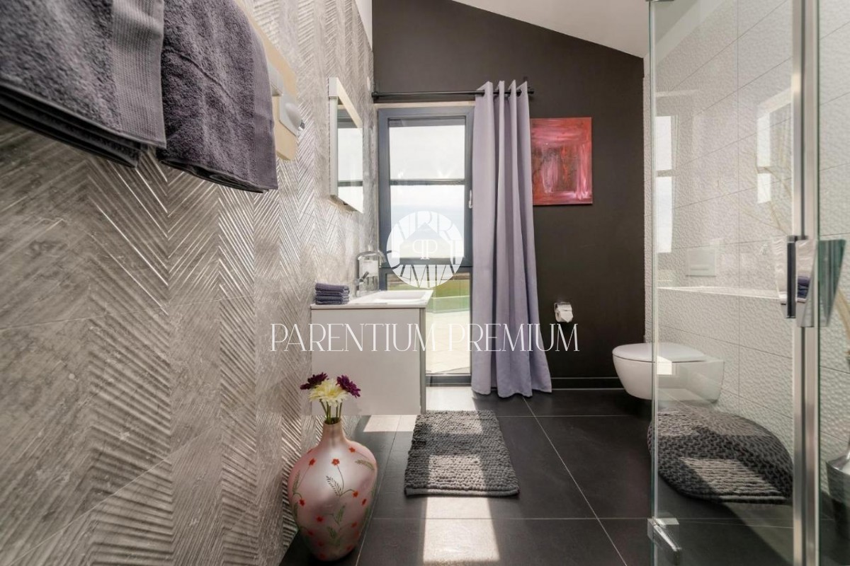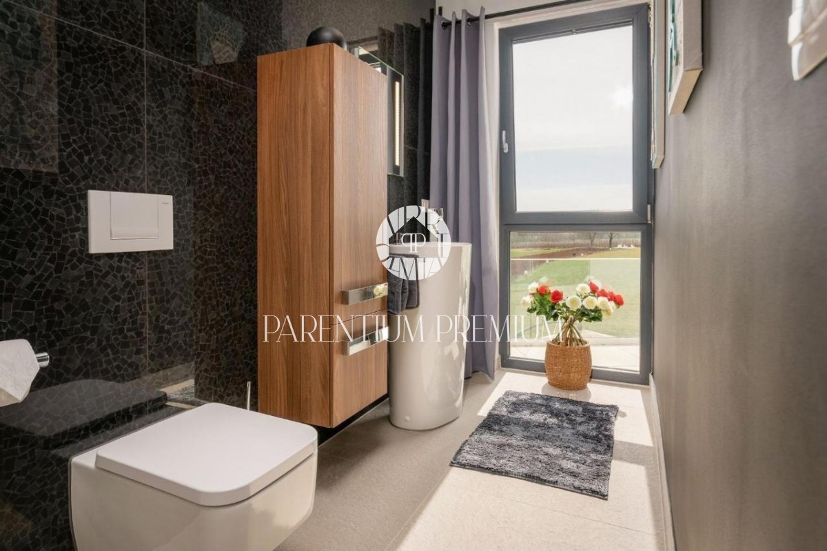 Istra, okolica Poreča Na robu majhnega istrskega mesteca se prodaja luksuzna vila z bazenom. Nahaja se na velikem zemljišču 6270 m2, obdanem z naravo in vinogradi. Skupna površina vile je 454 m2, ki se razteza v dveh etažah. V pritličju je kuhinja z jedi