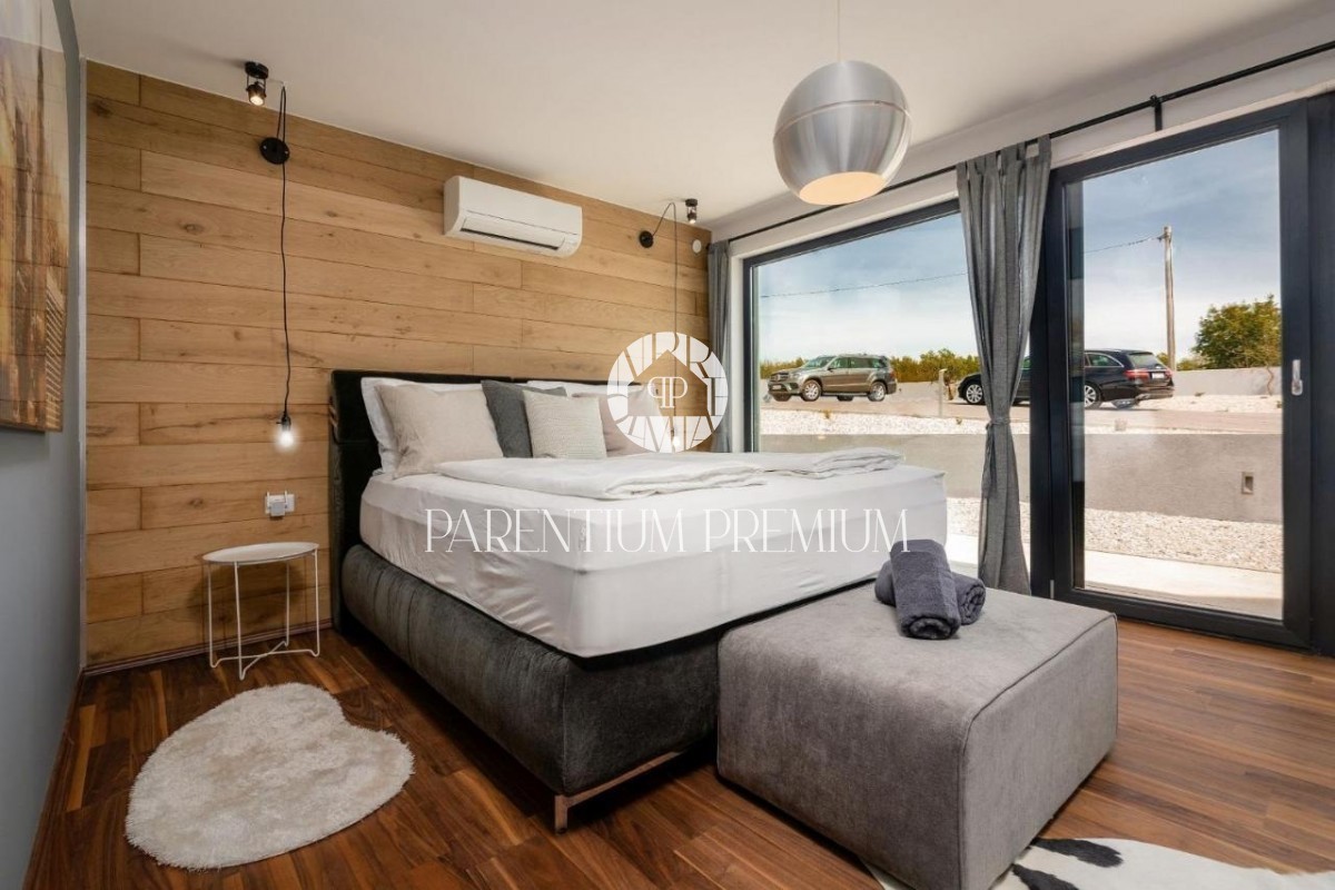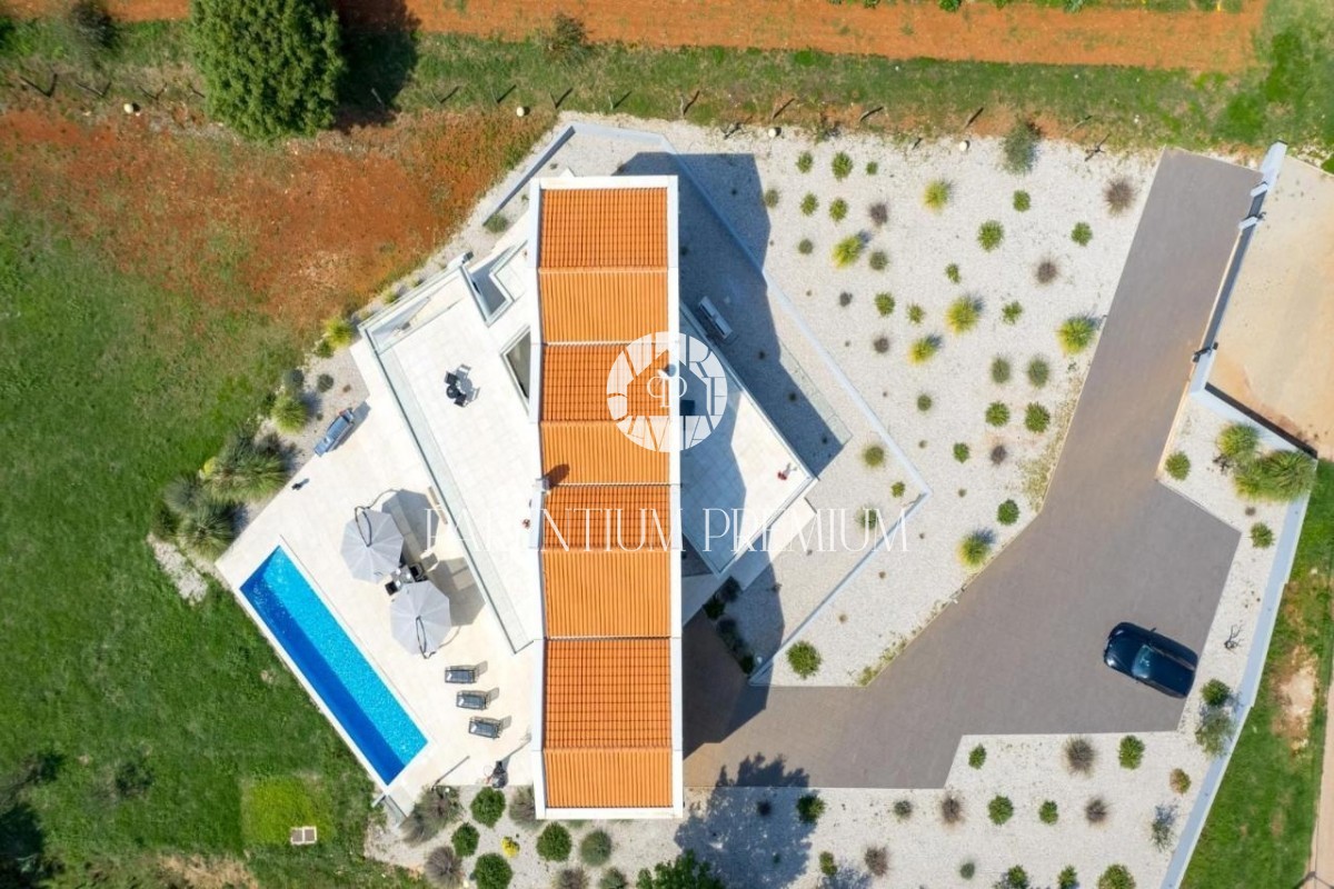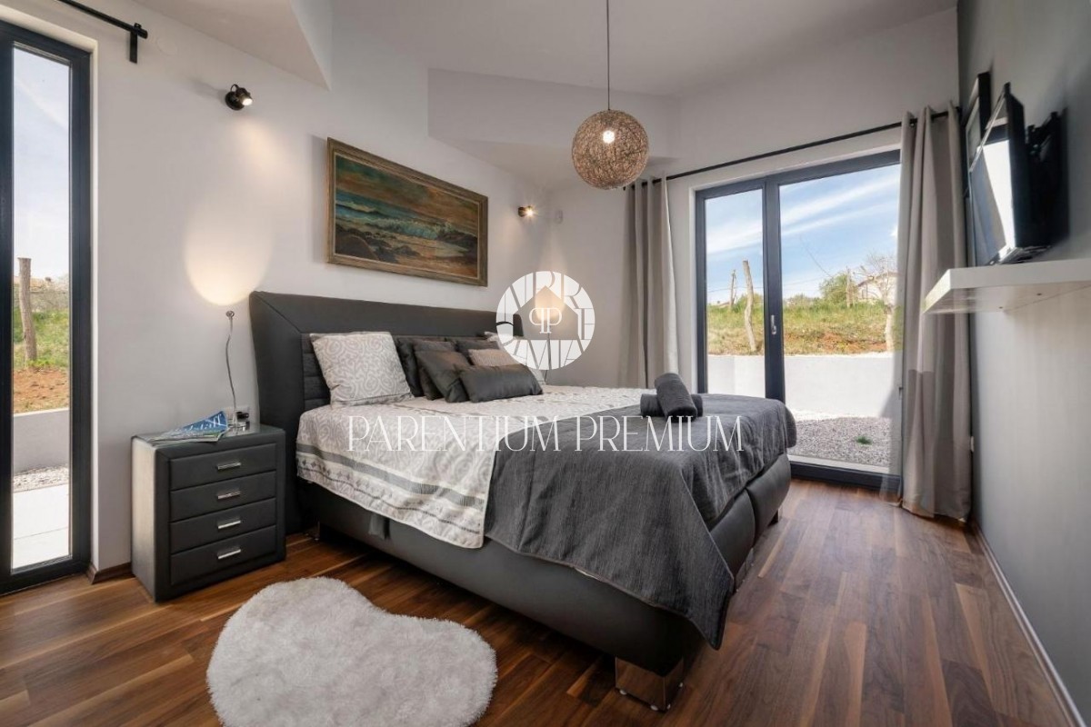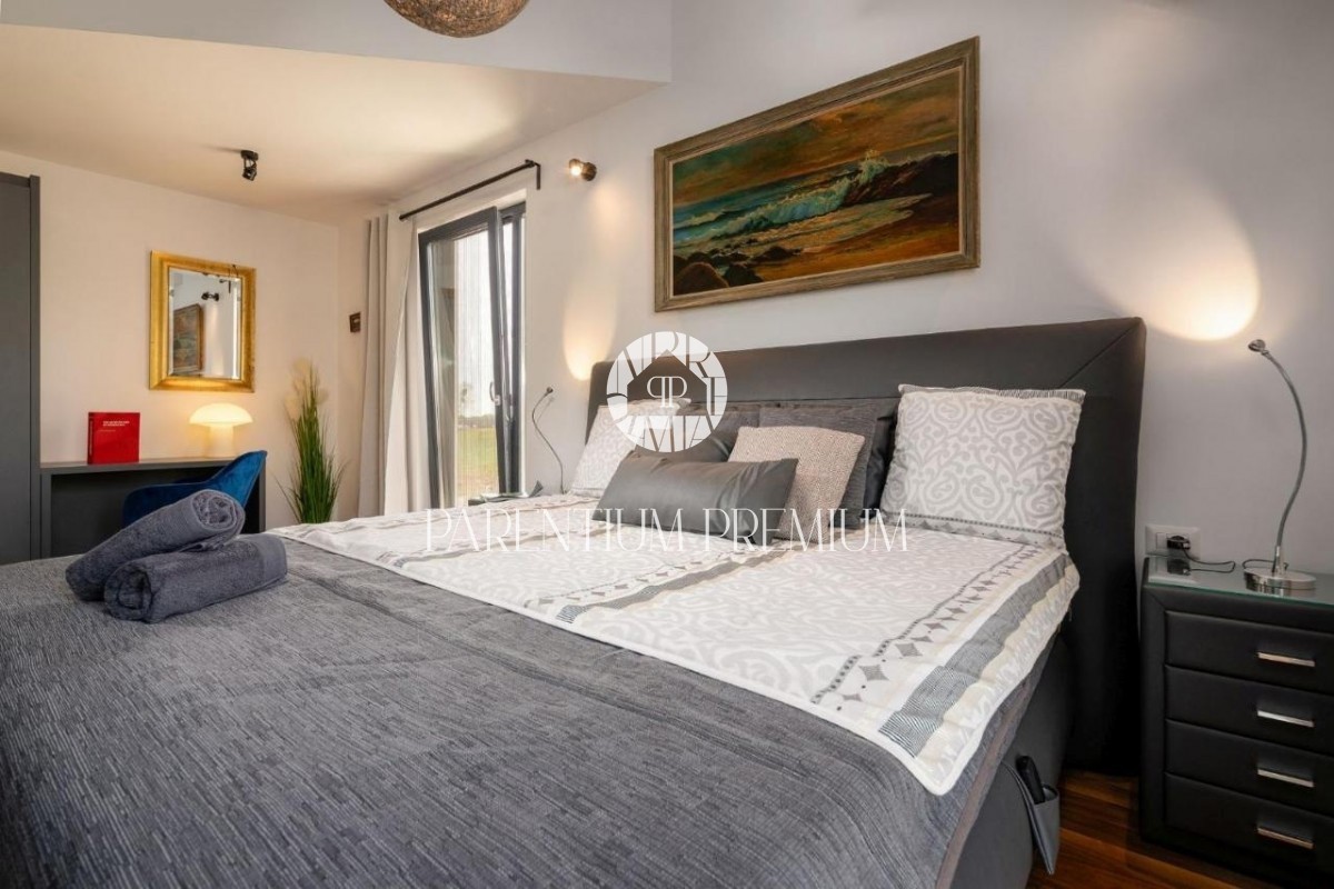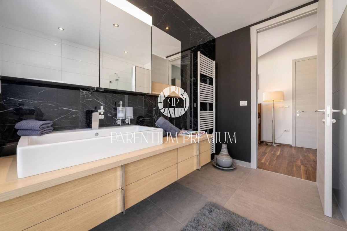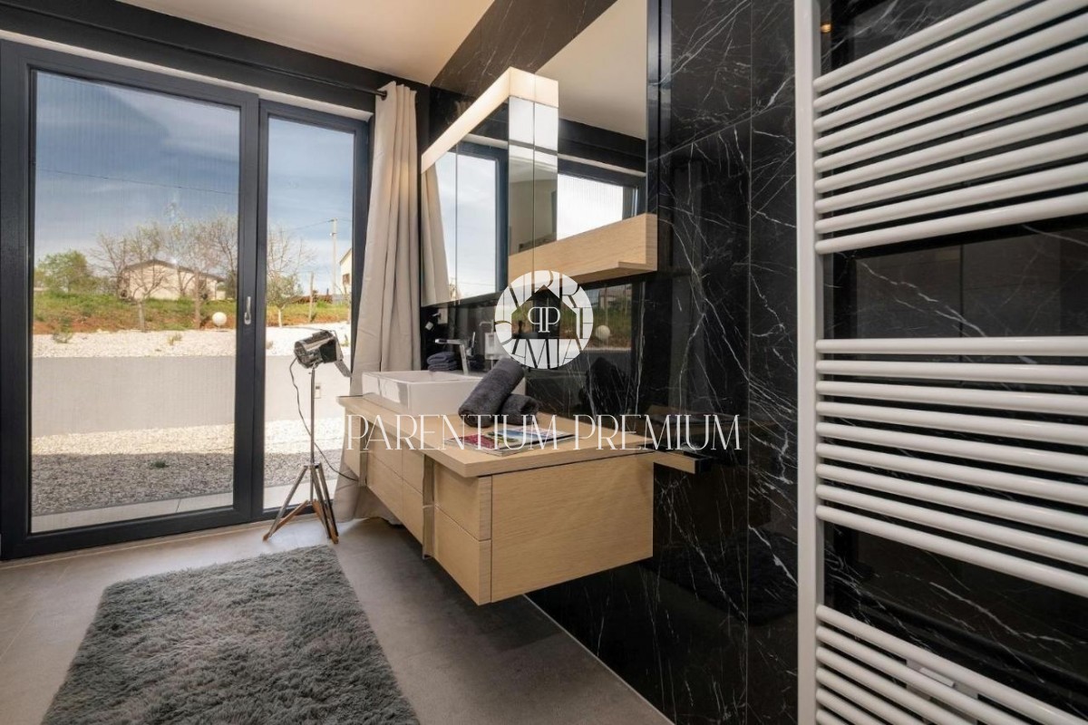 Istra, okolica Poreča Na robu majhnega istrskega mesteca se prodaja luksuzna vila z bazenom. Nahaja se na velikem zemljišču 6270 m2, obdanem z naravo in vinogradi. Skupna površina vile je 454 m2, ki se razteza v dveh etažah. V pritličju je kuhinja z jedi