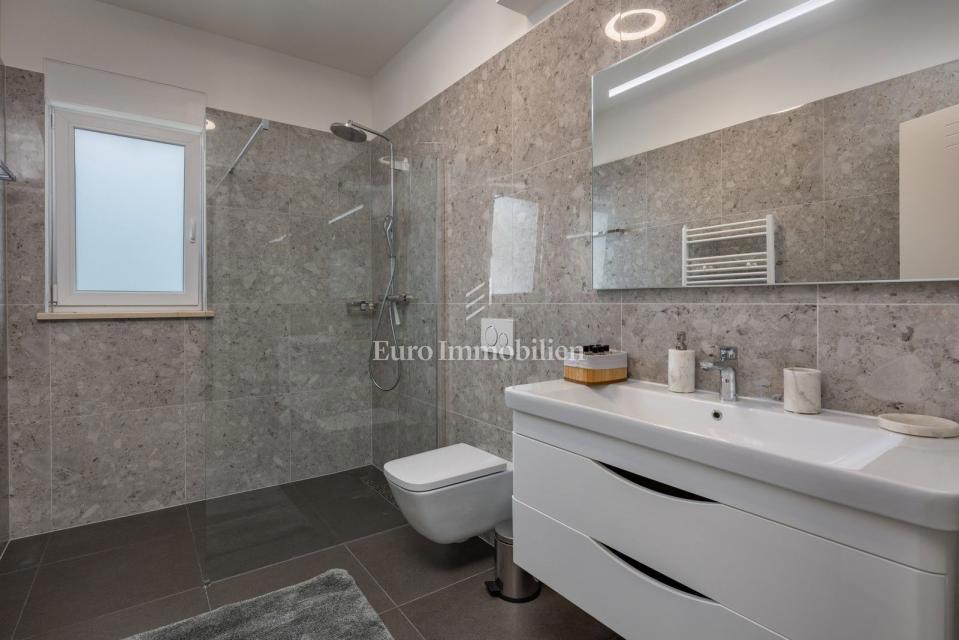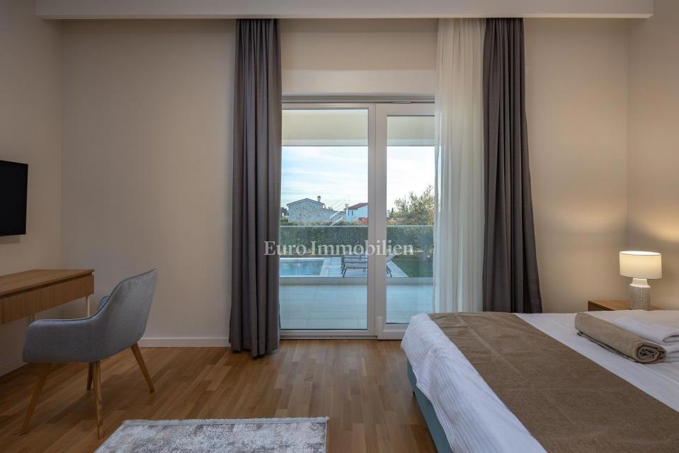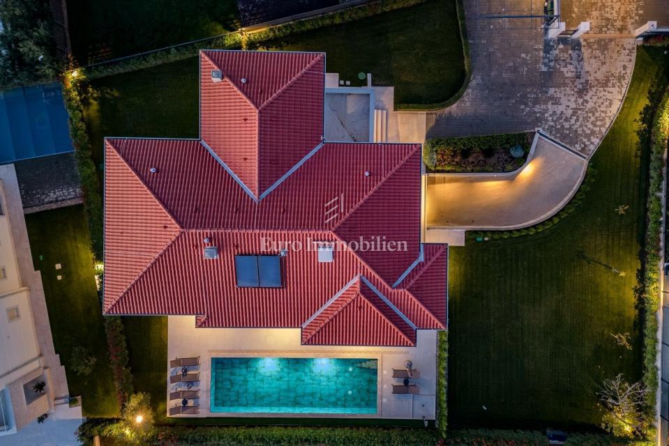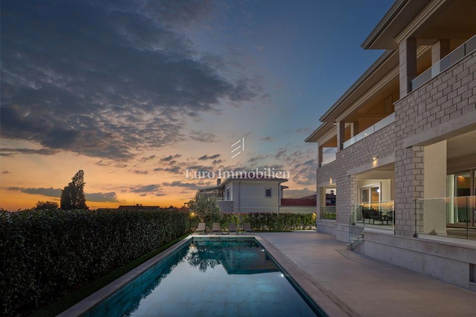 Čudovita vila avtentičnega videza, ki se nahaja na mirni lokaciji v majhnem istrskem mestu, nedaleč od morja (1 km). S svojo eleganco in arhitekturo izžareva delček beneškega stila. Zgrajena je bila leta 2022. Obsega tri etaže: klet, pritličje in nadstrop