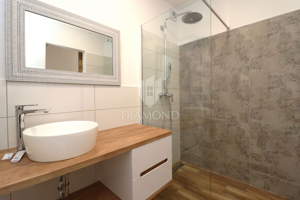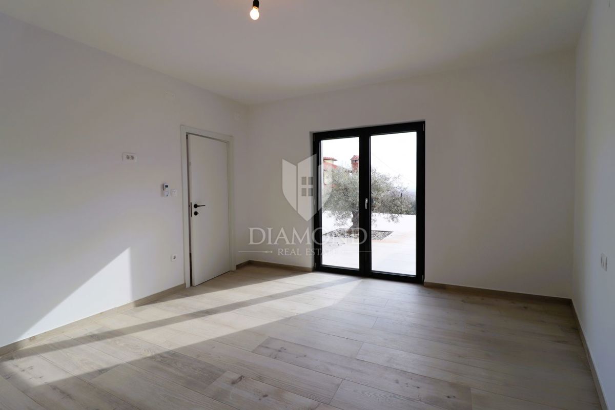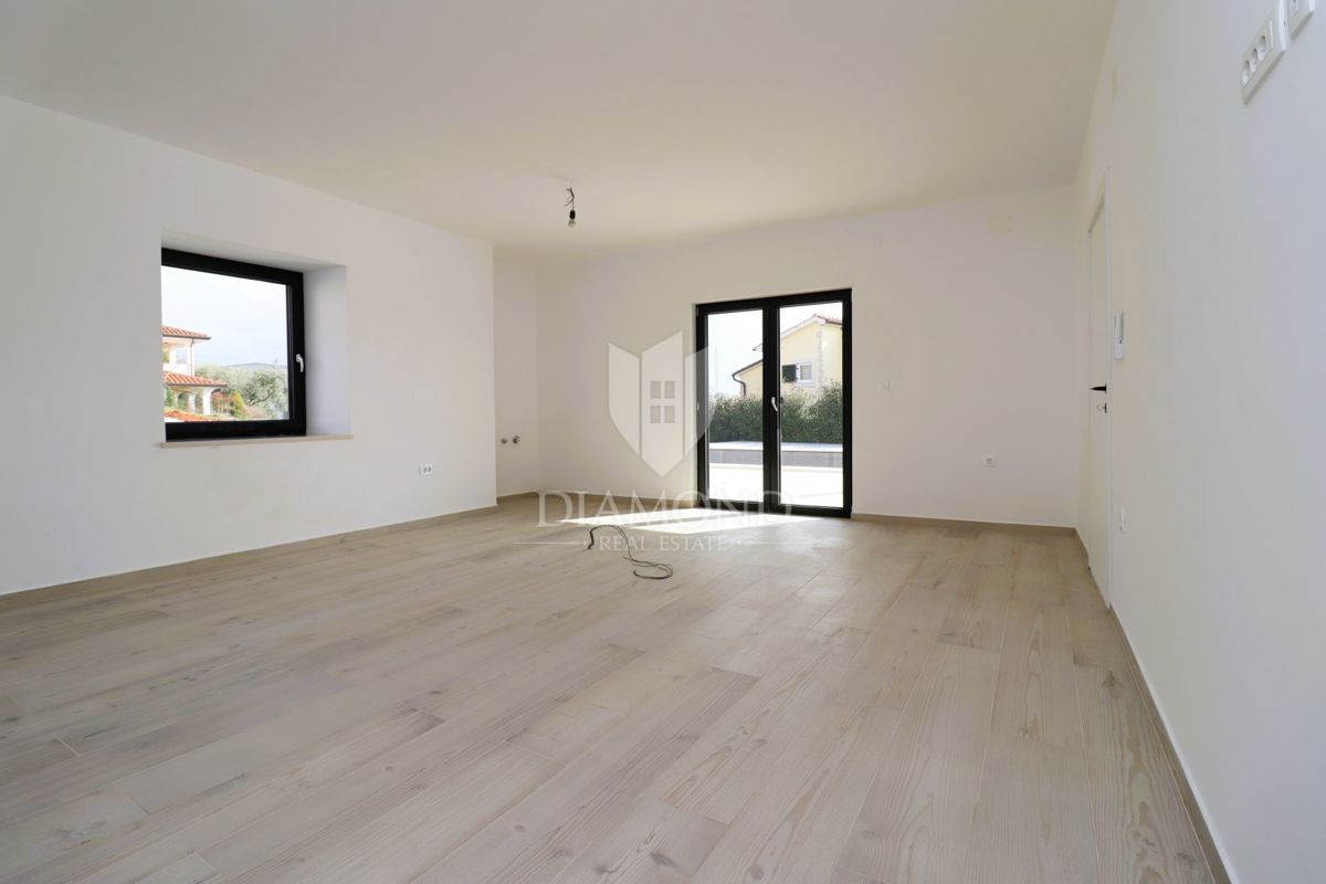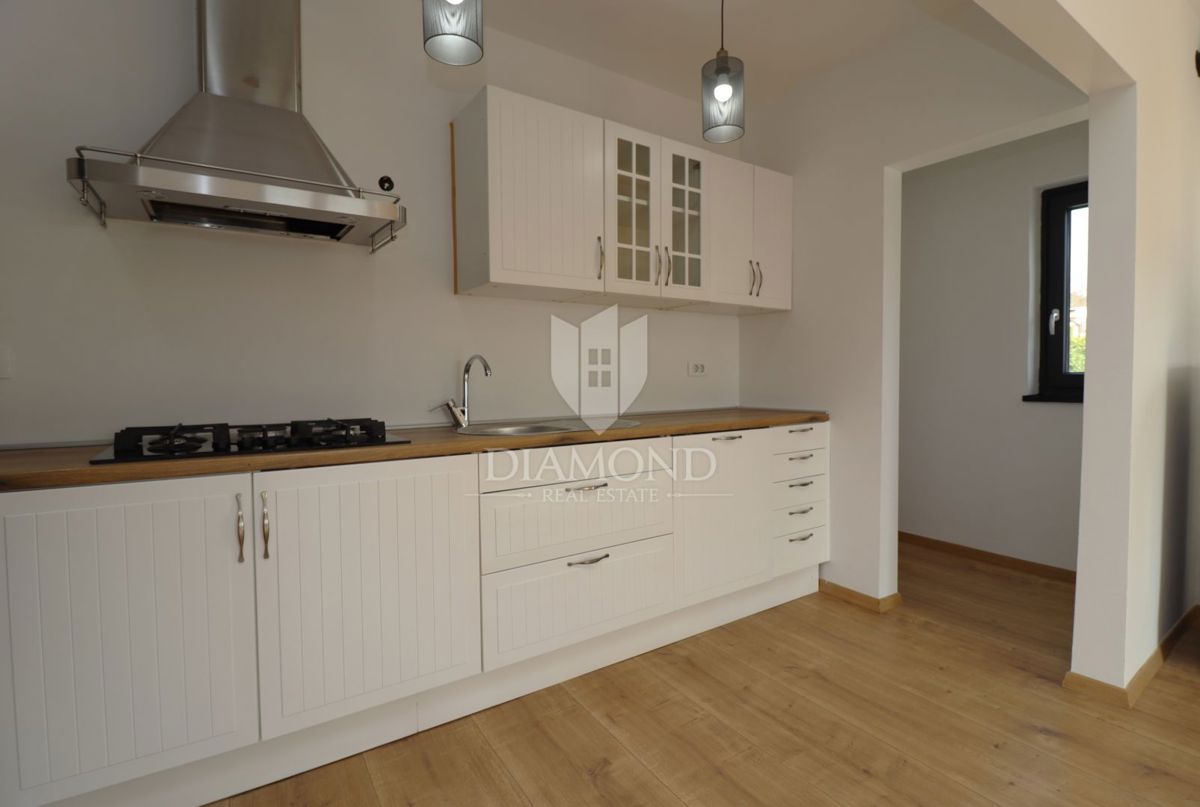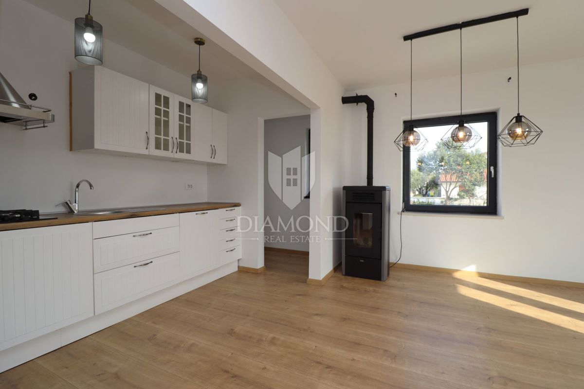 Popolnoma prenovljena hiša z dvema stanovanjskima enotama in panoramskim pogledom na morje - okolica Poreča V mirni vasici v bližini Poreča, le nekaj kilometrov od obale, se prodaja popolnoma prenovljena hiša z dvema ločenima stanovanjskima enotama, ideal