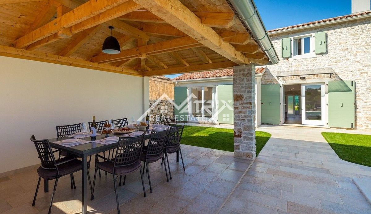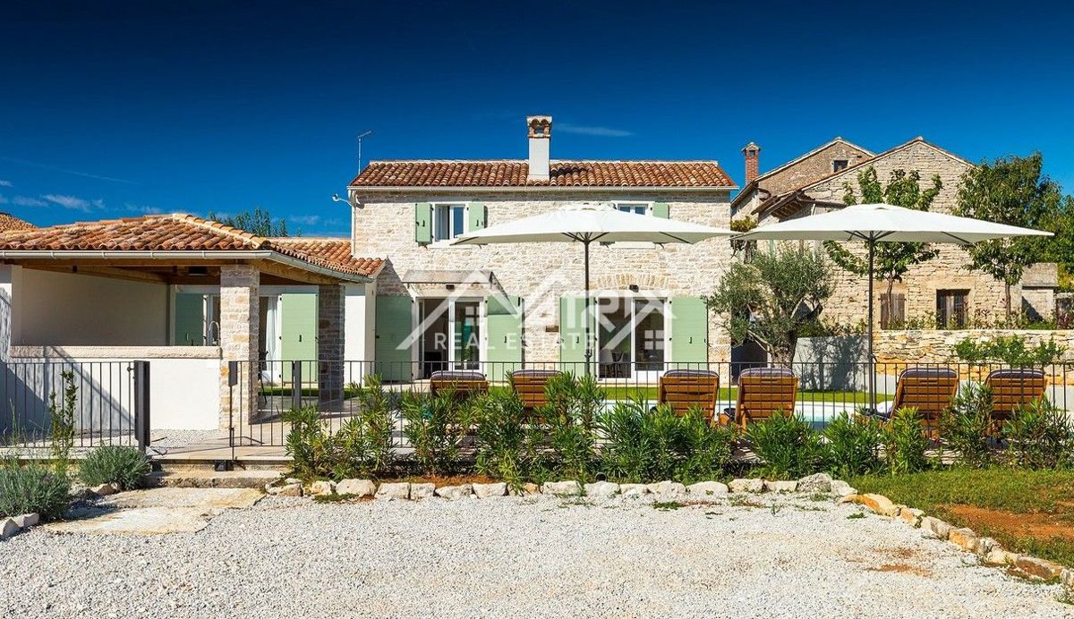 Okolica Poreča - Istrska hiša z bazenom na odlični lokaciji! Opremljeno in opremljeno! V mirni vasici blizu Poreča se prodaja ta lepo prenovljena hiša z bazenom, skupne bivalne površine 135 m2. Hiša se nahaja na fantastični lokaciji na robu gradbenega ob