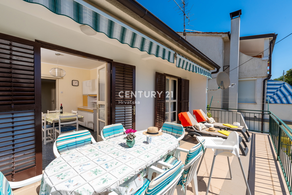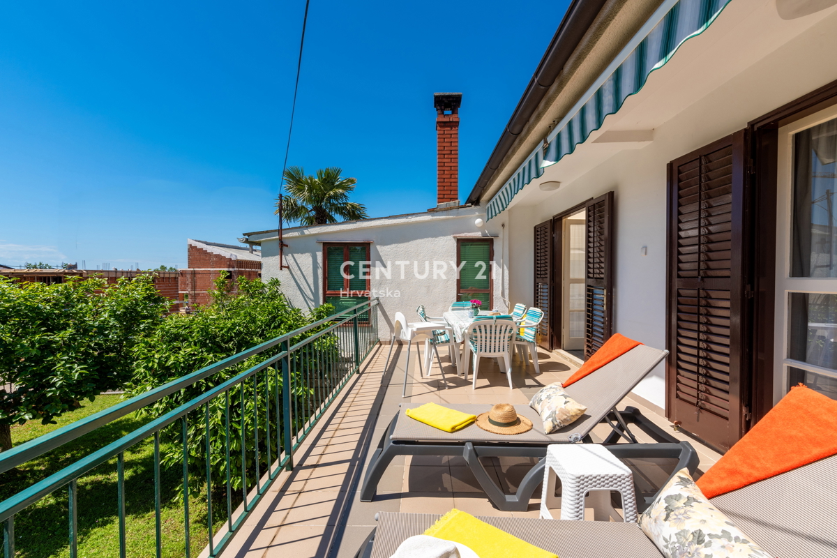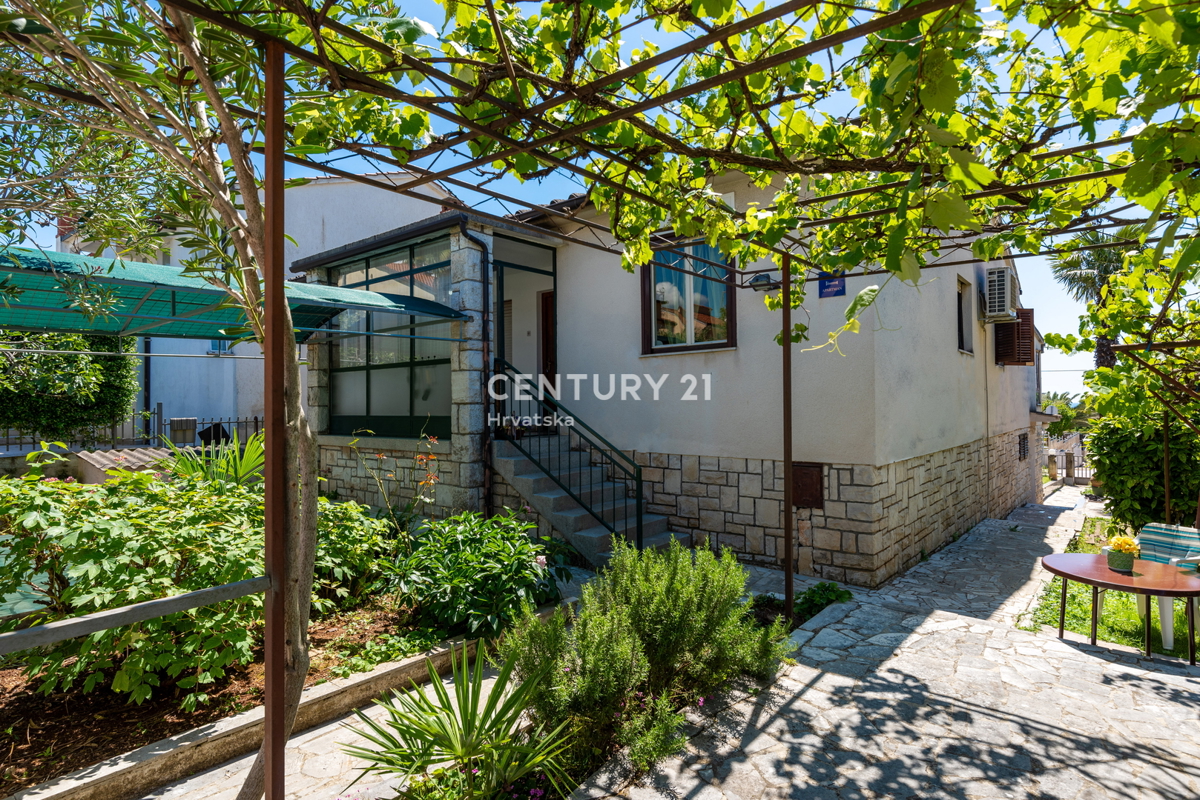 Prodaja se samostojna hiša velikosti 171 m2 na lepi parceli velikosti 443 m2 na odlični lokaciji, le 600 m od najlepših plaž Poreča in le 2500 m od centra. Hiša ima dostop z dveh ulic. Sestavlja se iz kleti in pritličja. V kleti se nahaja ena ga