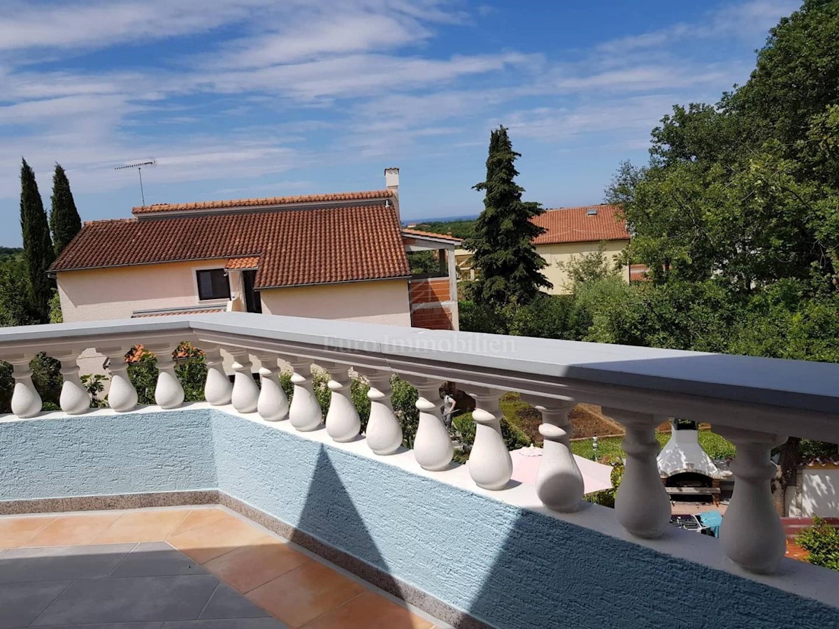 Prekrasna samostojeća kuća nalazi se 3km od Poreča i mora površine 285m2. Kuća se nalazi na prekrasno uređenoj parceli od 957m2. Sastoji se od podruma, prizemlja i prvoga kata. Na prizemlju se nalazi veliki stan s dnevnim boravkom s kaminom, kuhinjom, kup