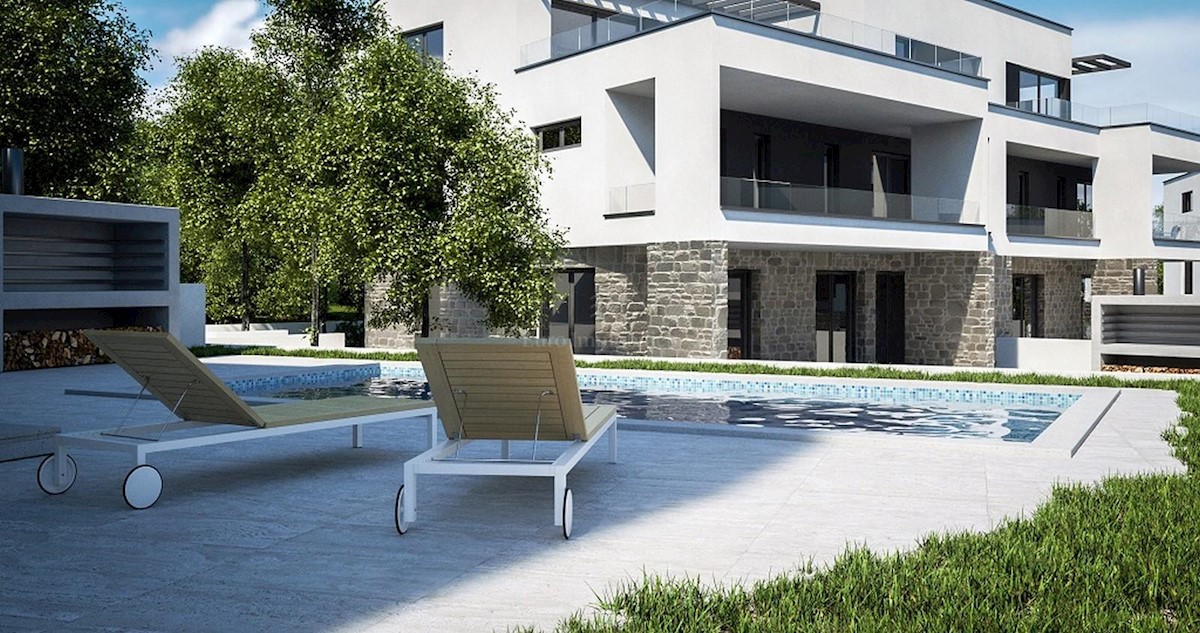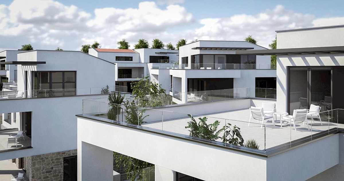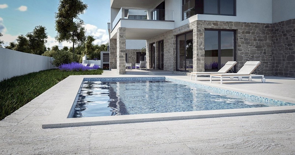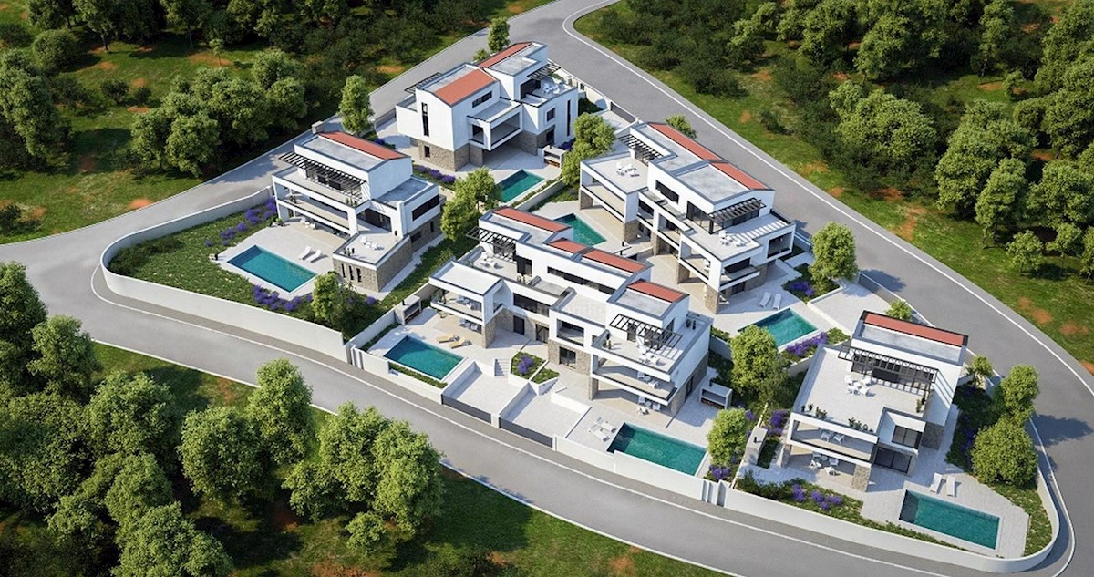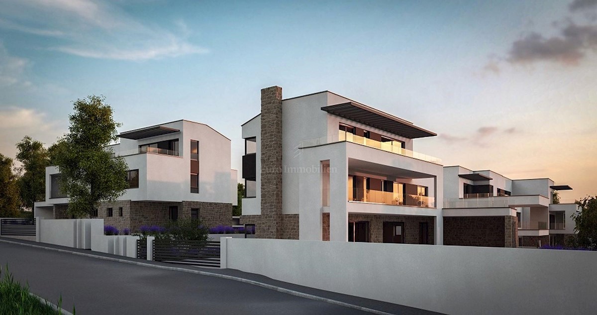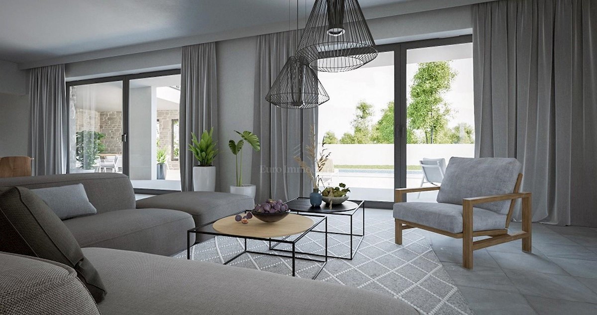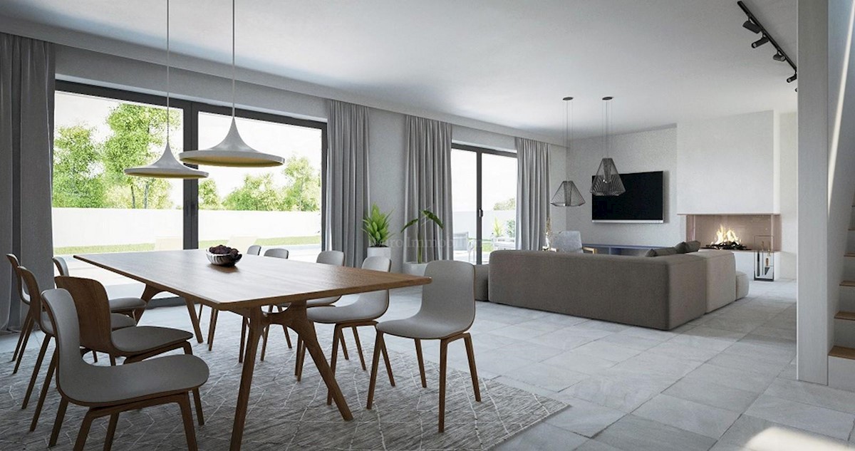 Na mirnoj lokaciji, 9 km od grada Poreča, grade se luksuzne kuće s bazenima. Planirani završetak gradnje je 01.05.2020. godine. Kuće se sastoje od prizemlja, kata i potkrovlja. Visoki standard izgradnje, stolarija je predviđena aluminijska za troslojnim