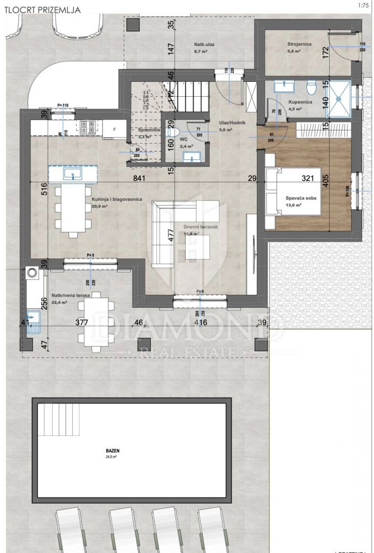 Poreč, okolica, Istra Prodamo hišo z bazenom v gradnji v majhni in mirni istrski vasici 20km oddaljeni od mesta Poreč. Na razdalji 15 km je Limski zaliv, ki je kraška dolina na zahodni obali Istre med Porečem in Rovinjem. Zaradi svojih naravnih danosti