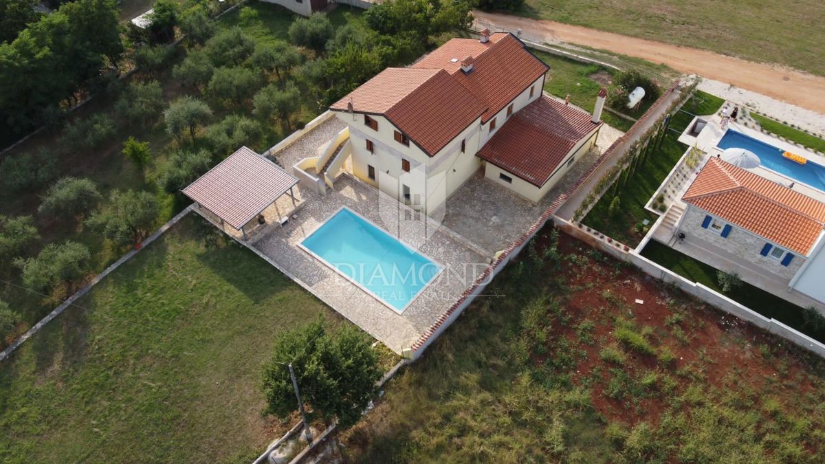Poreč, okolica, Istra Prodamo večstanovansko hišo z bazenom in pogledom na morje v bližini Poreča. Hiša se nahaja na koncu majhne istrske vasice, oddaljene od mesta Poreč, približno deset minut vožnje. Nedaleč stran je mesto Kaštelir, ki obstaja, kjer