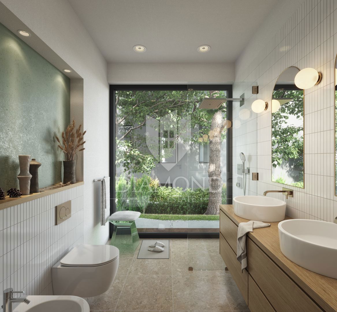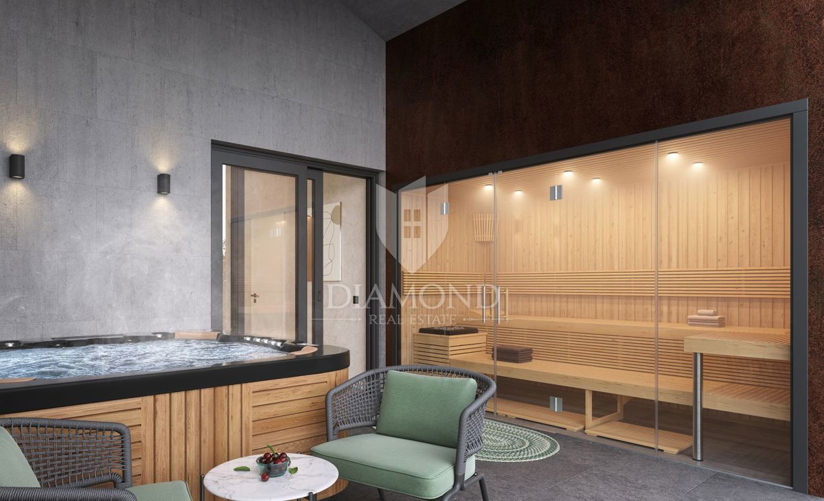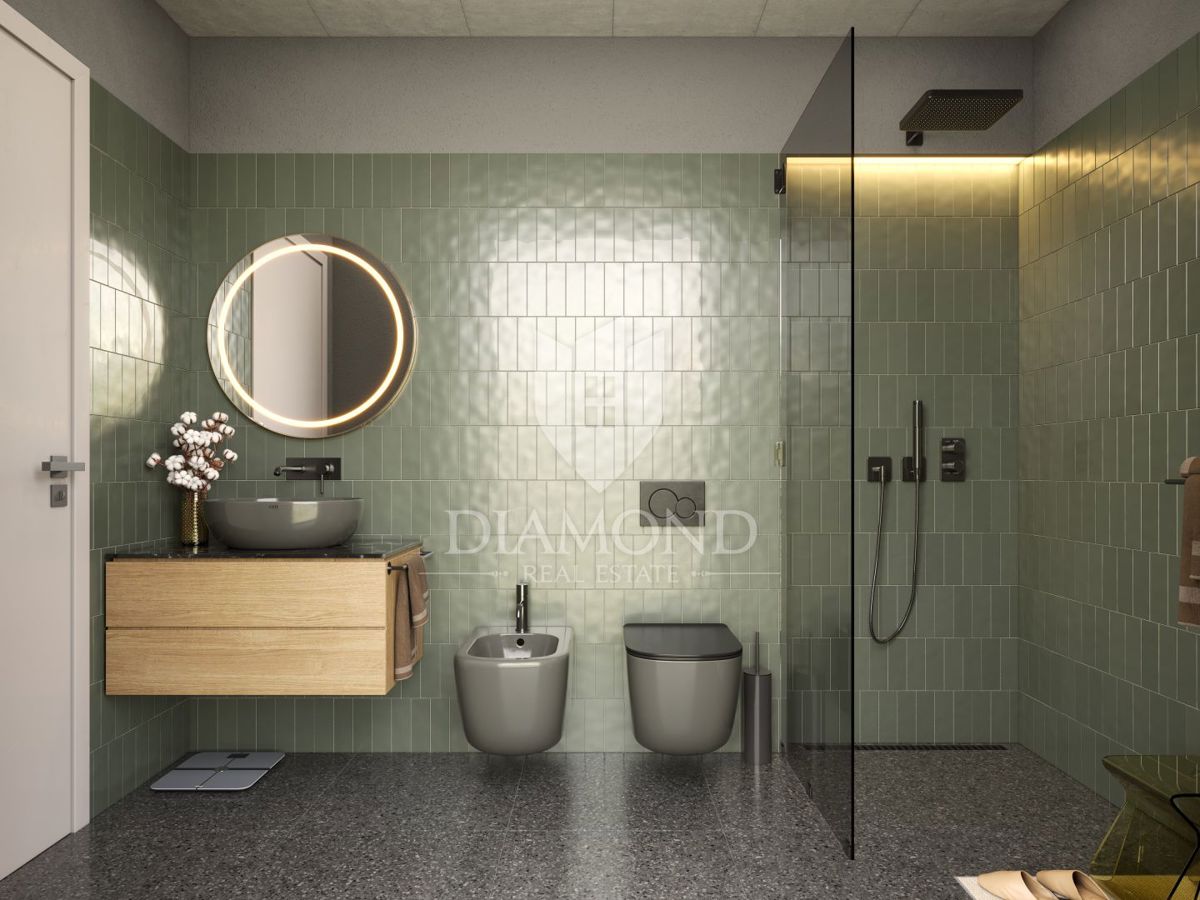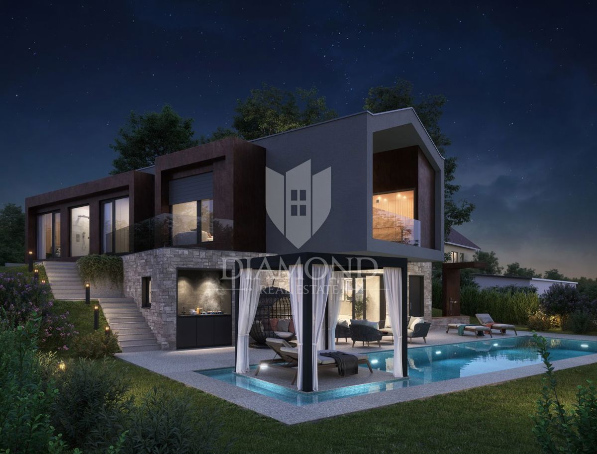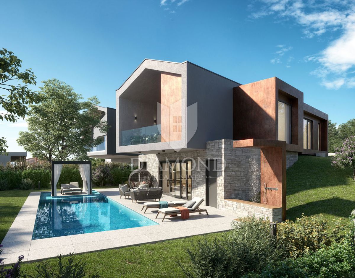 Poreč, okolica, projektantska vila v izgradnji s pogledom na morje! Prodamo moderno dizajnersko vilo v gradnji z wellnessom, bazenom in pogledom na morje v okolici Poreča. Ta privlačna moderna dizajnerska vila se bo nahajala v majhni vasici 13 km vzho