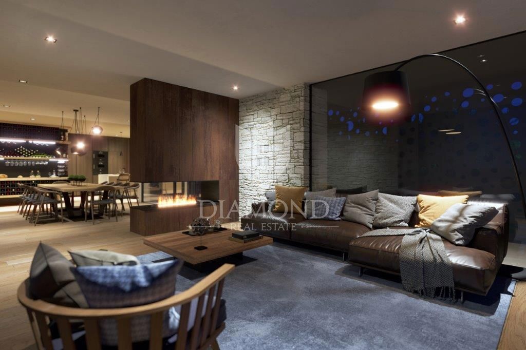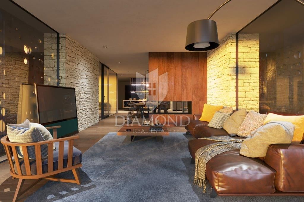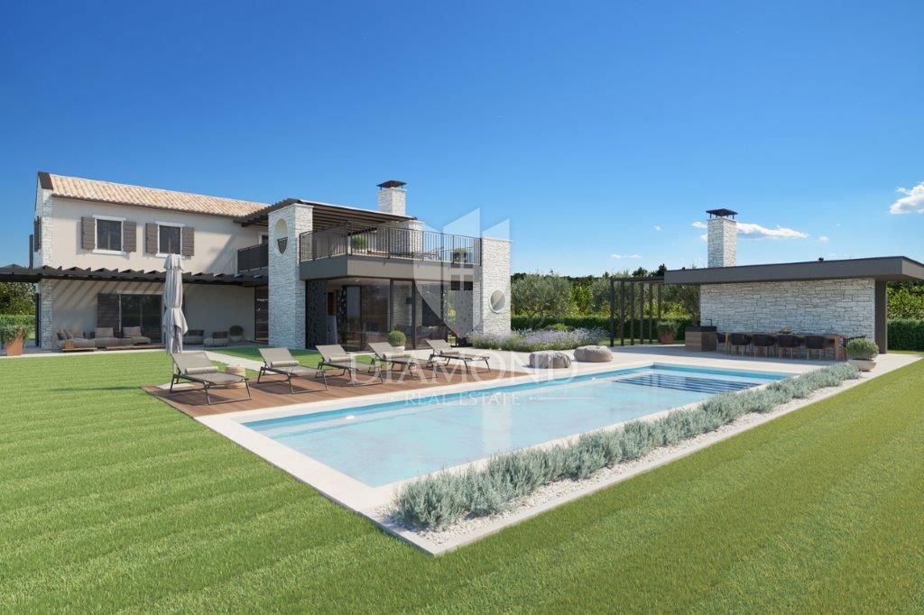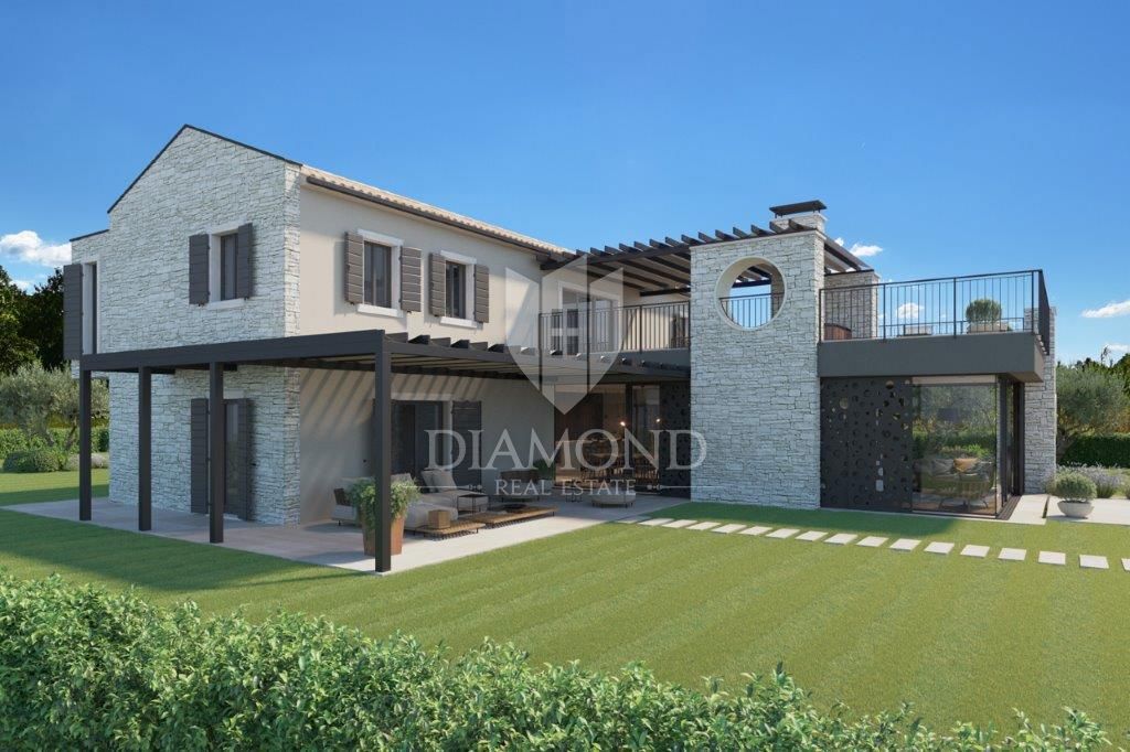 Poreč, okolica, luksuzna vila v gradnji Le 15 km oddaljena od mesta Poreč in lepih plaž je ta luksuzna hiša v gradnji. Ta luksuzna vila, ki jemlje dih s popolno mešanico elegance, moderne arhitekture z istrskim poudarkom, se nahaja v majhnem in mirnem i
