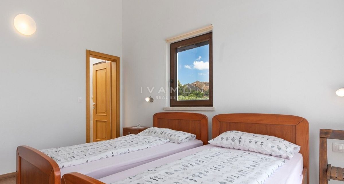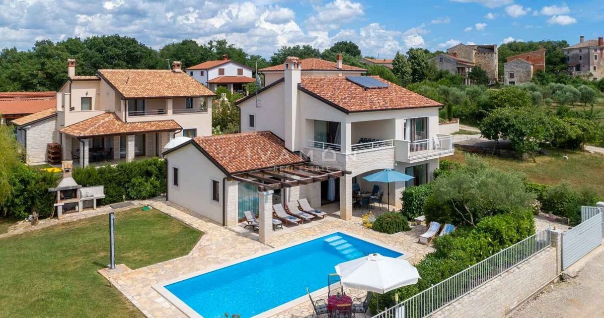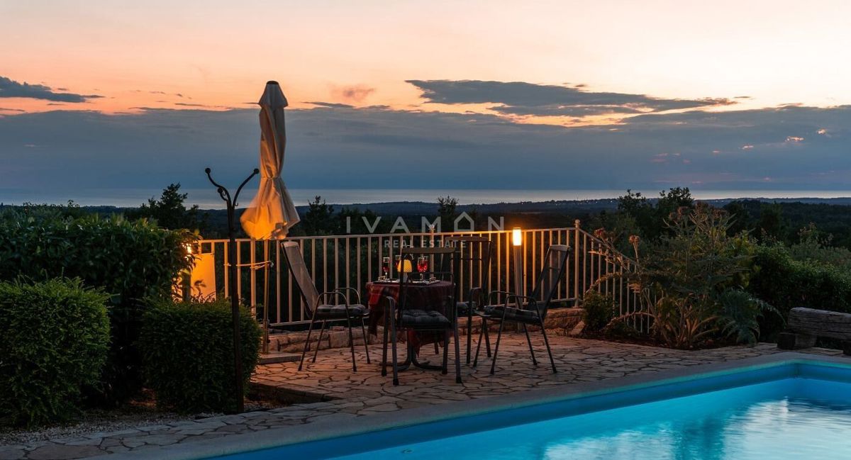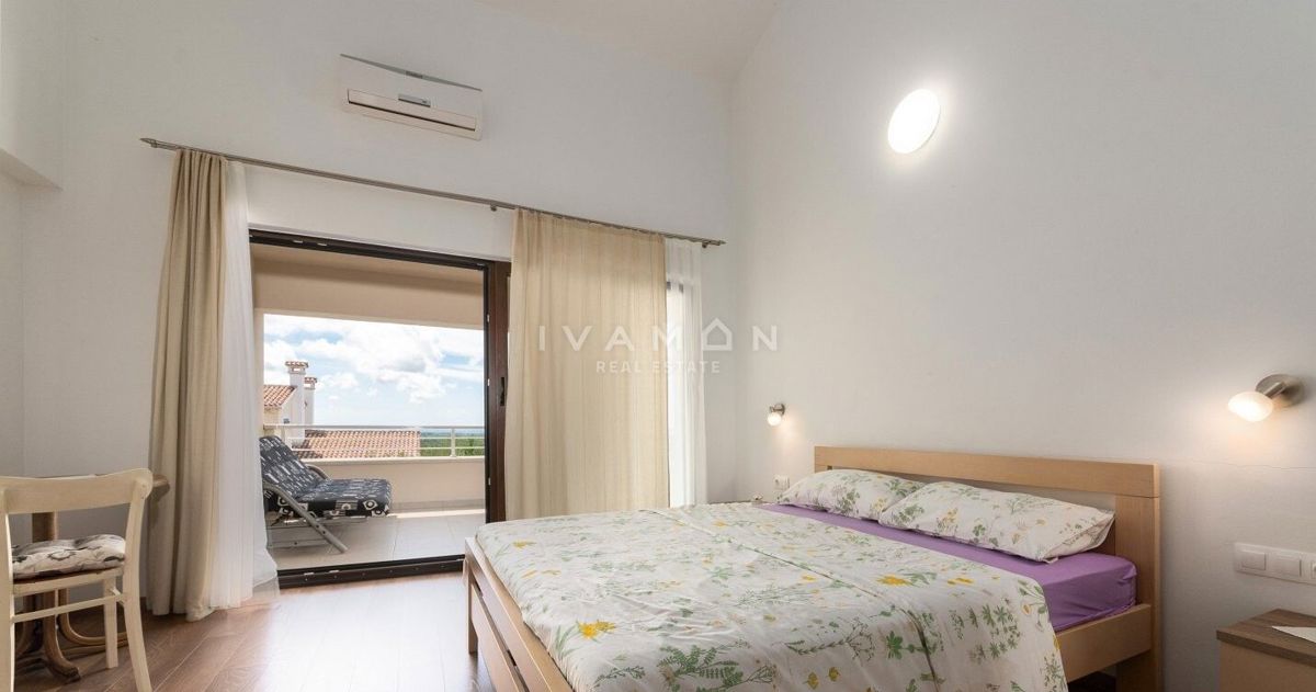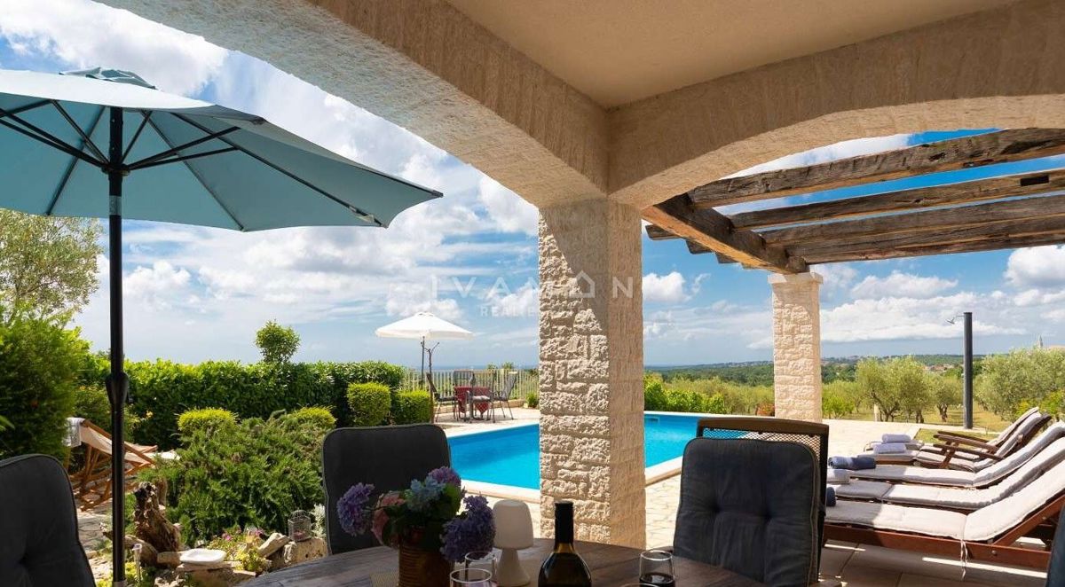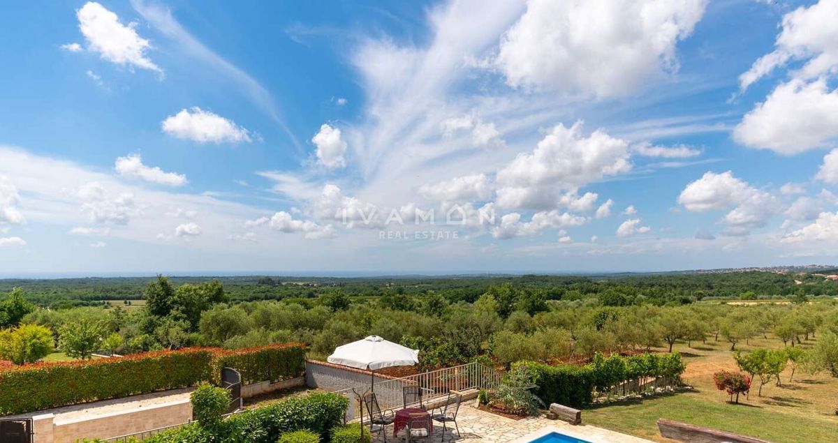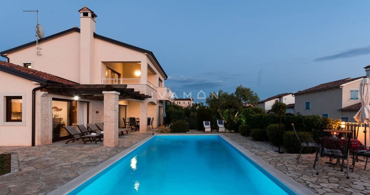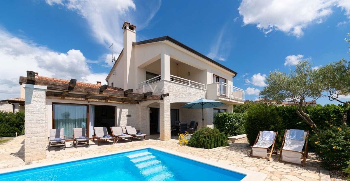 Na širšem območju Poreča je naprodaj samostojna vila z bazenom in čudovitim odprtim pogledom na morje. Nahaja se na mirni lokaciji, obkrožena z novozgrajenimi vilami. Poleg zelo mirne lokacije je njena največja prednost odprt pogled na morje, ki ga ni mog