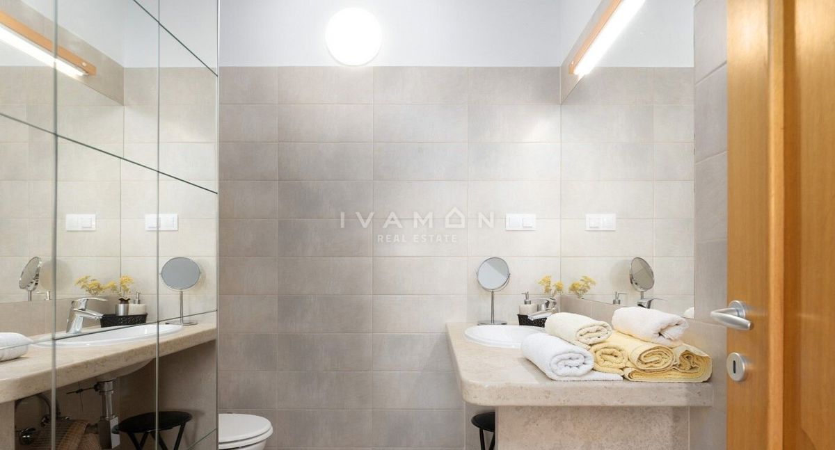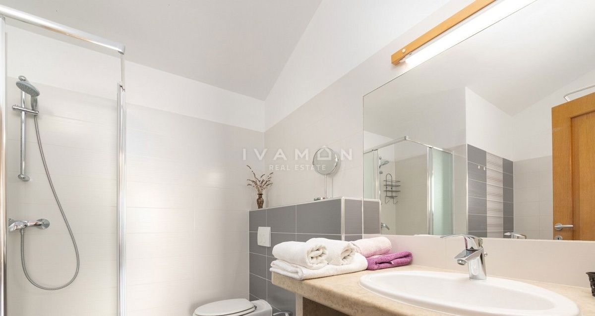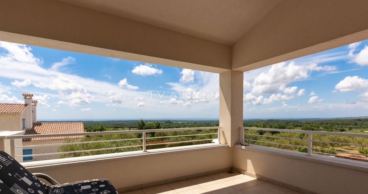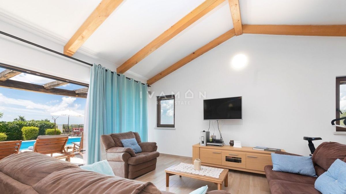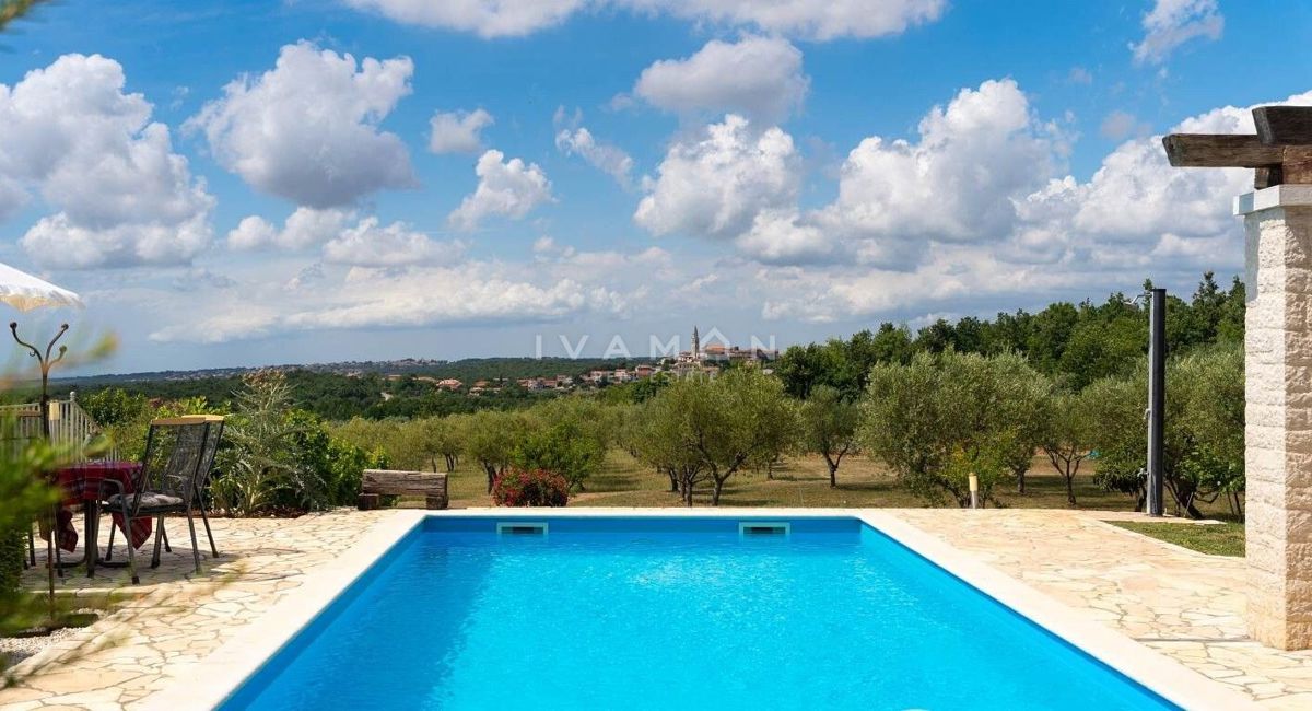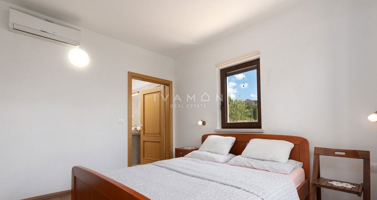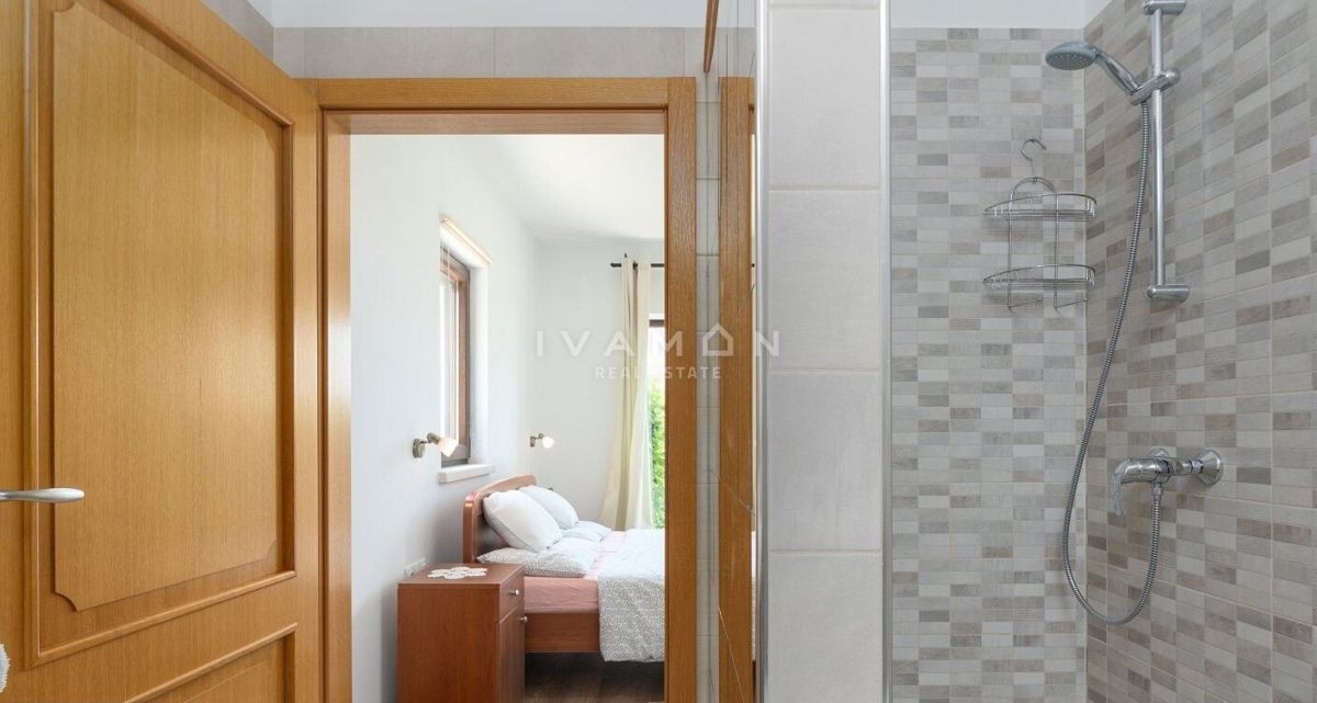 Na širšem območju Poreča je naprodaj samostojna vila z bazenom in čudovitim odprtim pogledom na morje. Nahaja se na mirni lokaciji, obkrožena z novozgrajenimi vilami. Poleg zelo mirne lokacije je njena največja prednost odprt pogled na morje, ki ga ni mog