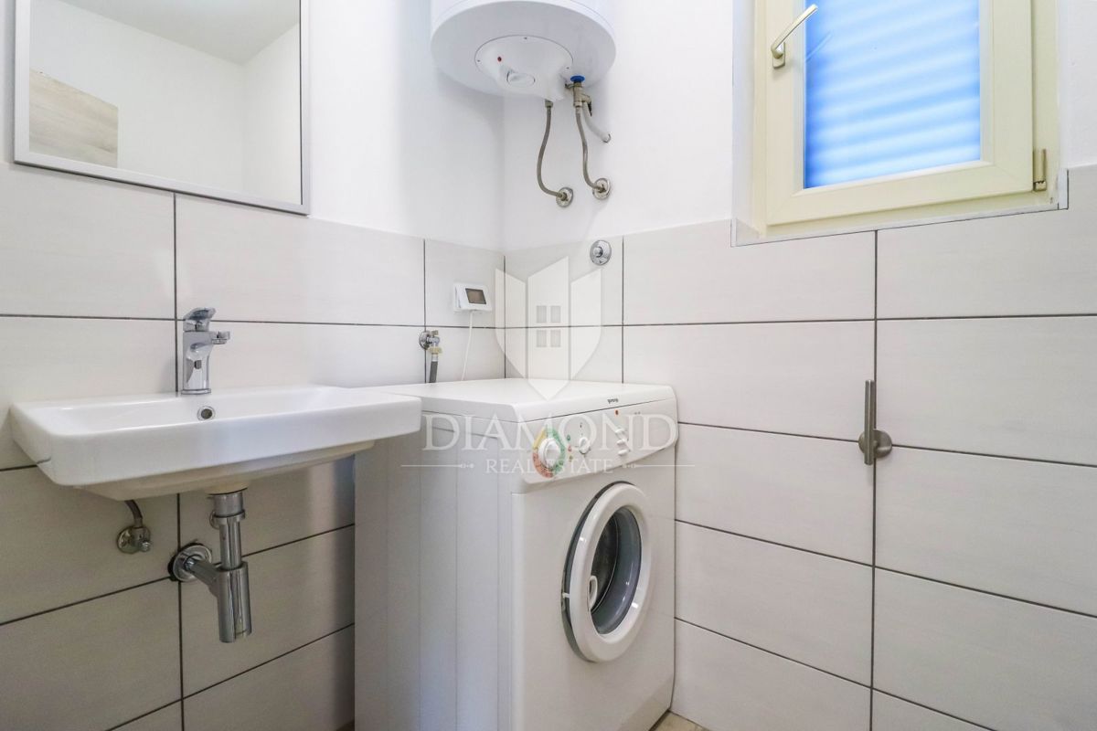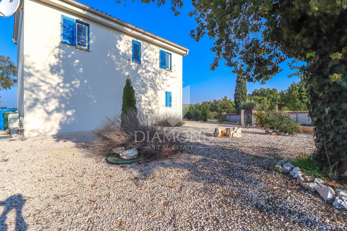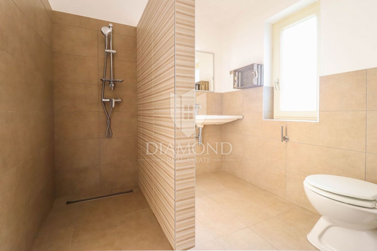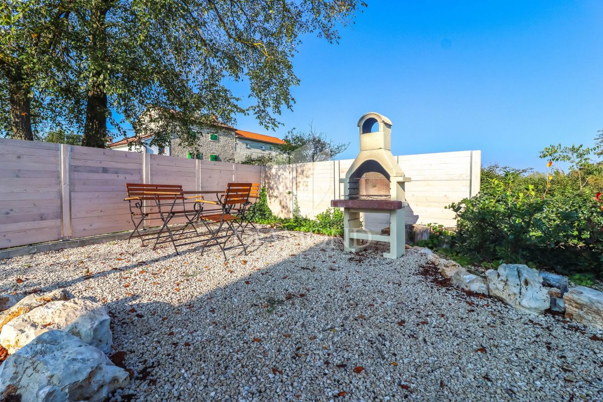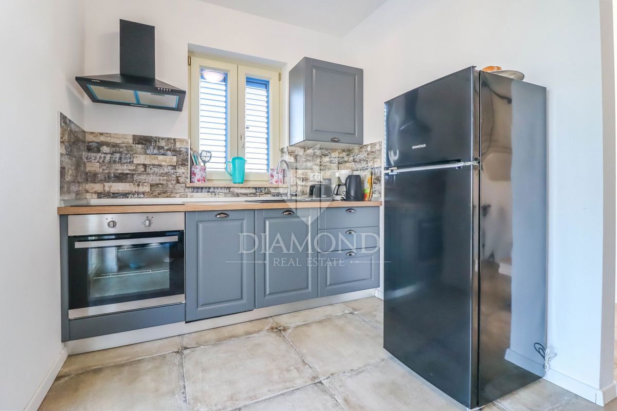 Poreč, okolica, očarljiva vila v mirnem okolju! Ta lepa hiša z bazenom se nahaja na mirnem mestu, le 14 km od Poreča in plaž. Skupna površina zemljišča je 613 m2, skupna površina hiše pa je 106 m2 in se razteza v dveh etažah. V pritličju je prostorna dn